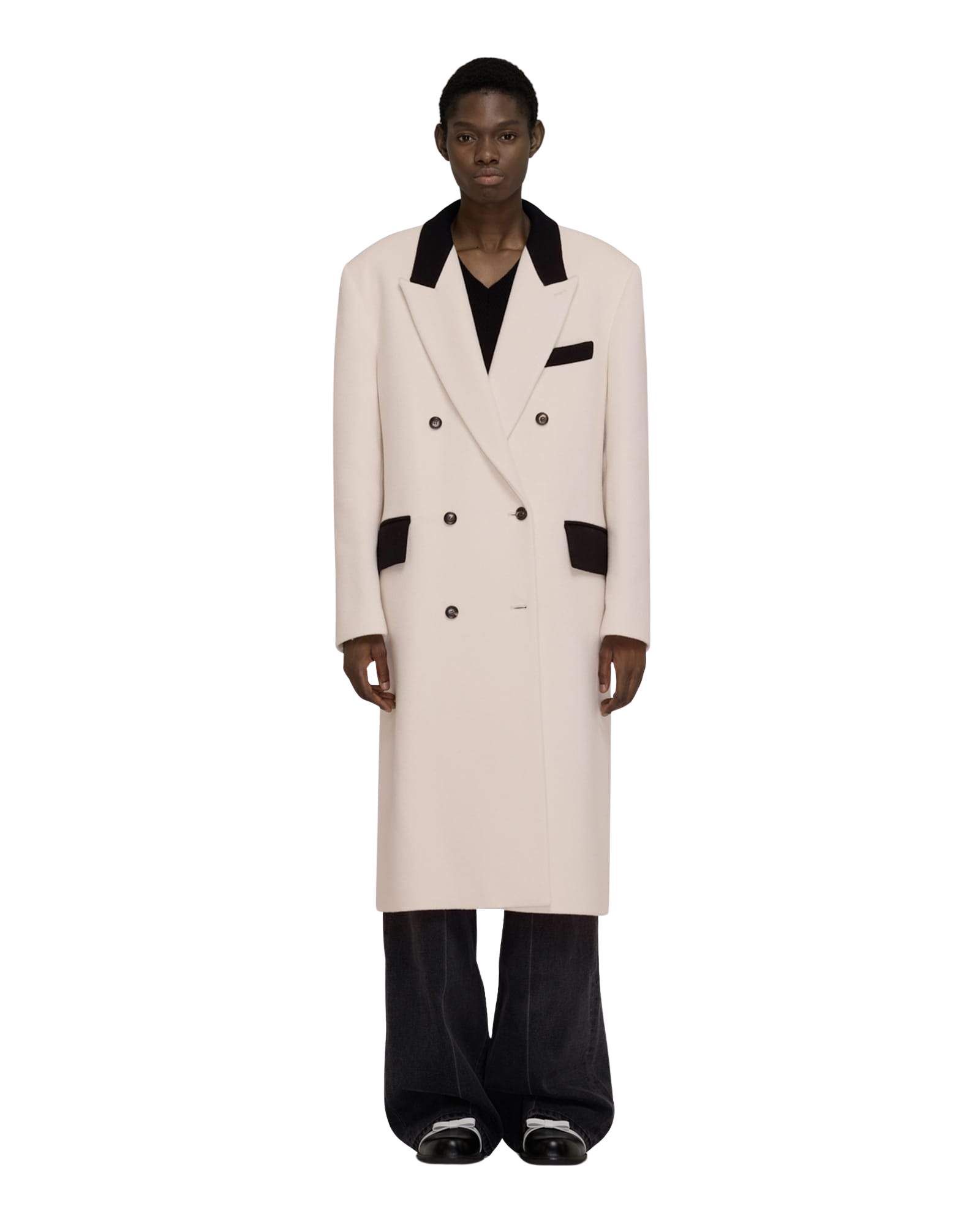 Gabriel Pointy-Toe Leather Flats (Black/White)