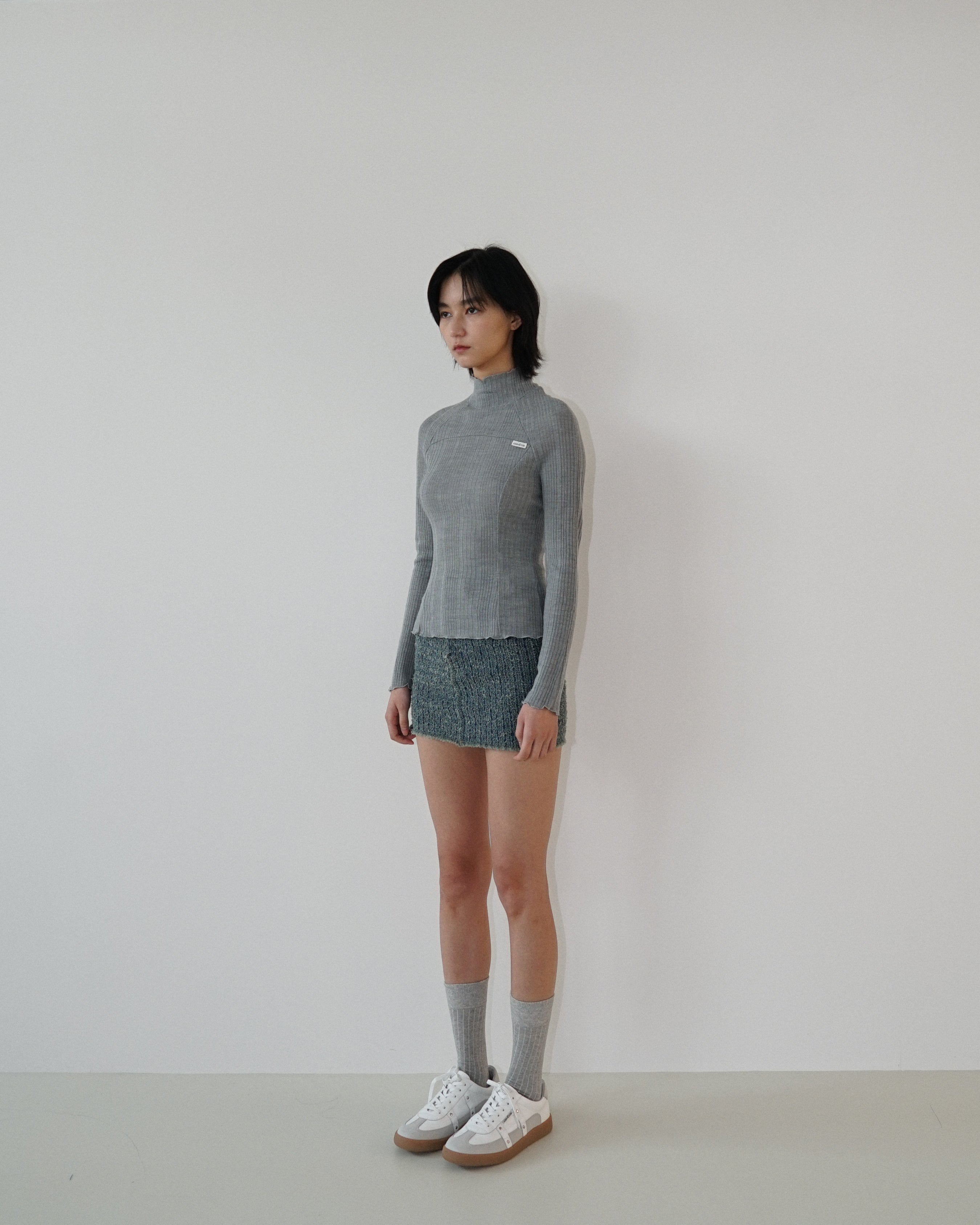 -A turtleneck knit made from 100% wool yarn.