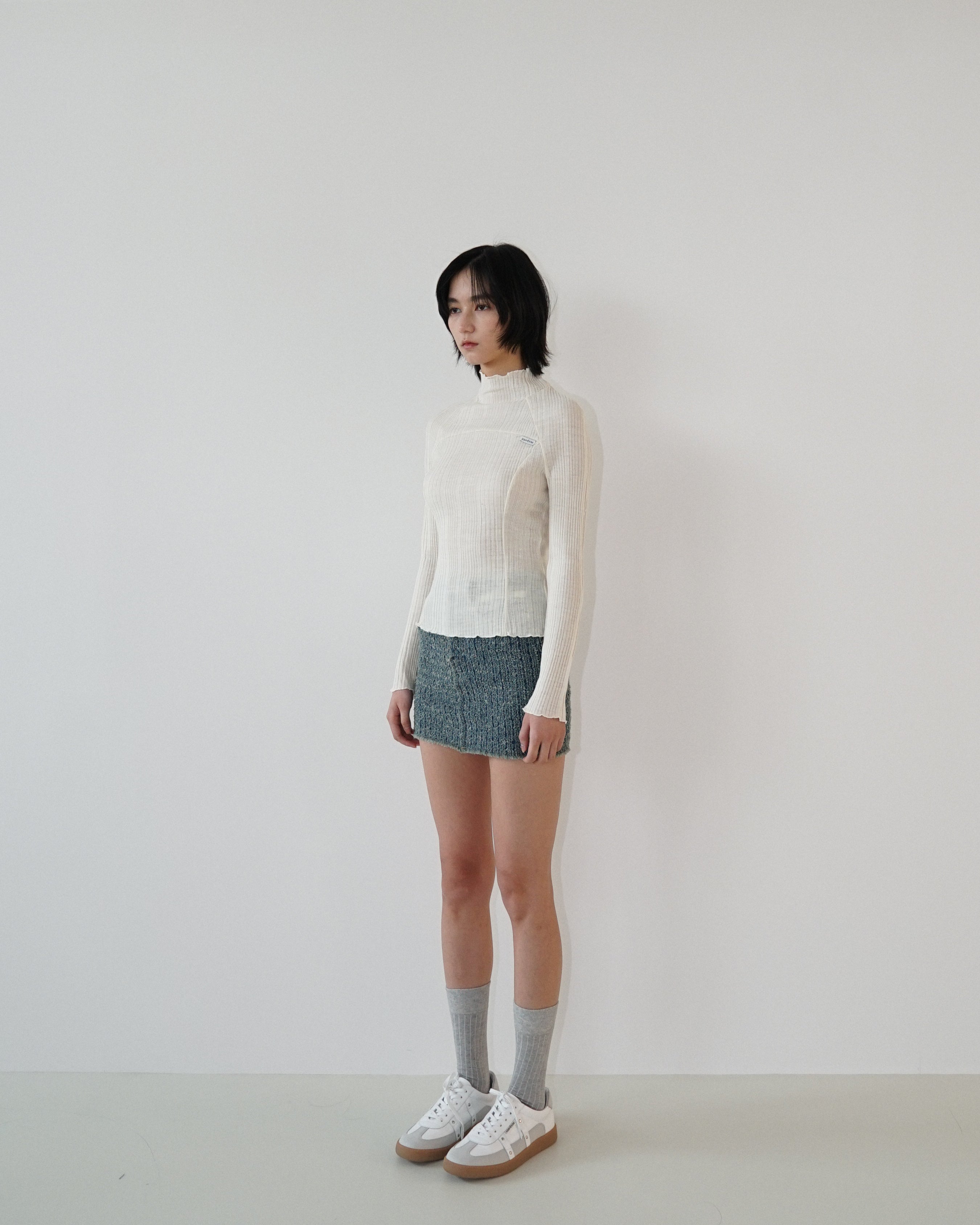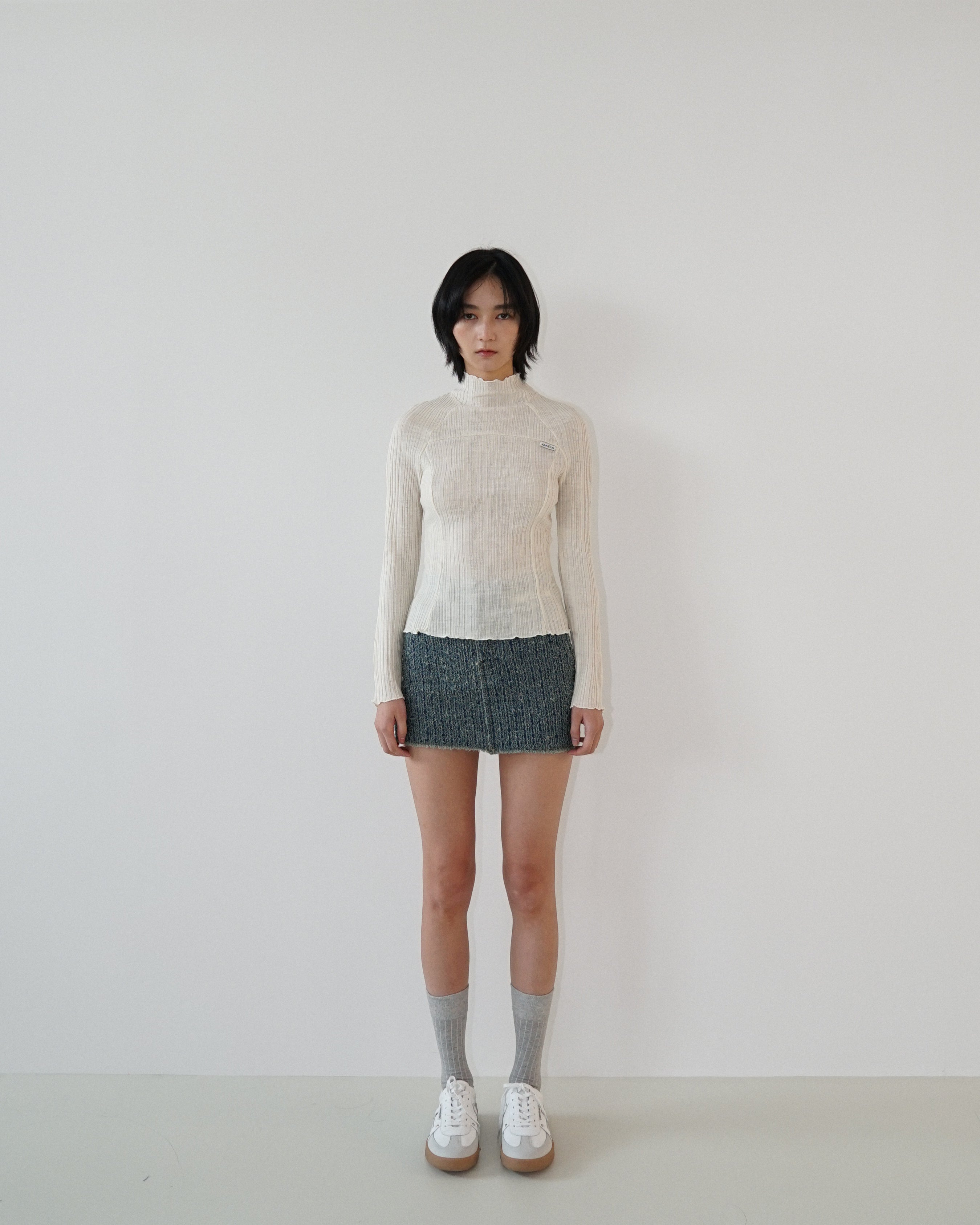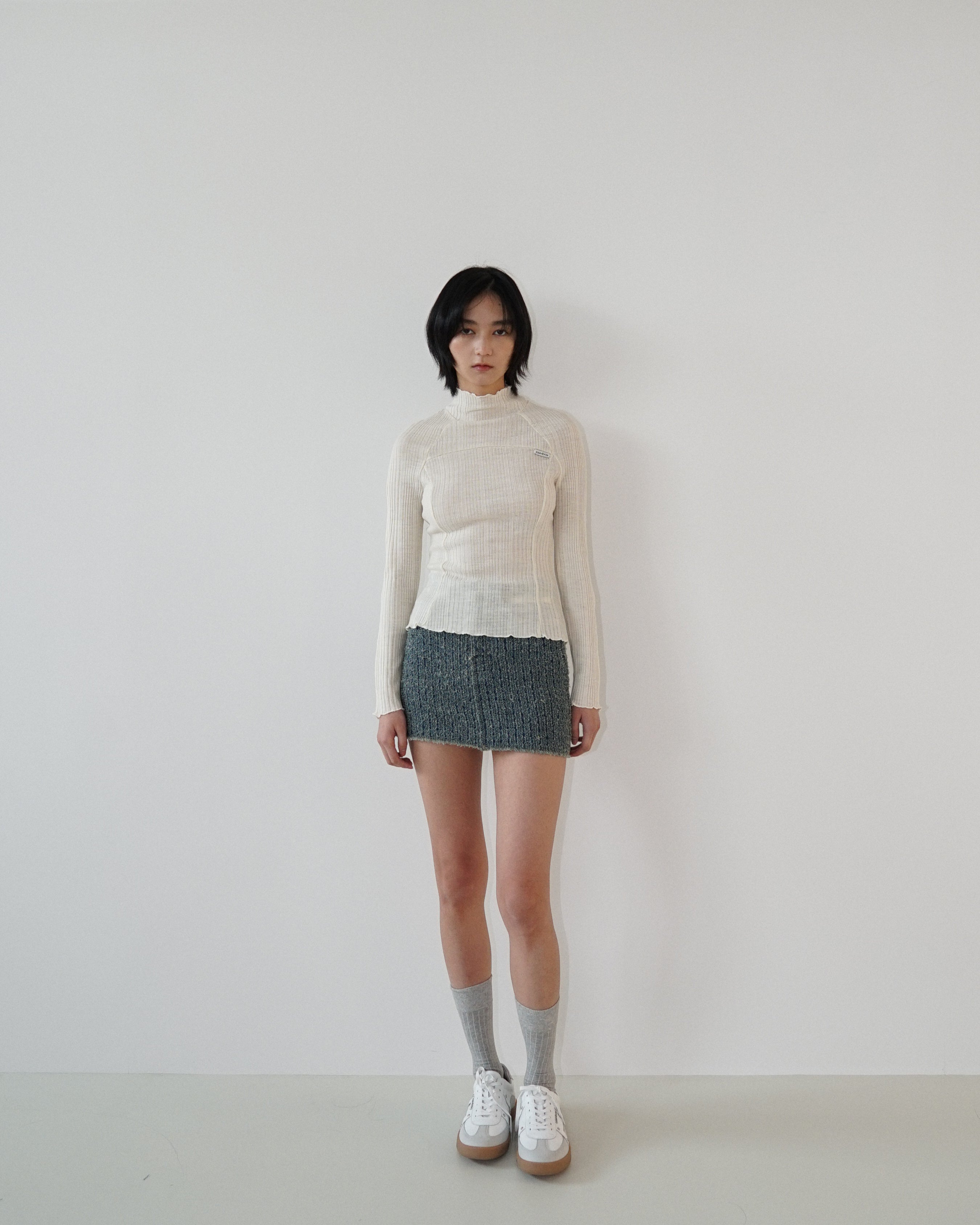 -A turtleneck knit made from 100% wool yarn.