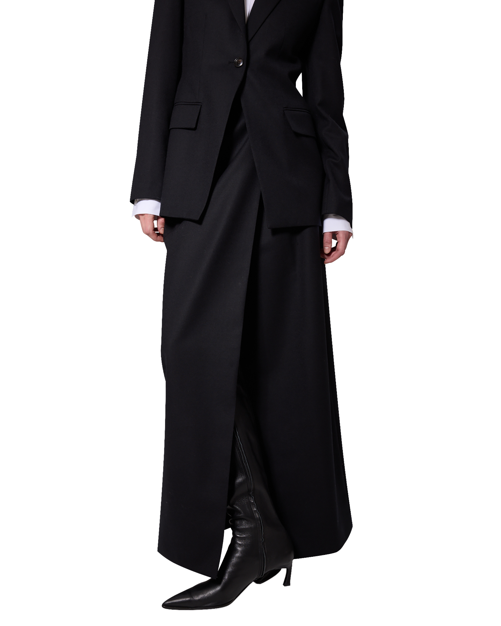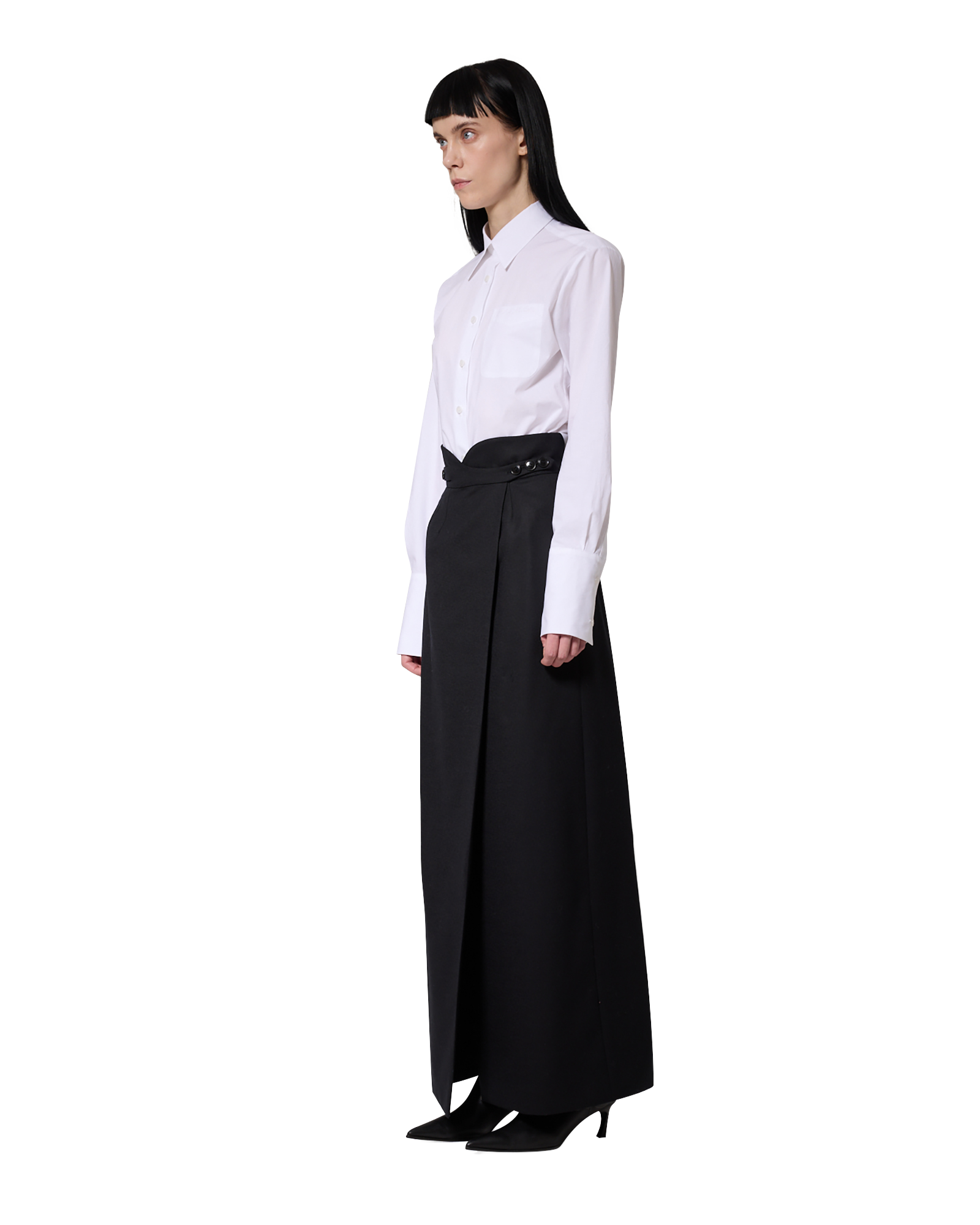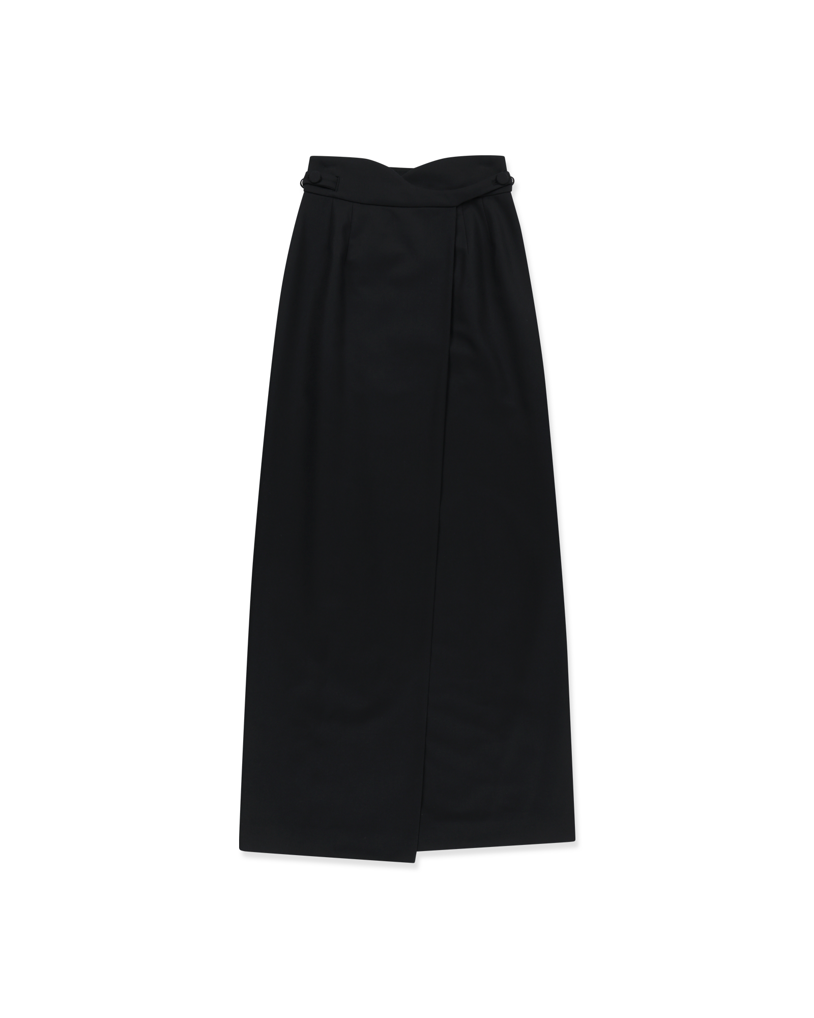 -A wrap maxi skirt made from a wool-blend fabric.
