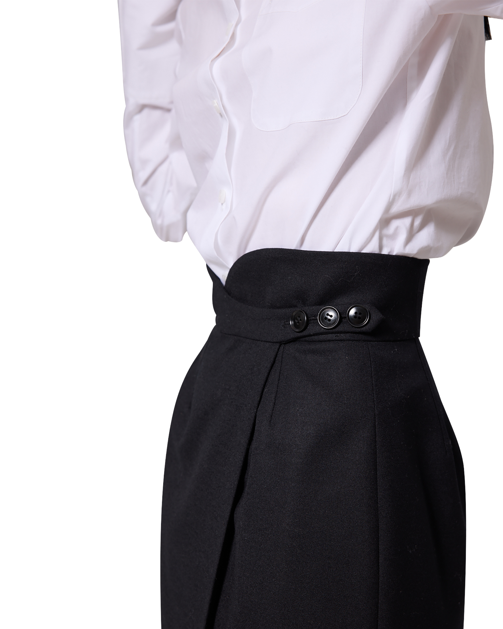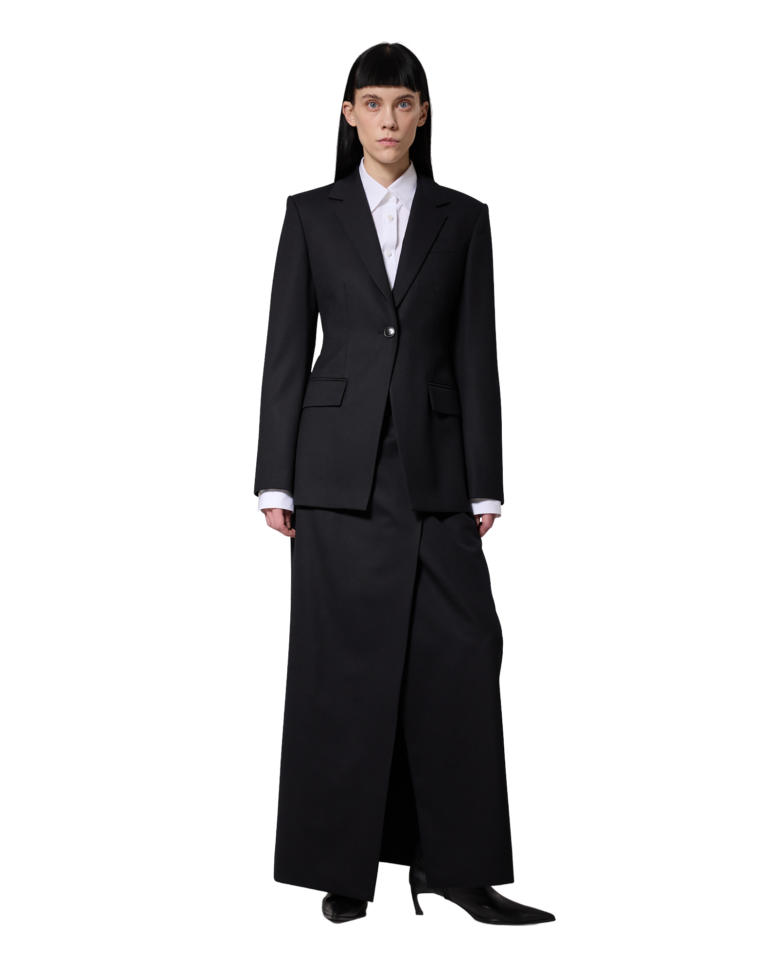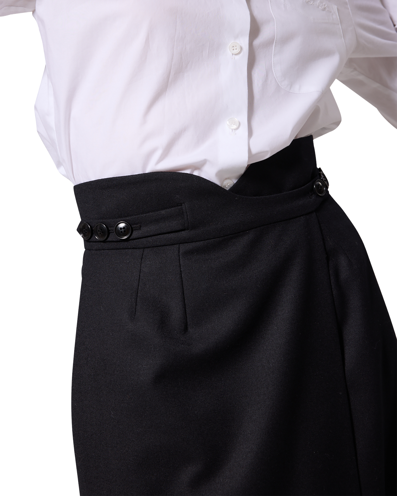 -A wrap maxi skirt made from a wool-blend fabric.