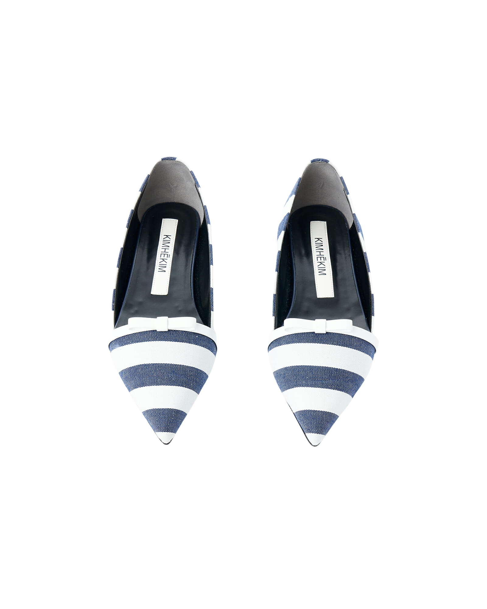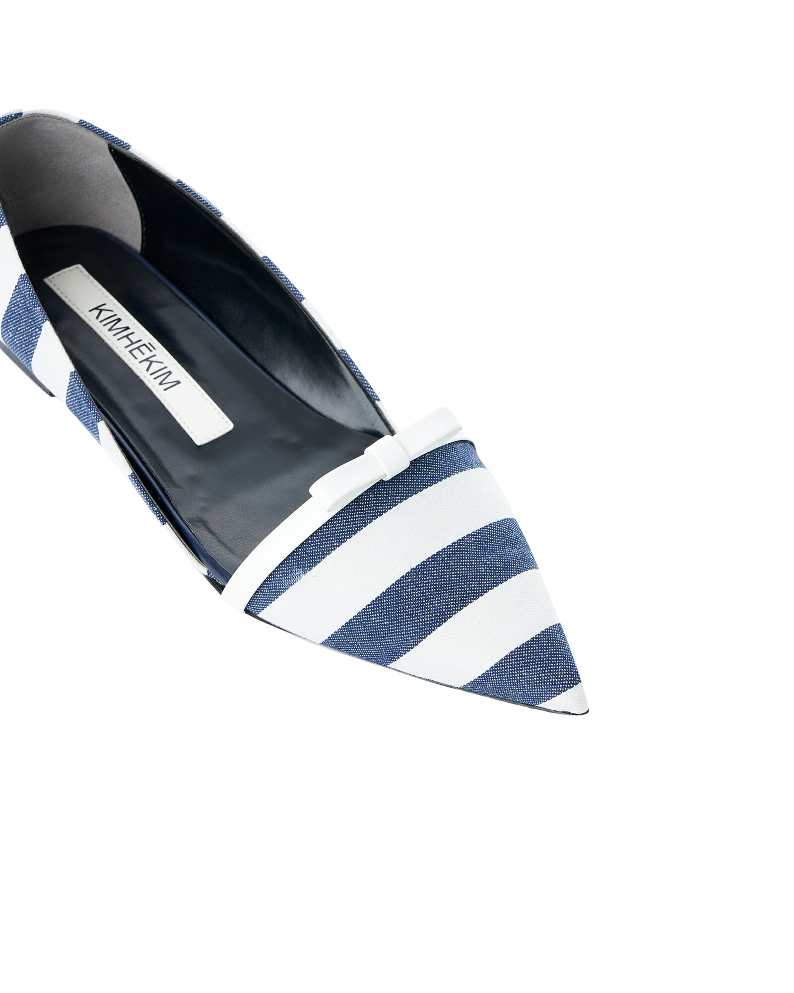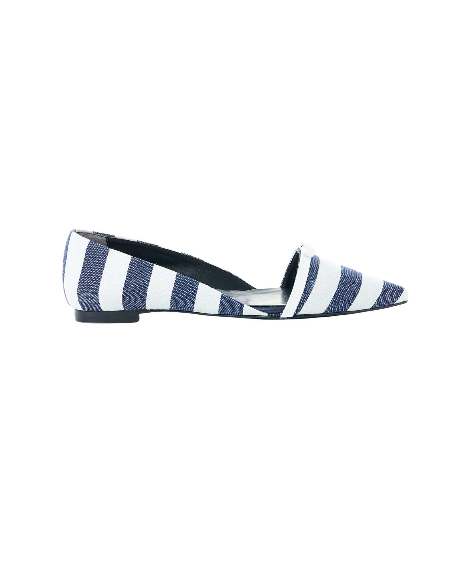 Gabriel Pointy-Toe Striped Denim Flats (Navy)