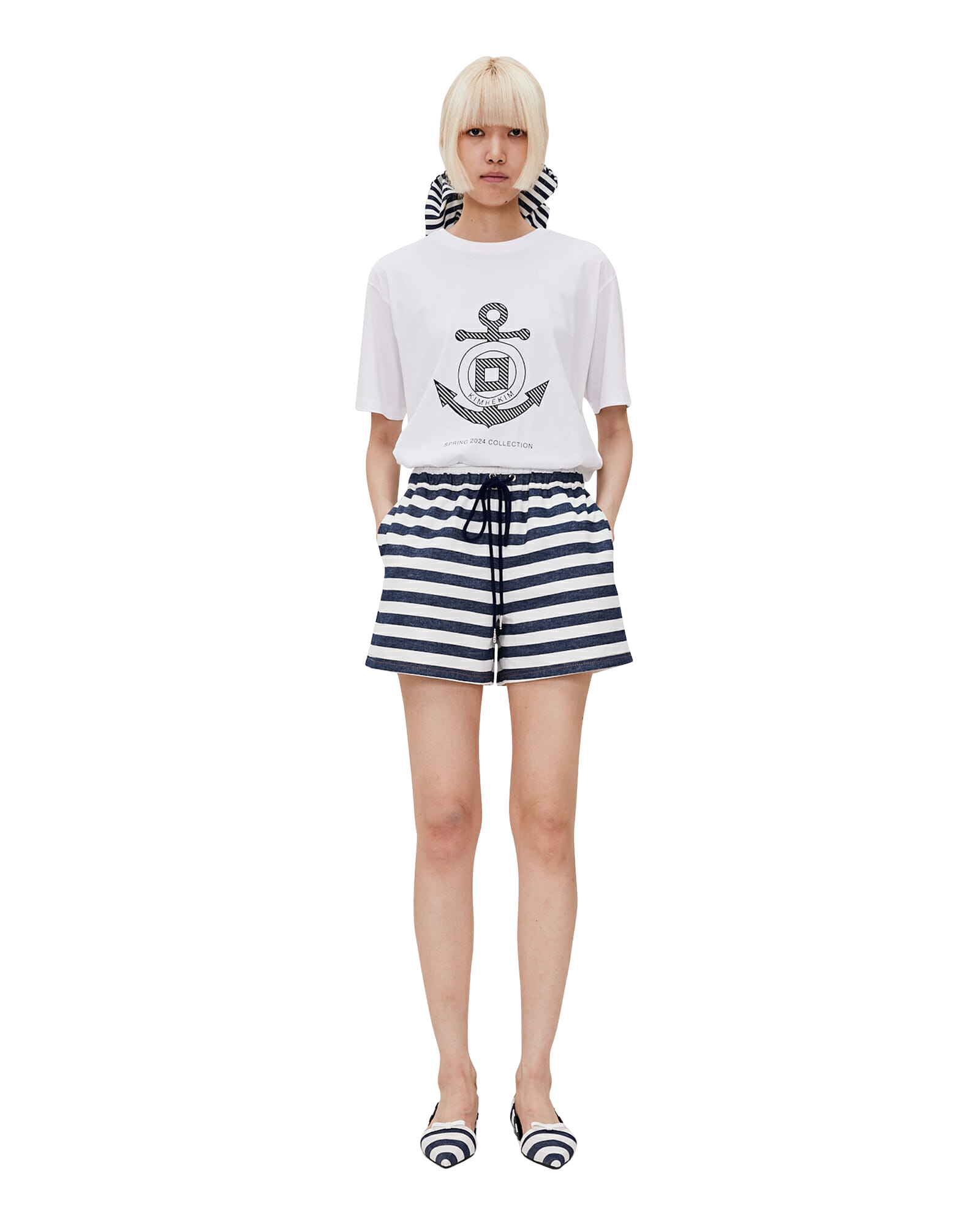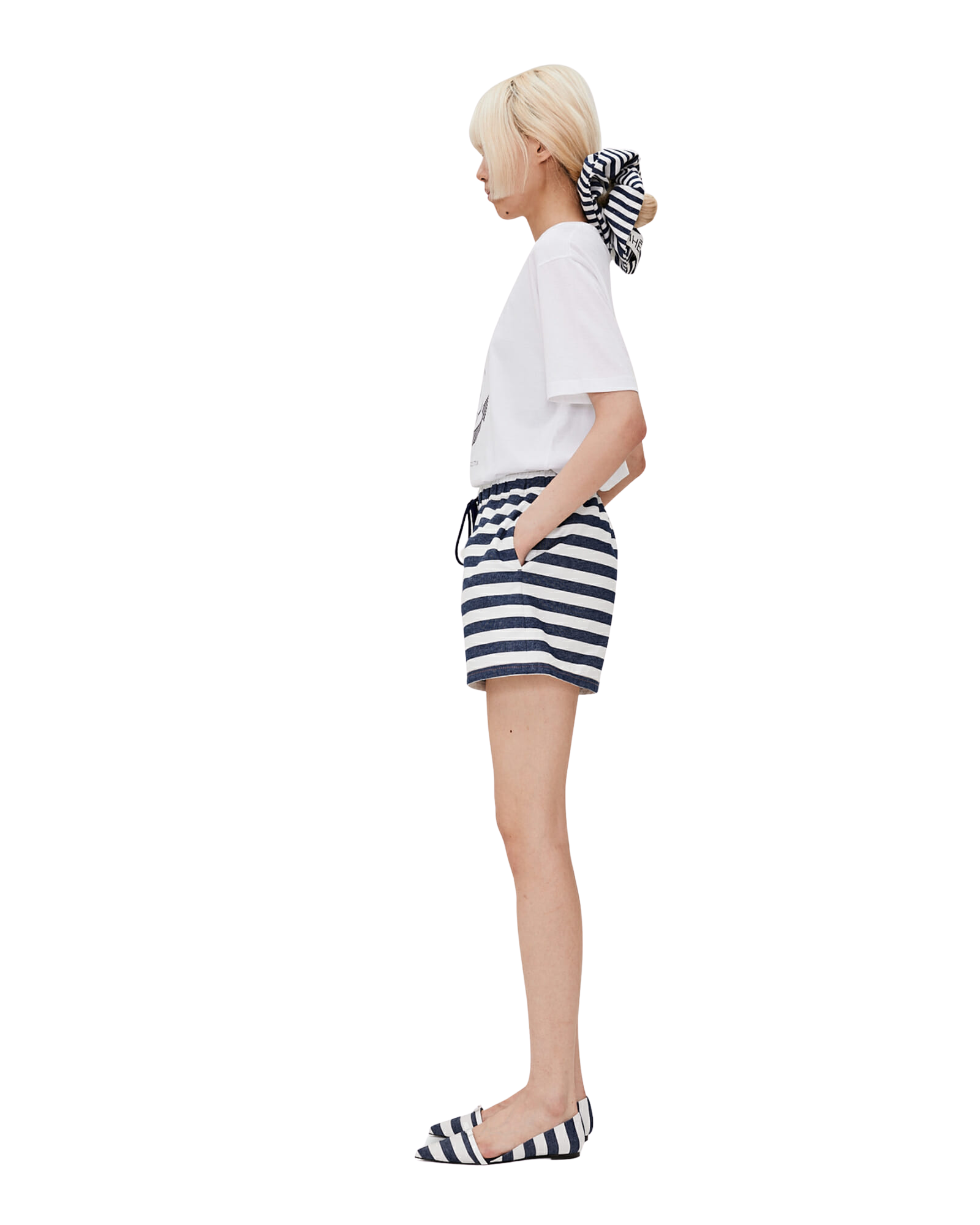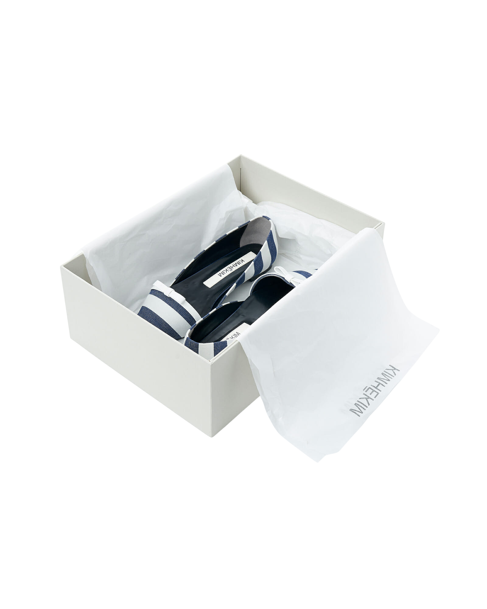 Gabriel Pointy-Toe Striped Denim Flats (Navy)