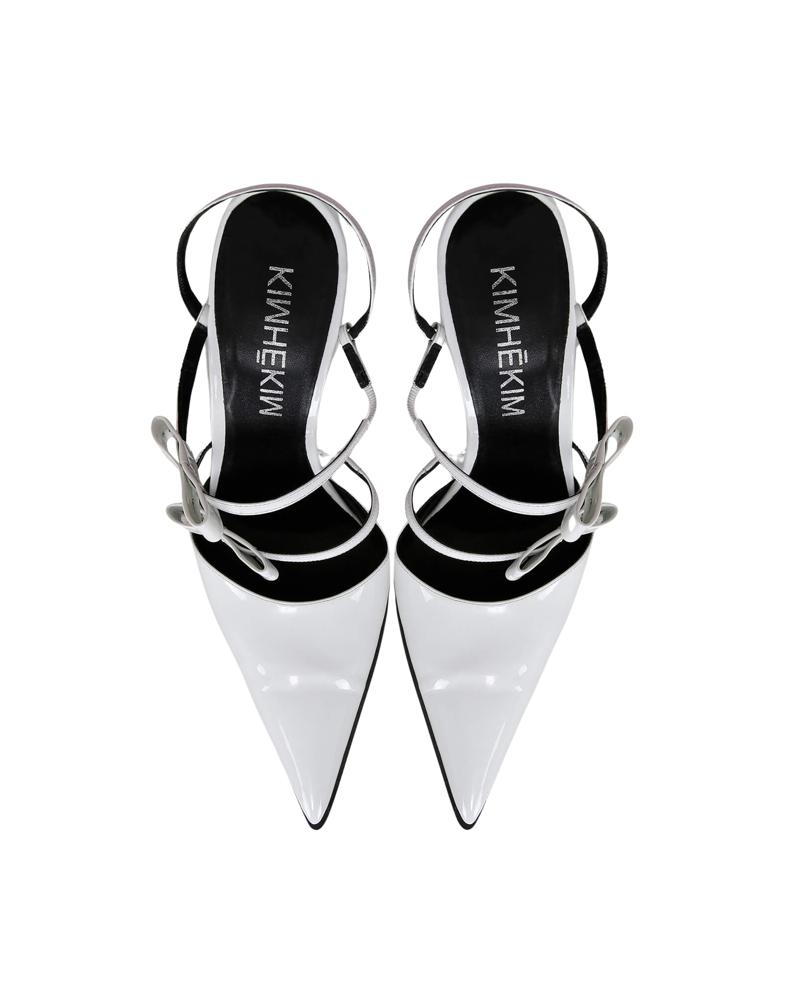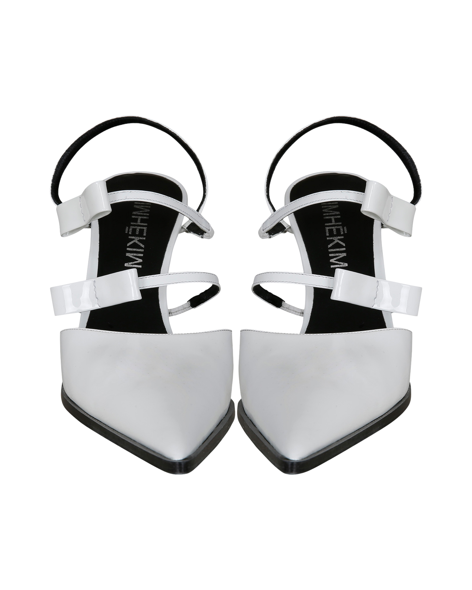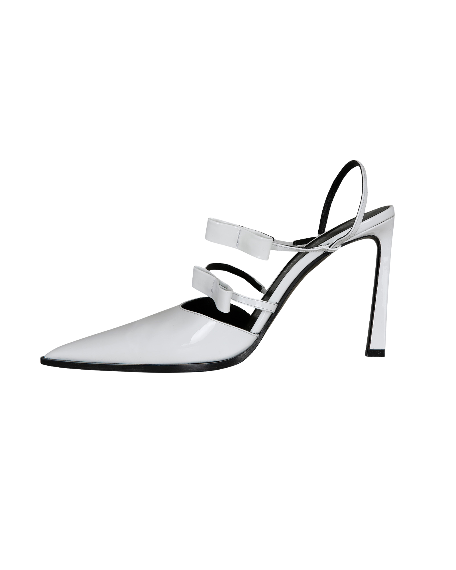 Theses patent Gabriel slingback pumps are made by Italian shoemakers with ribbon details.