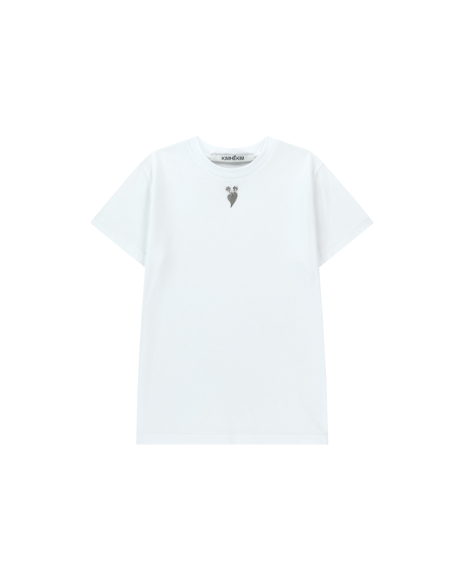 -Featuring a KIMHĒKIM heart charm detail on the front.