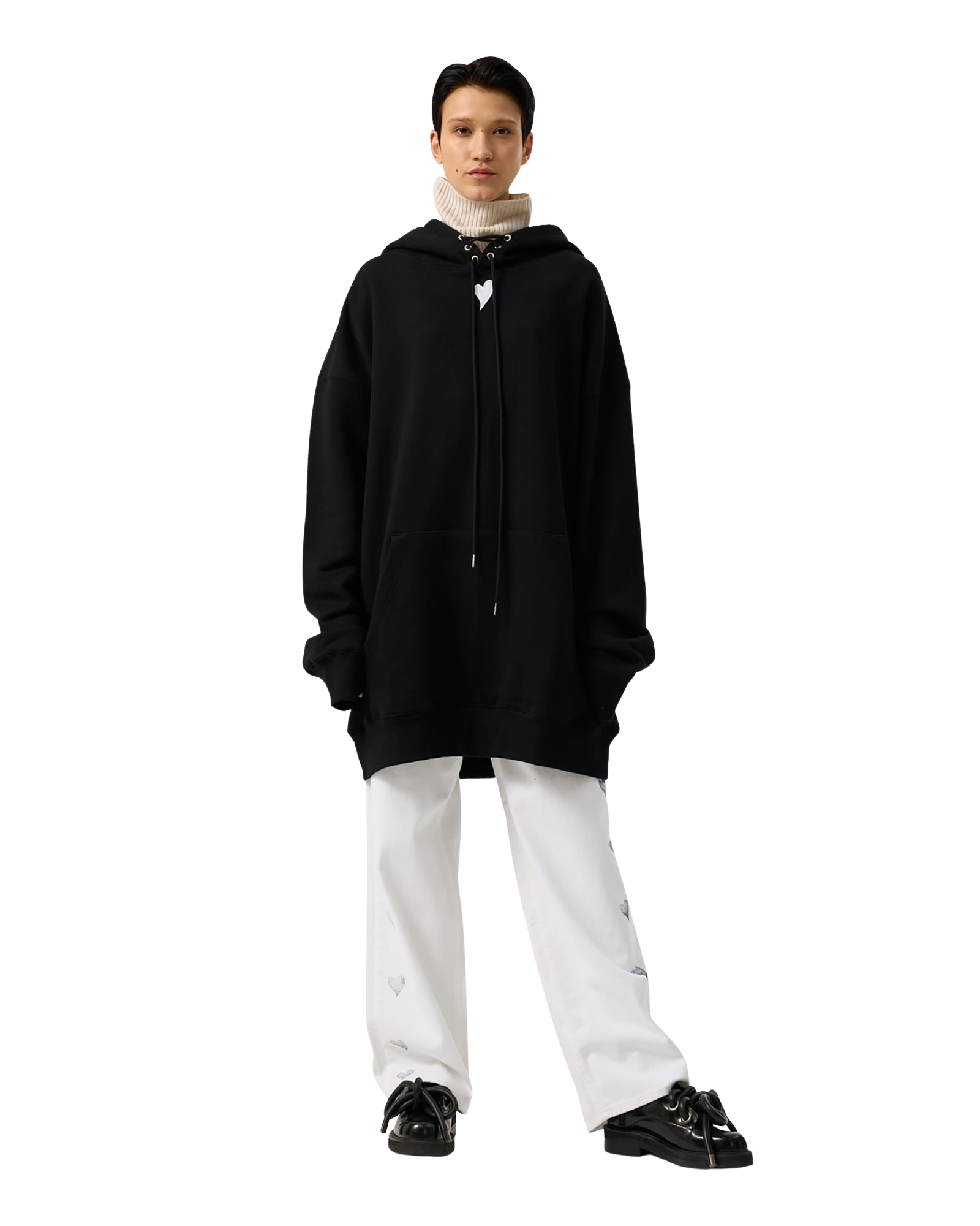 Heart Patch Oversized Hoodie (Black)