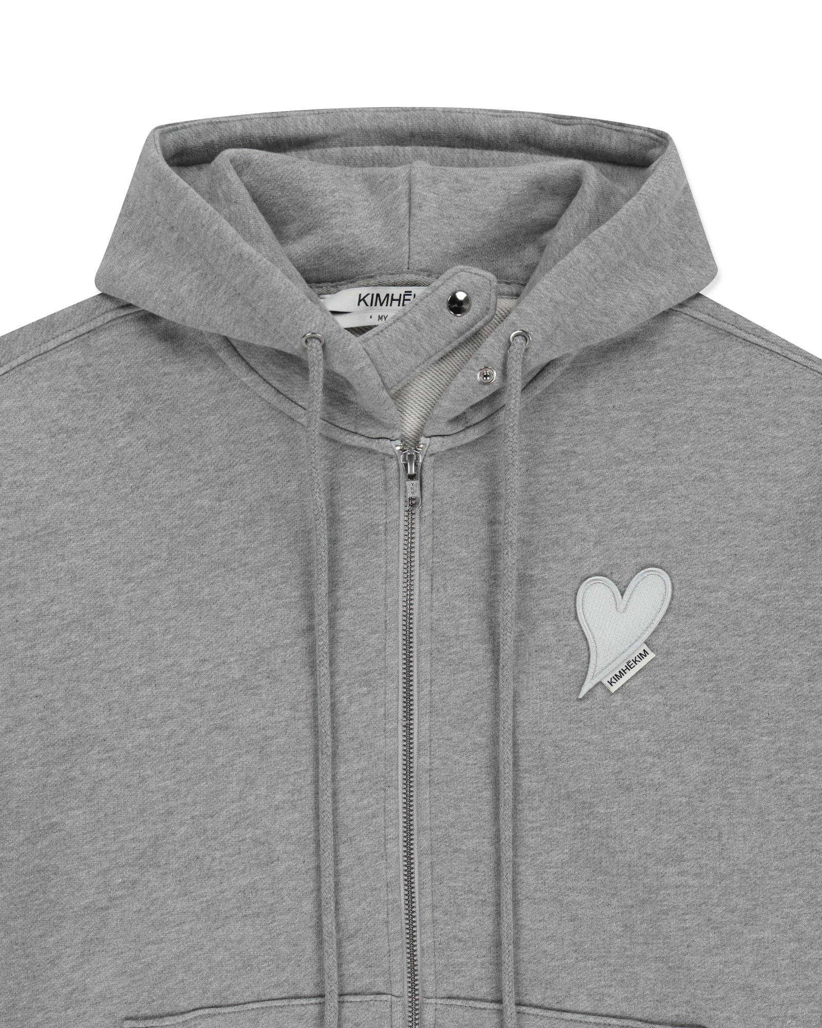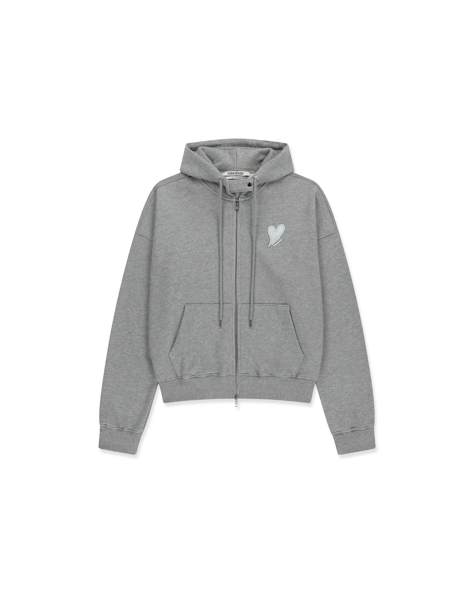 Heart Patch Zip-Up Hoodie (Melange grey)