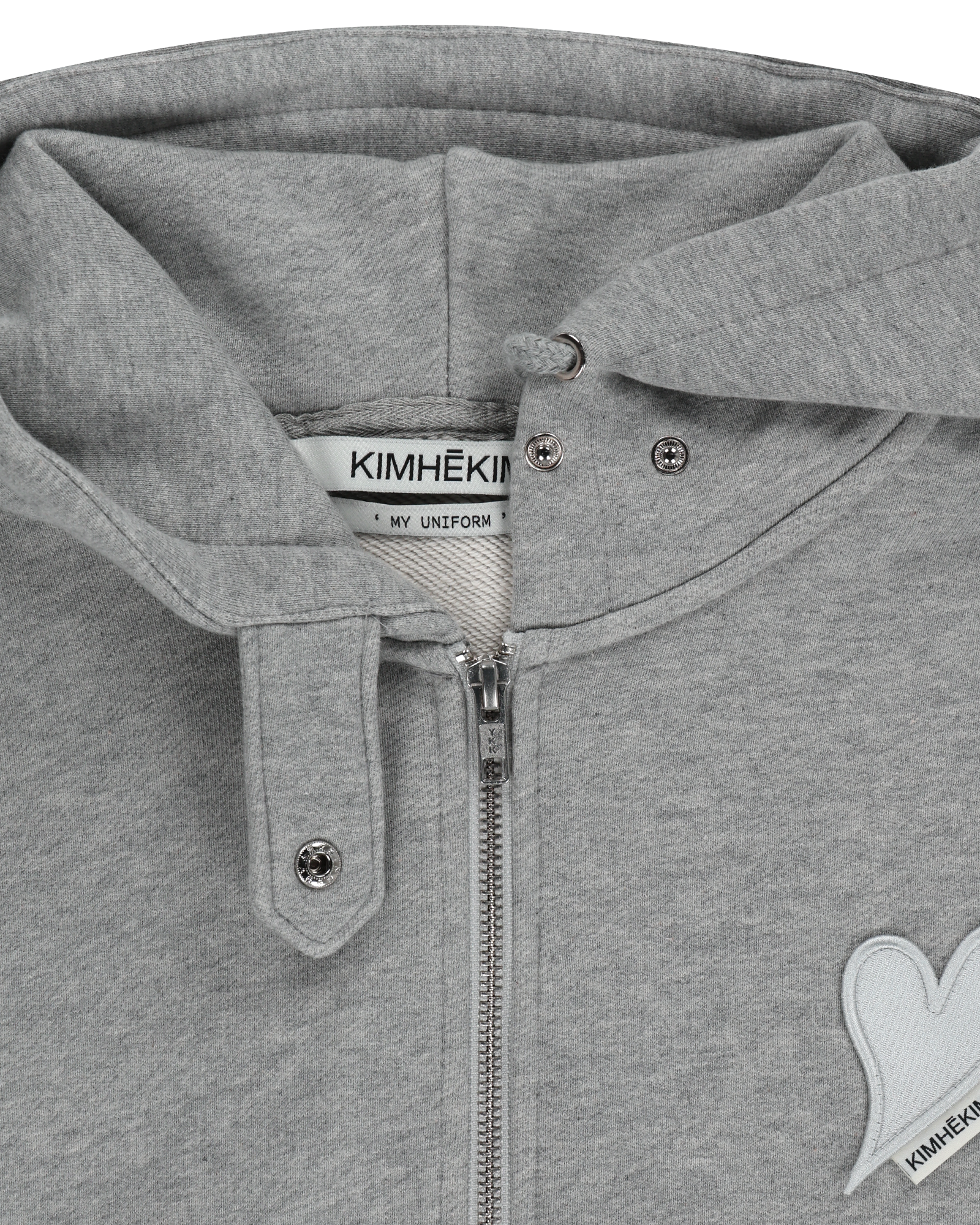-Featuring a KIMHĒKIM heart patch detail on the front.