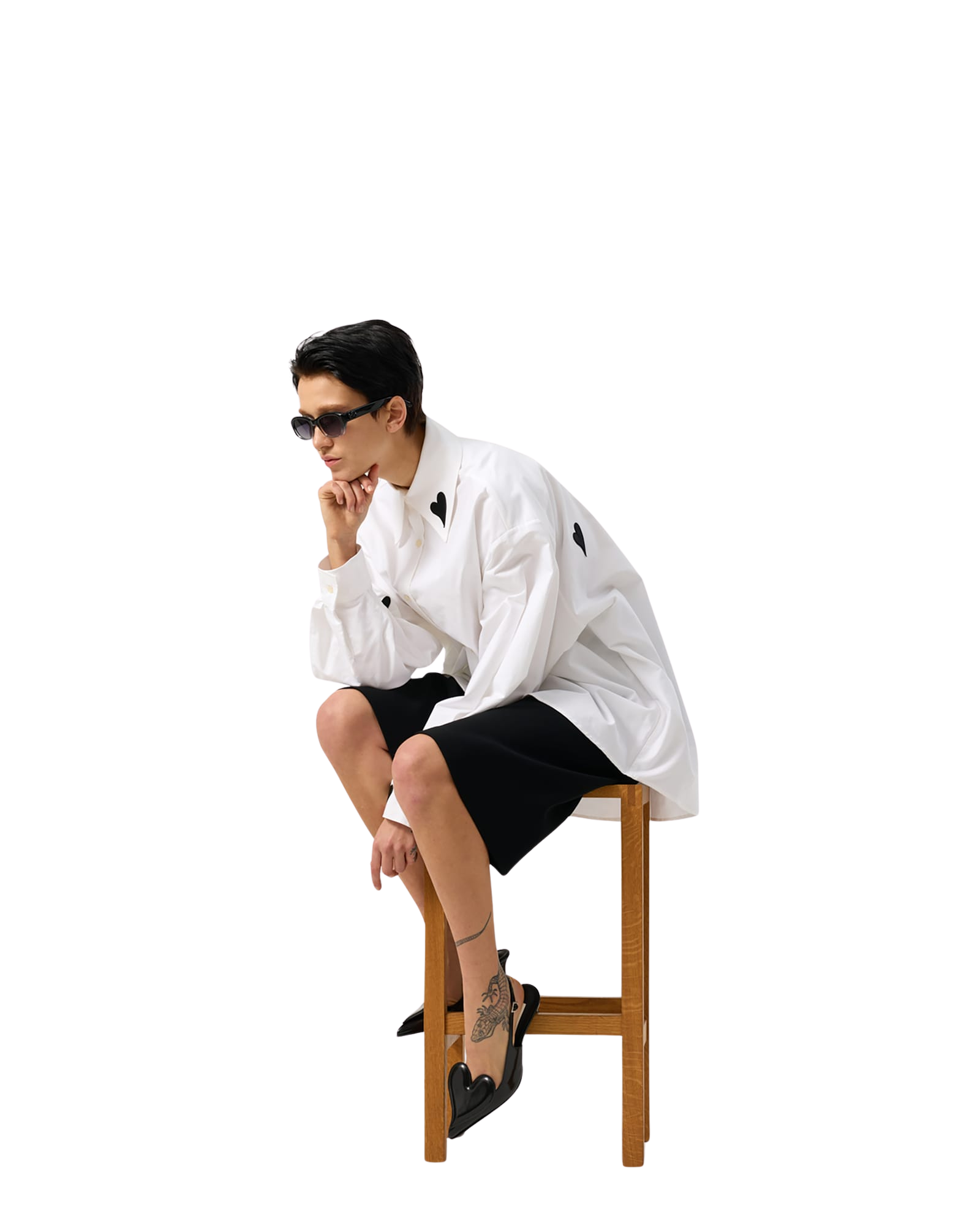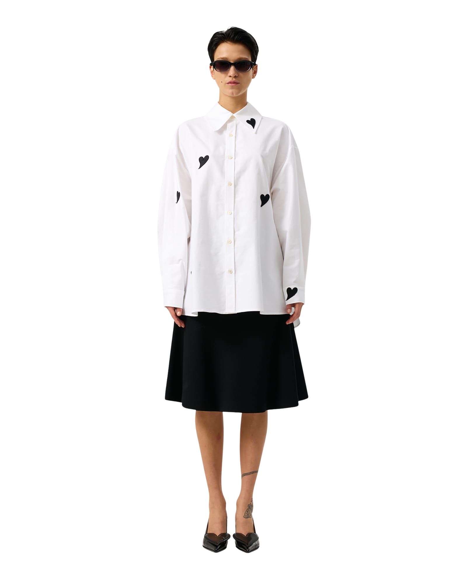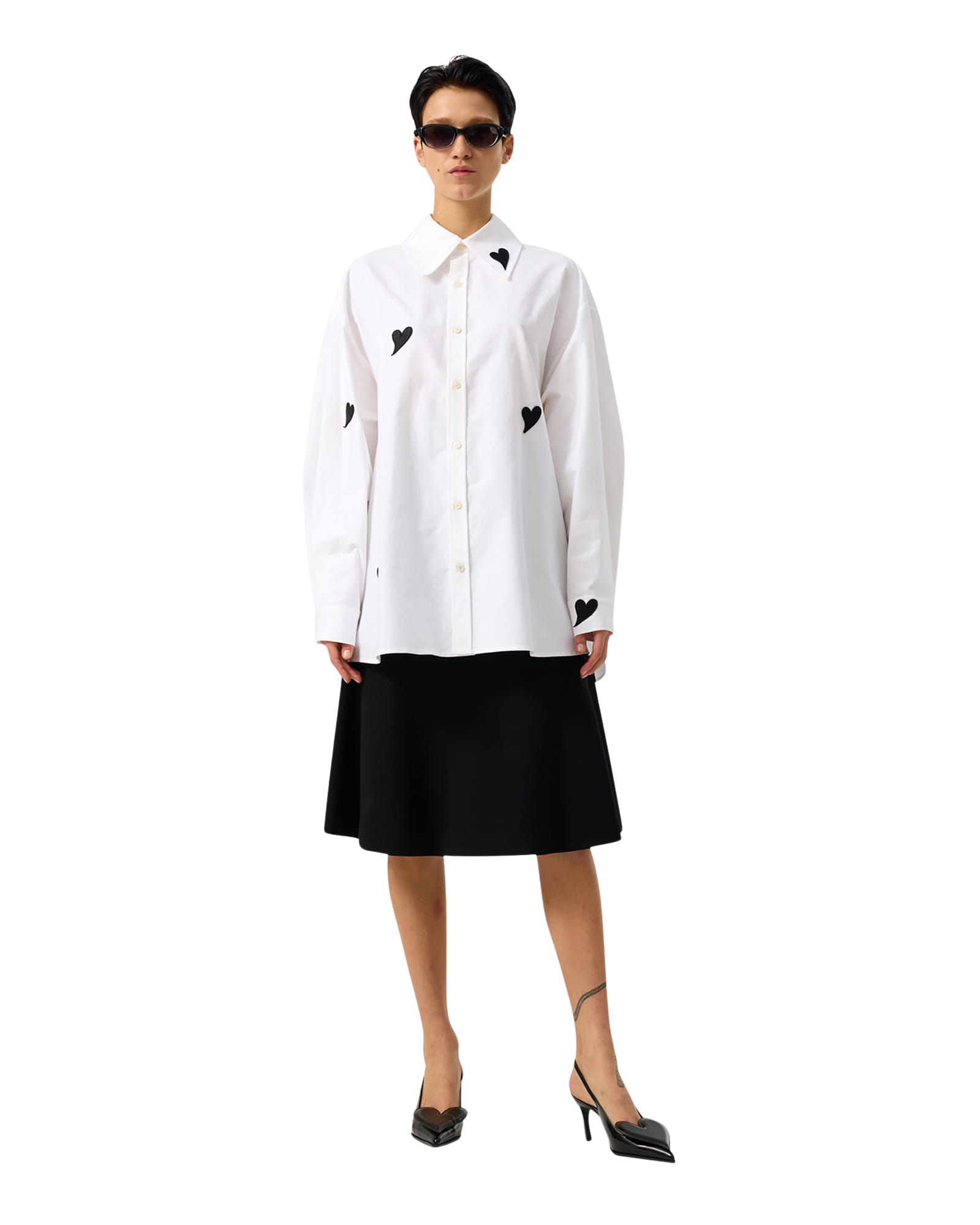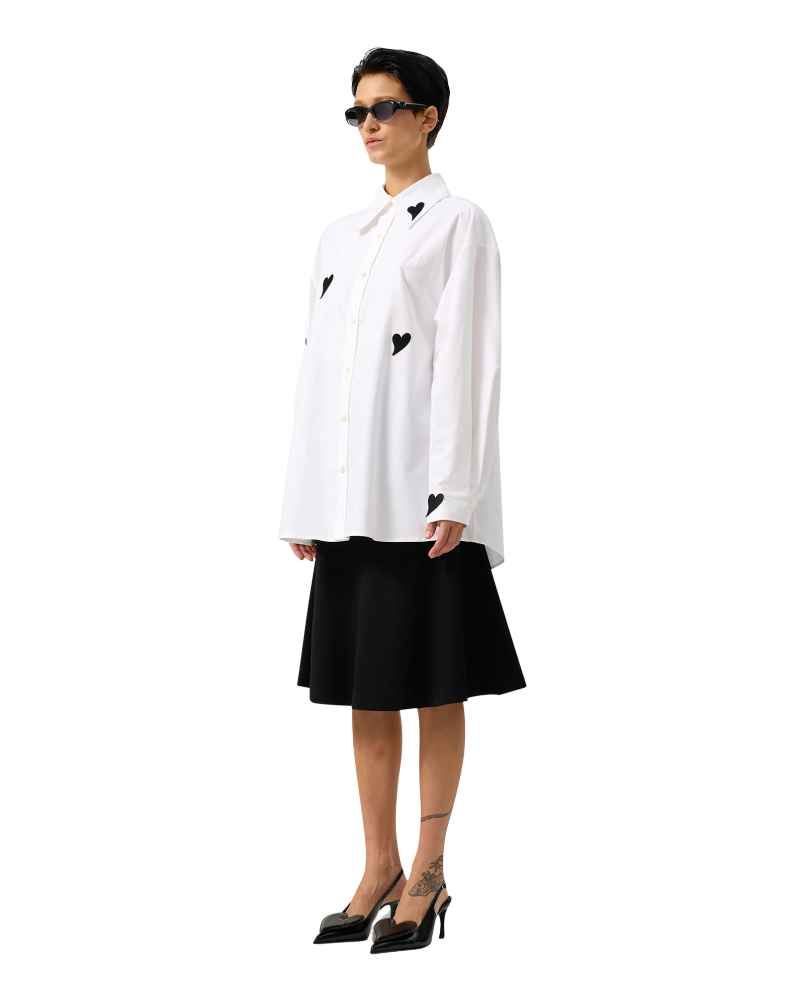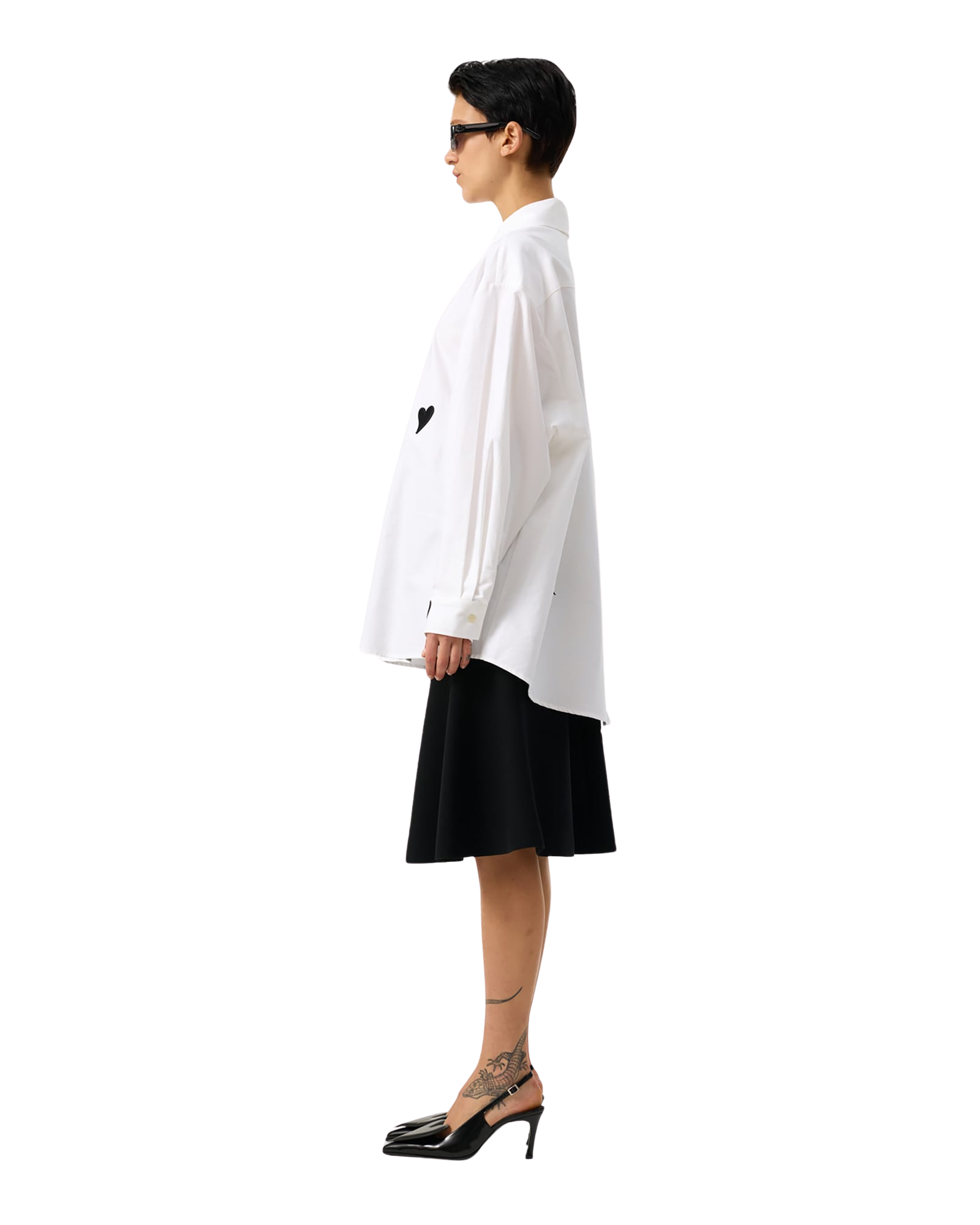Heart Patched Oversized Shirt (White)