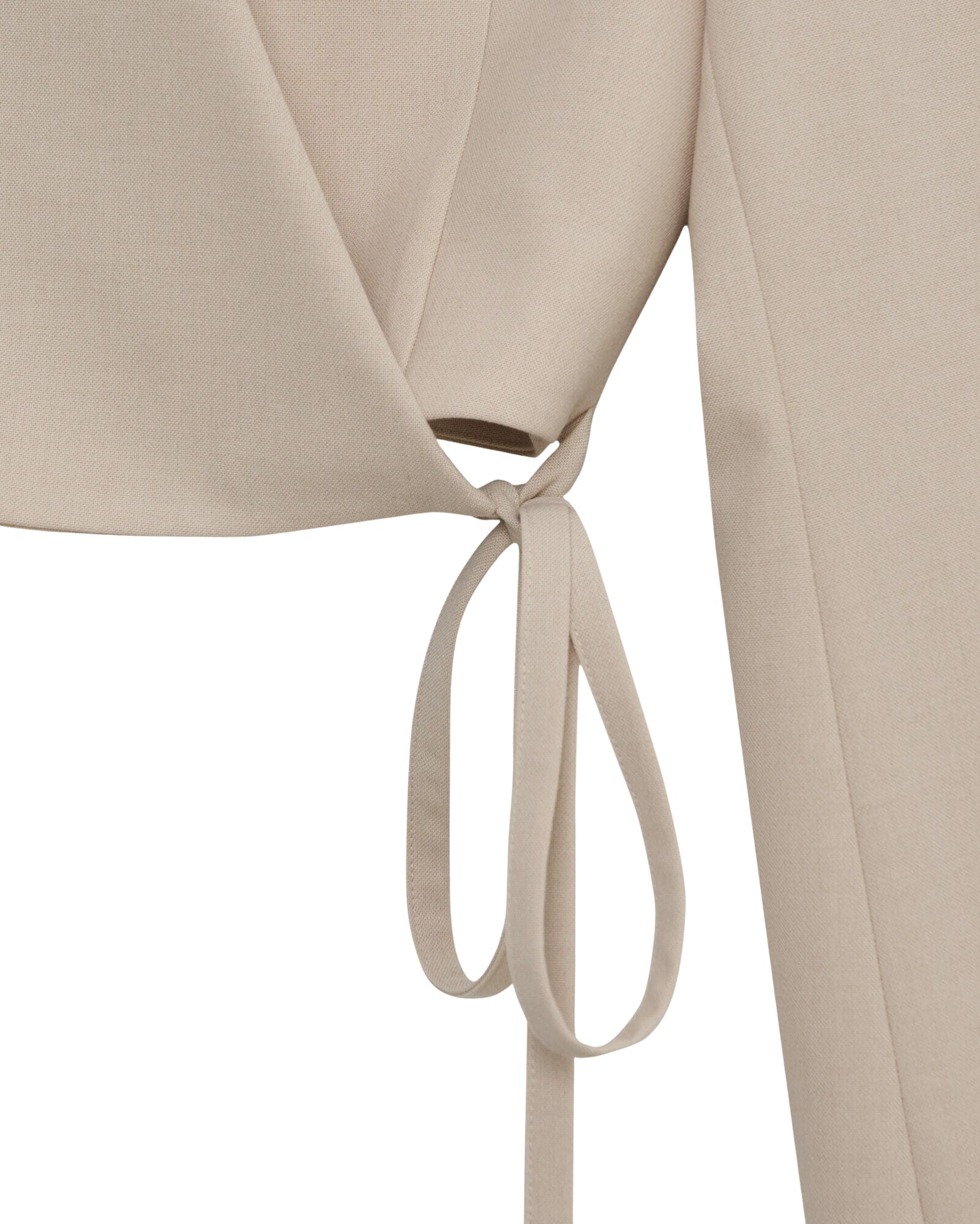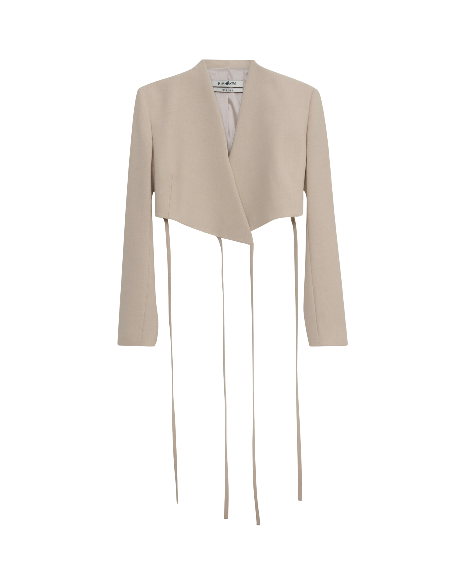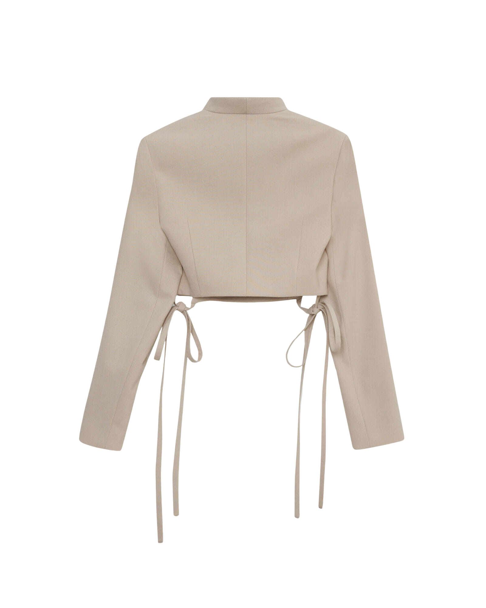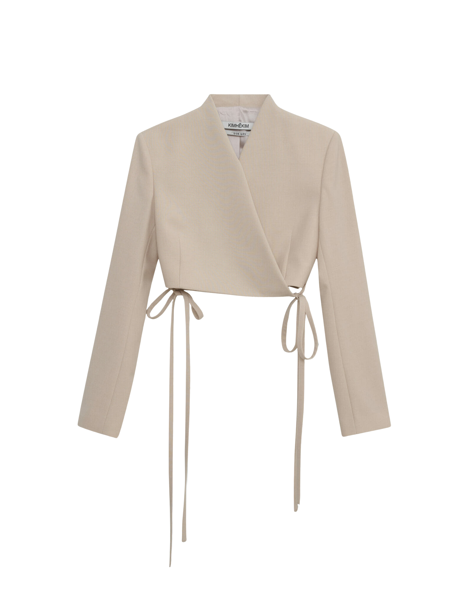 Asymmetric Wool-Cotton Cropped Cardigan (Navy/Ivory)
