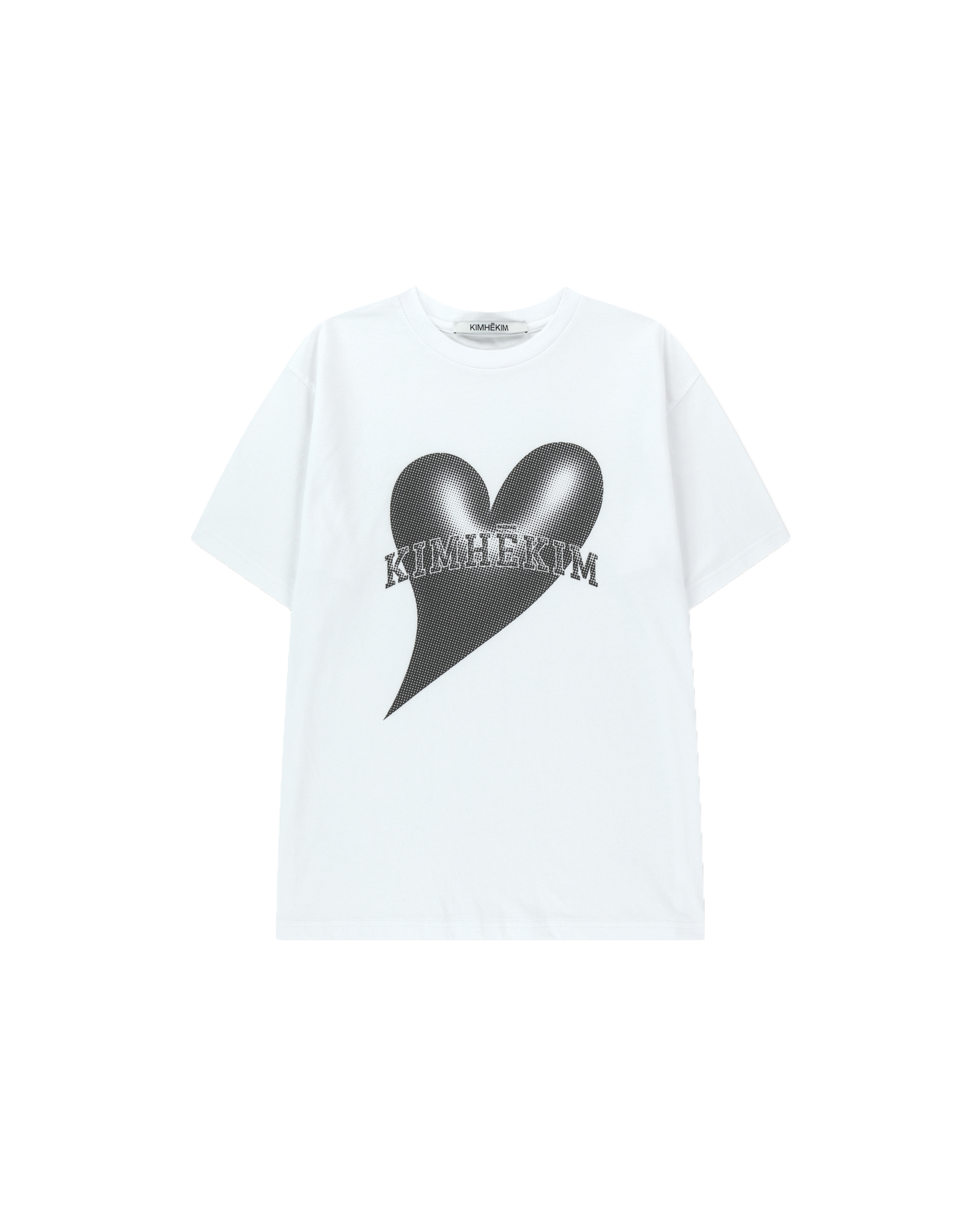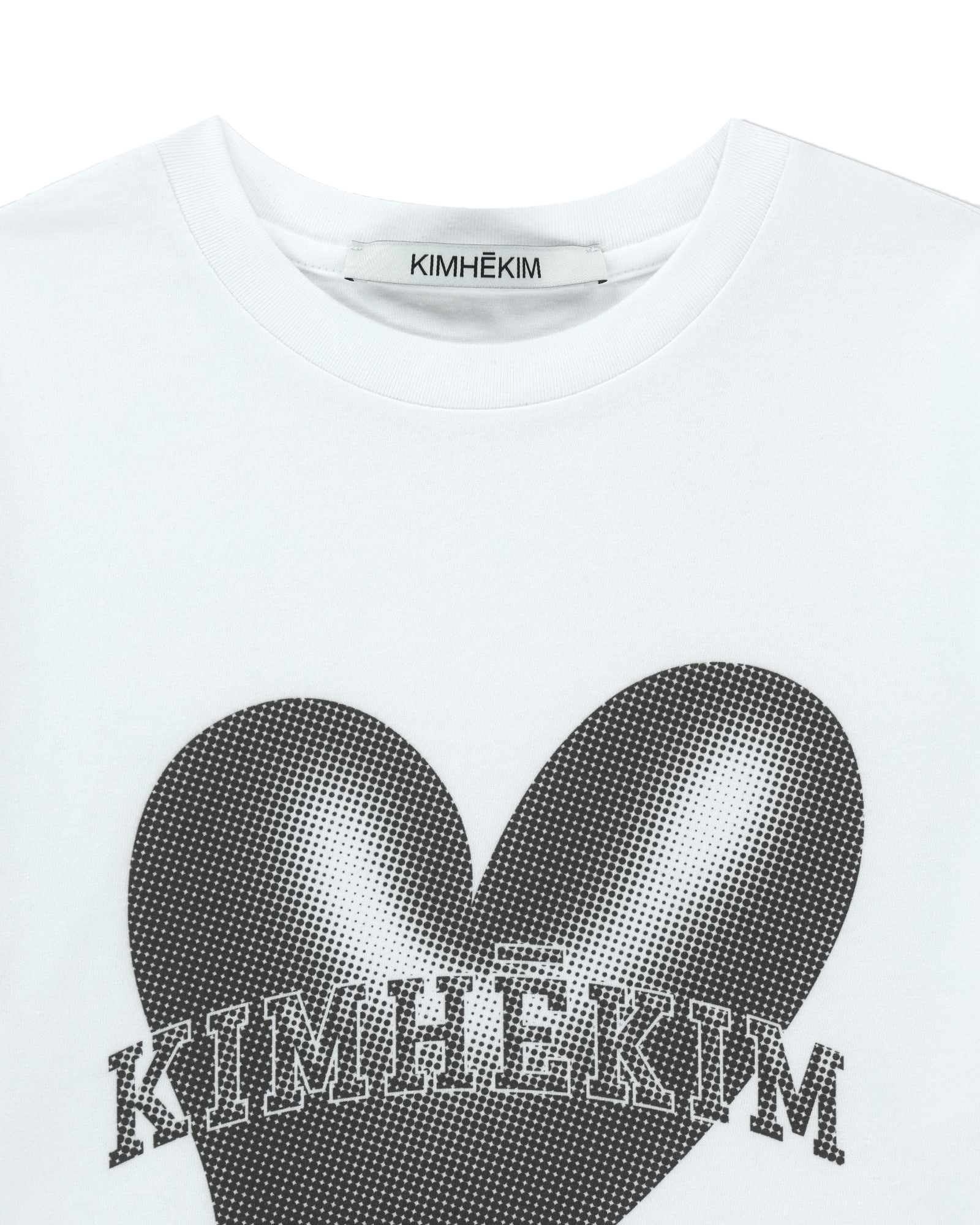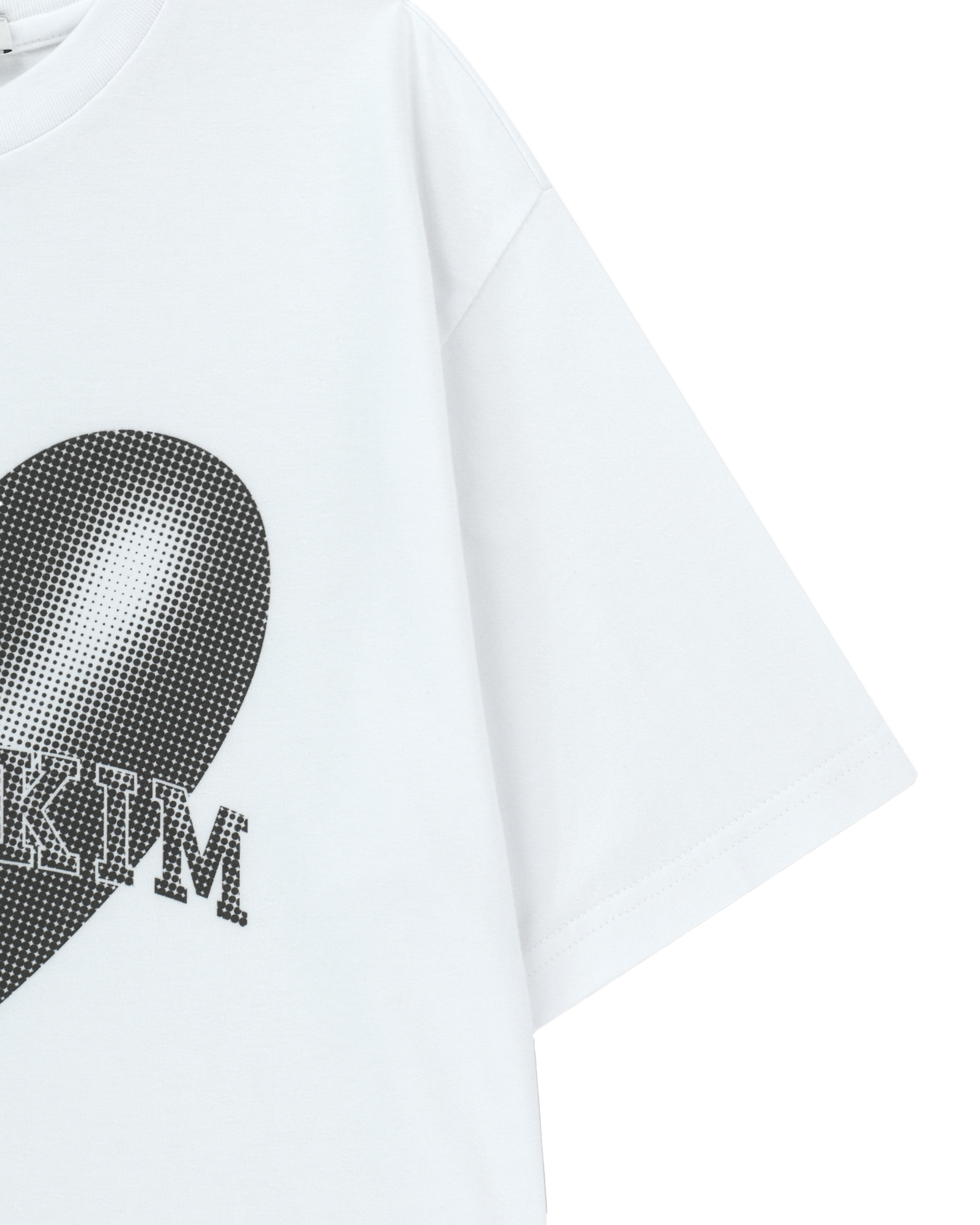 -Featuring a halftone-style digital print of the KIMHĒKIM heart balloon.