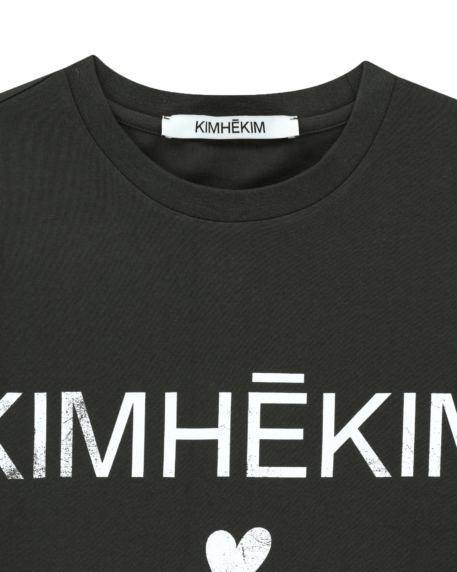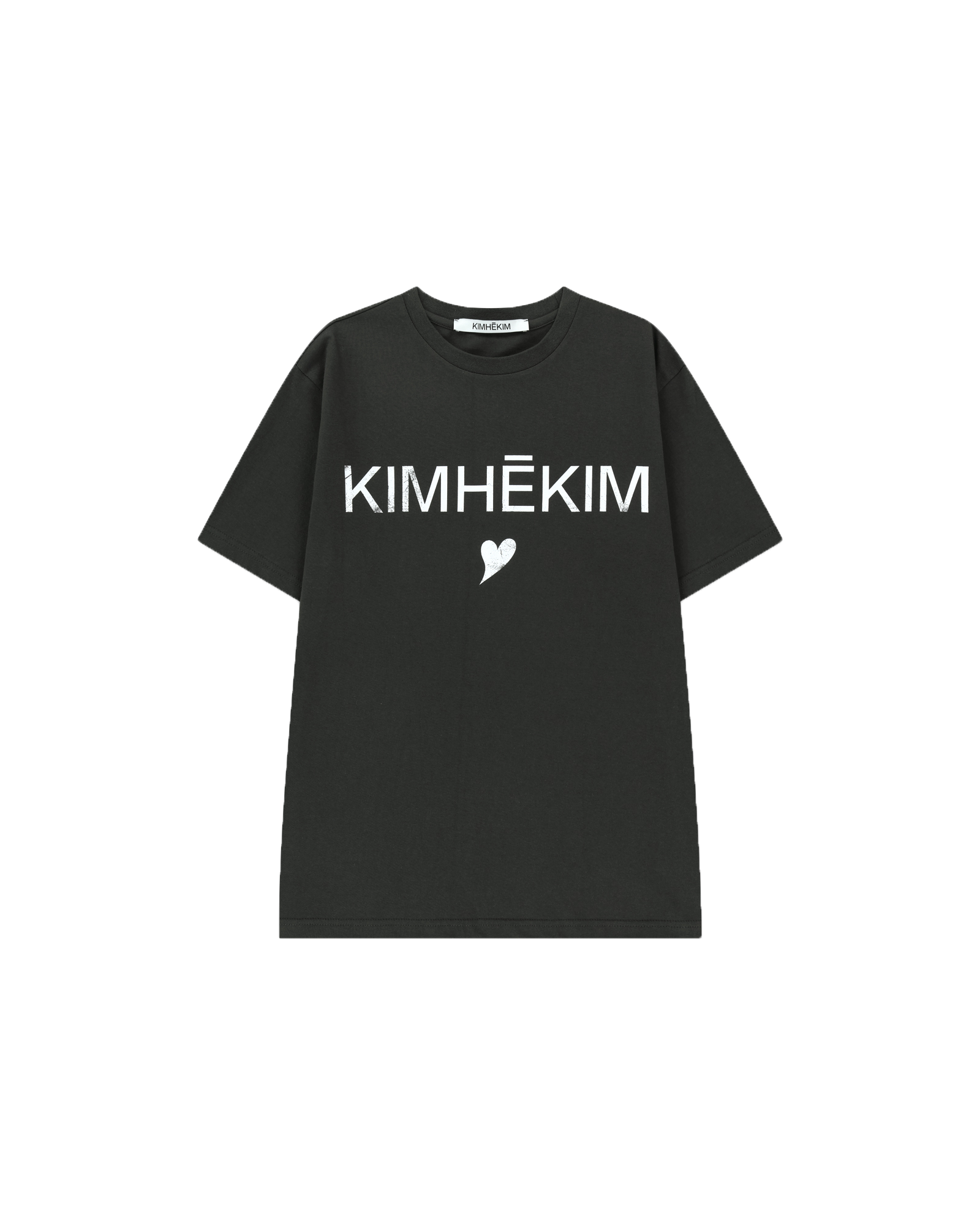 Kimhekim Heart Vintage Print T-Shirt (Charcoal)