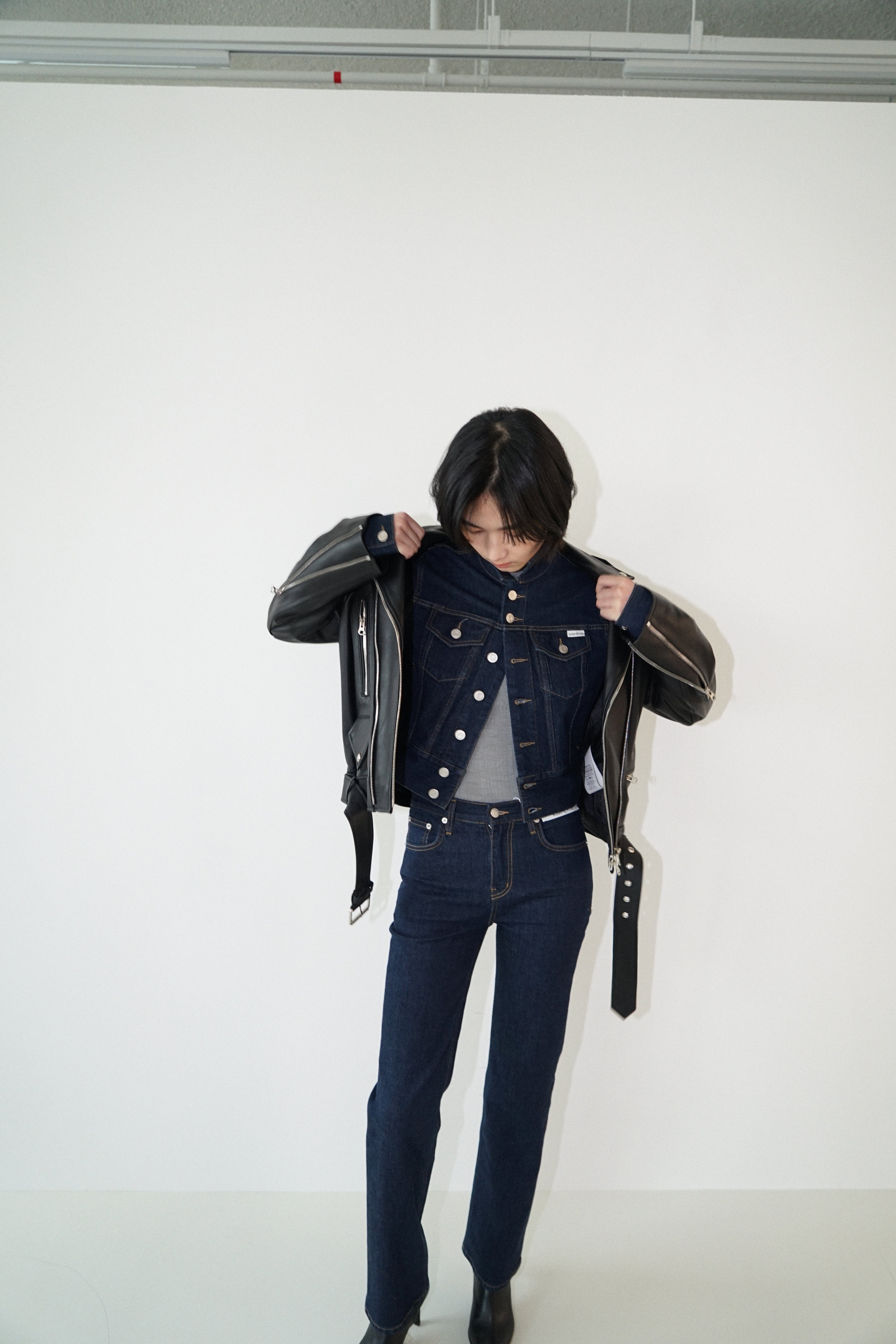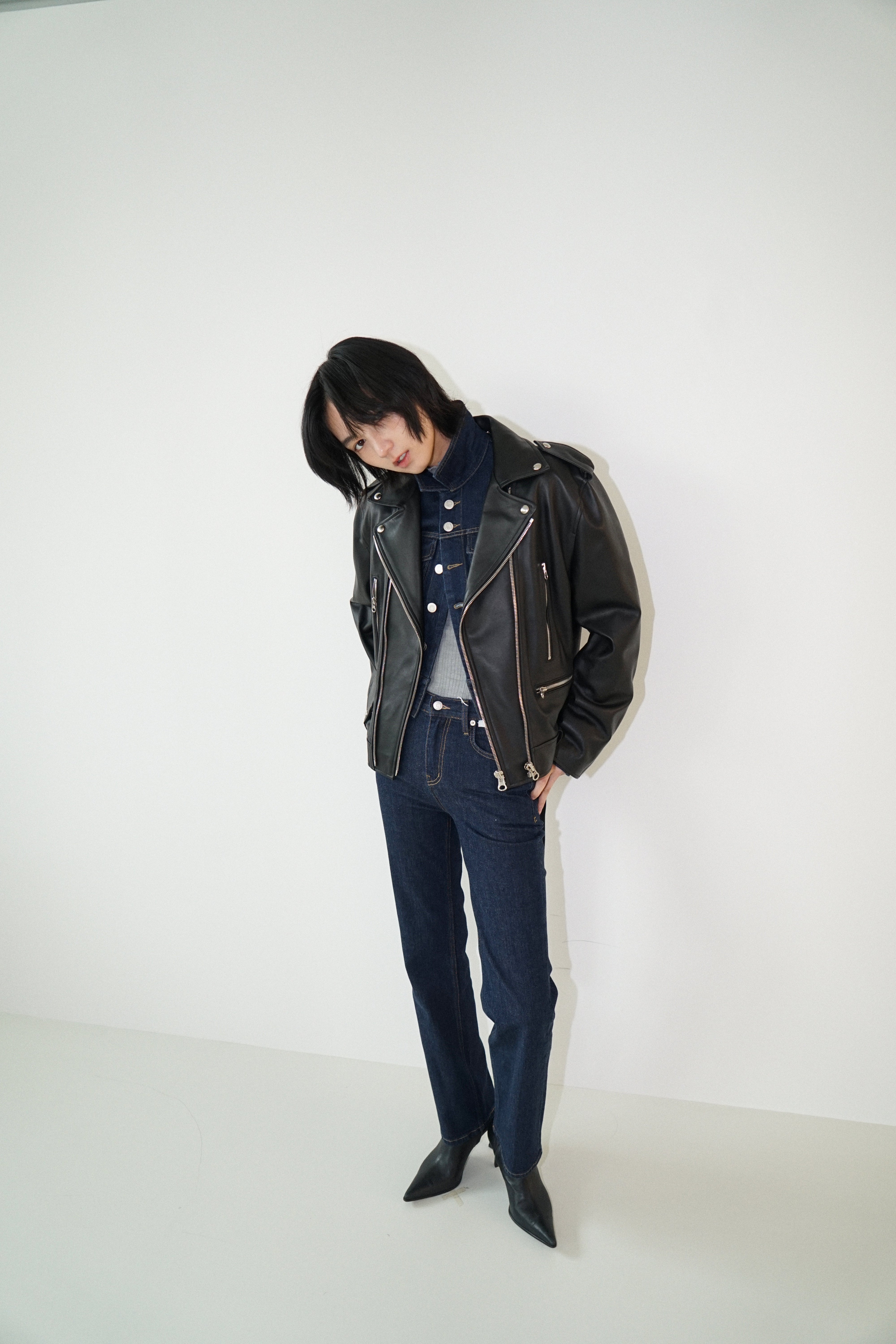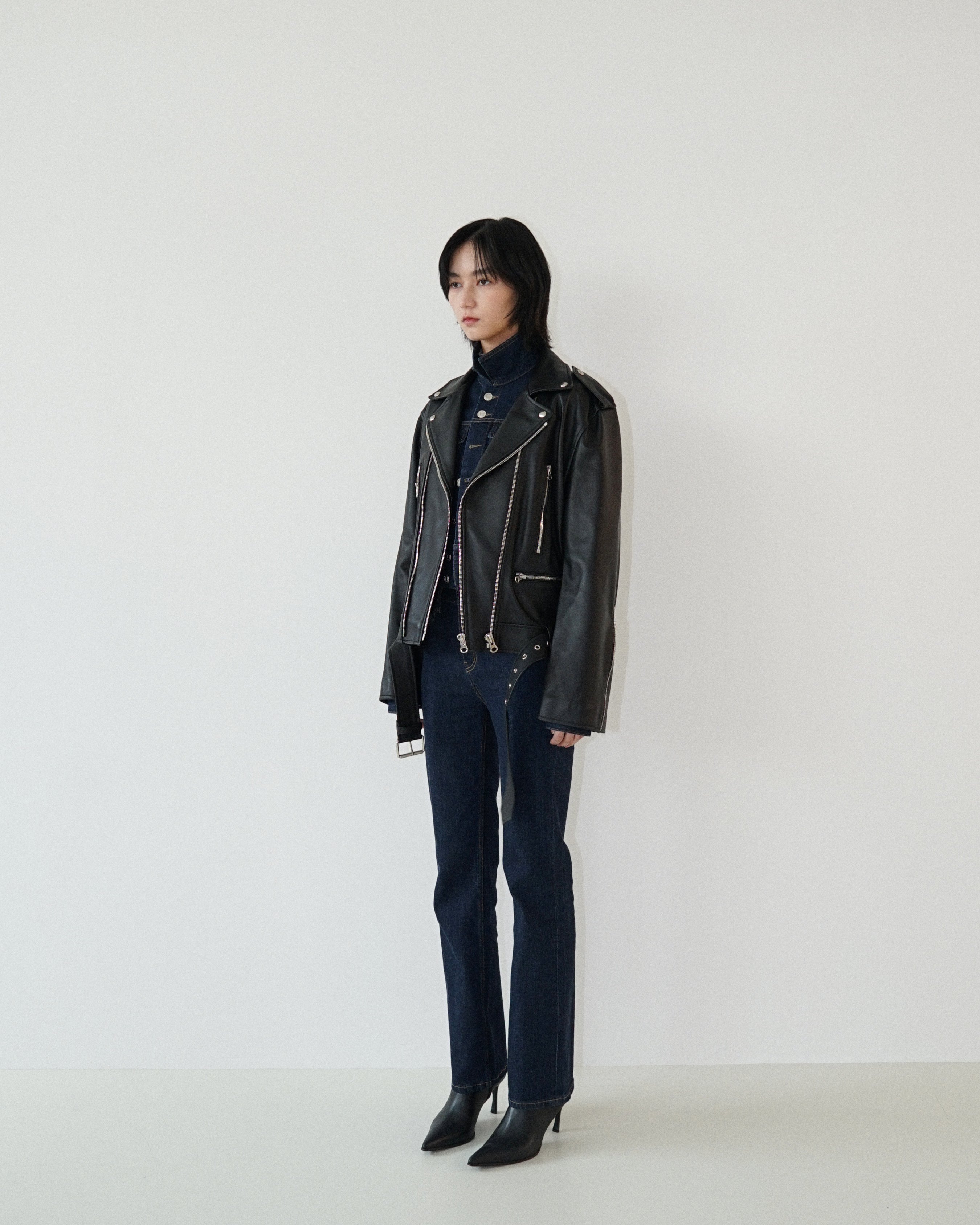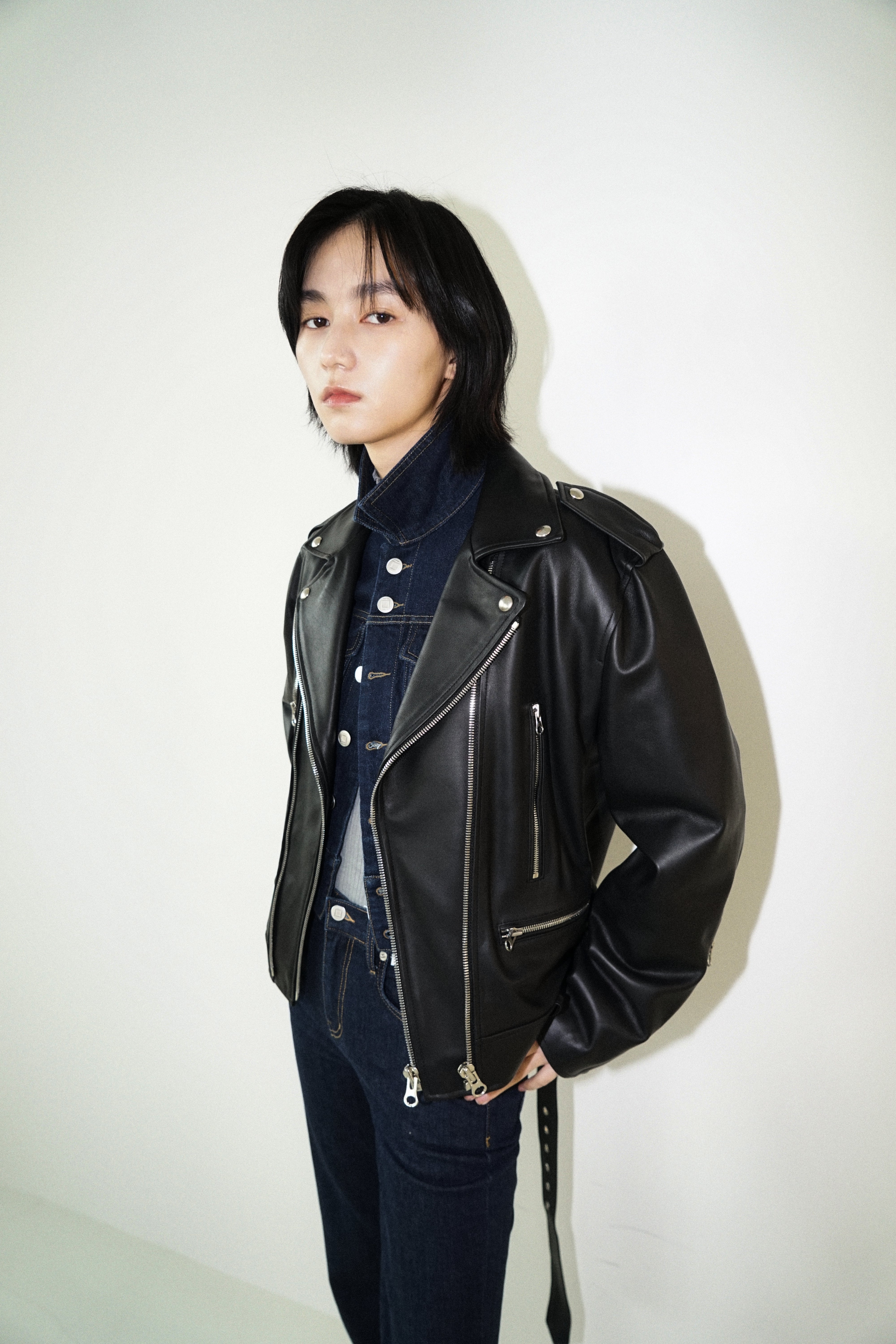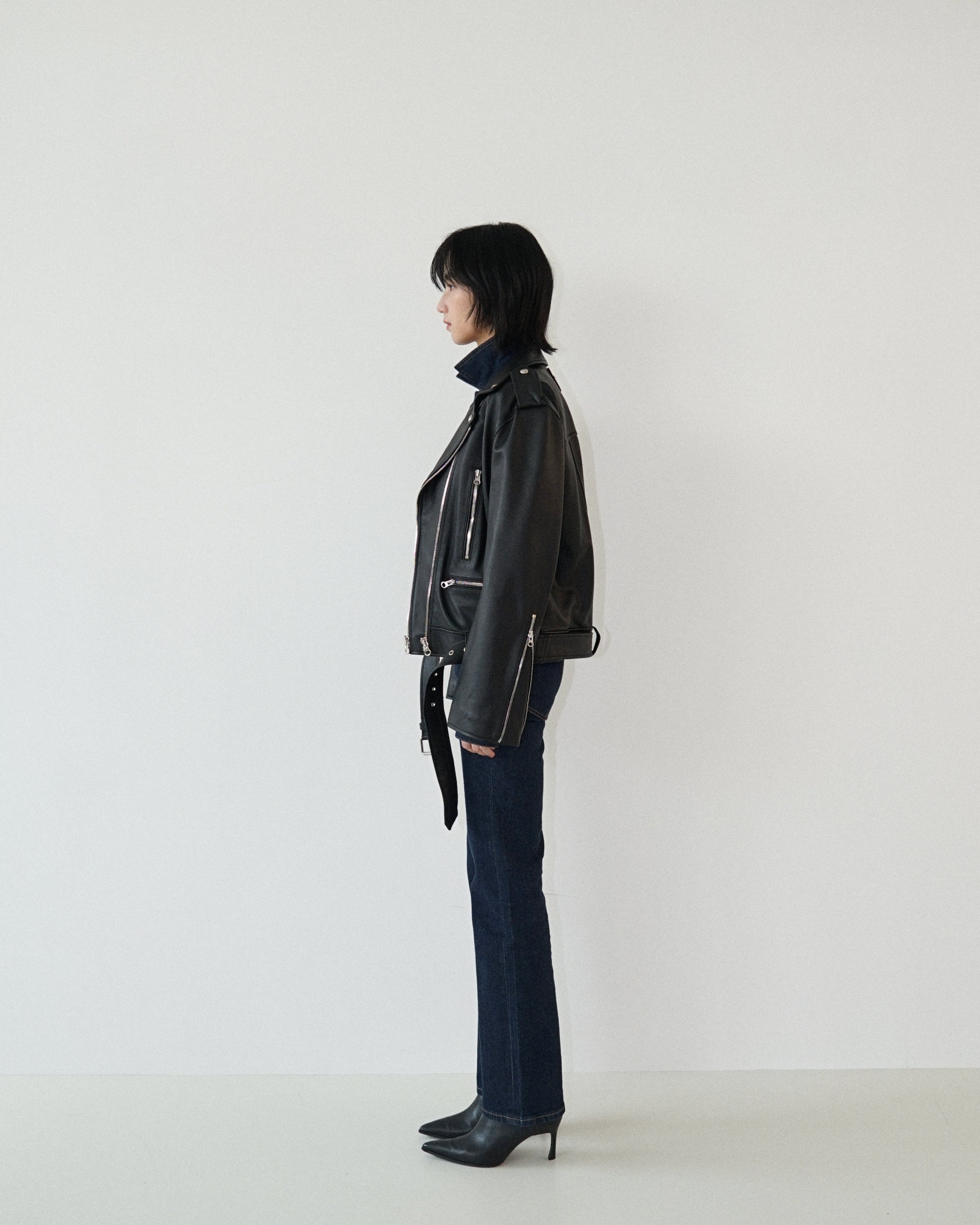 -Designed to be regular fit biker jacket.