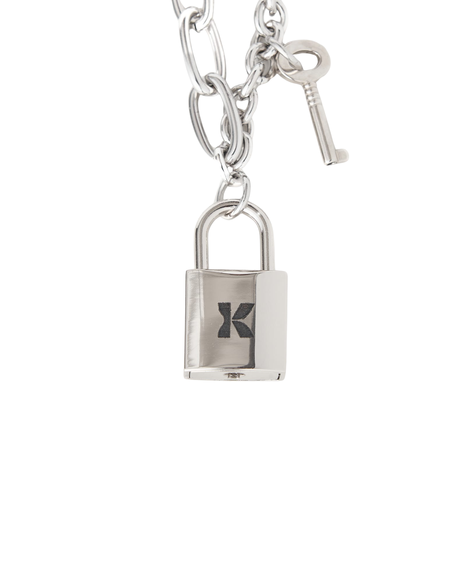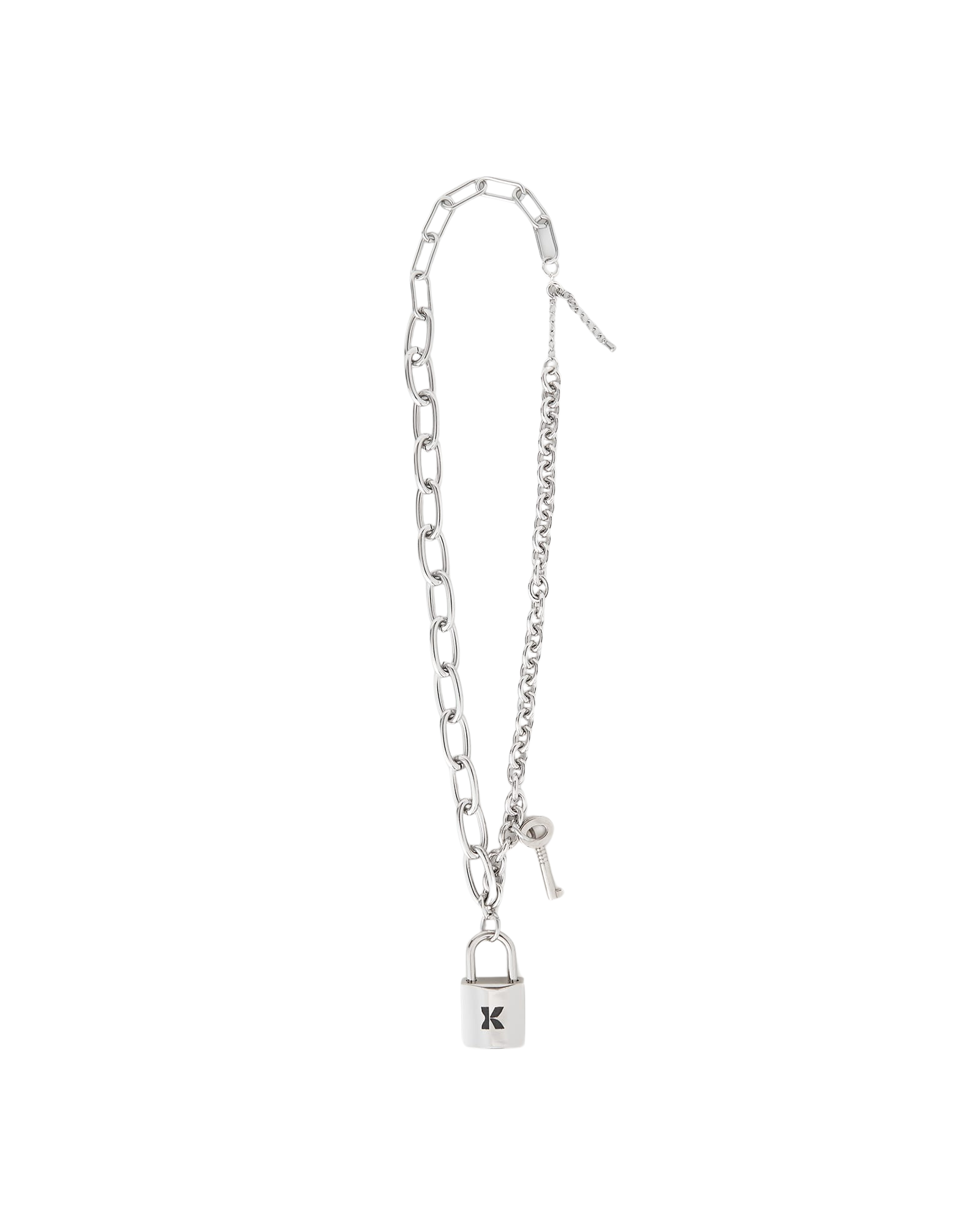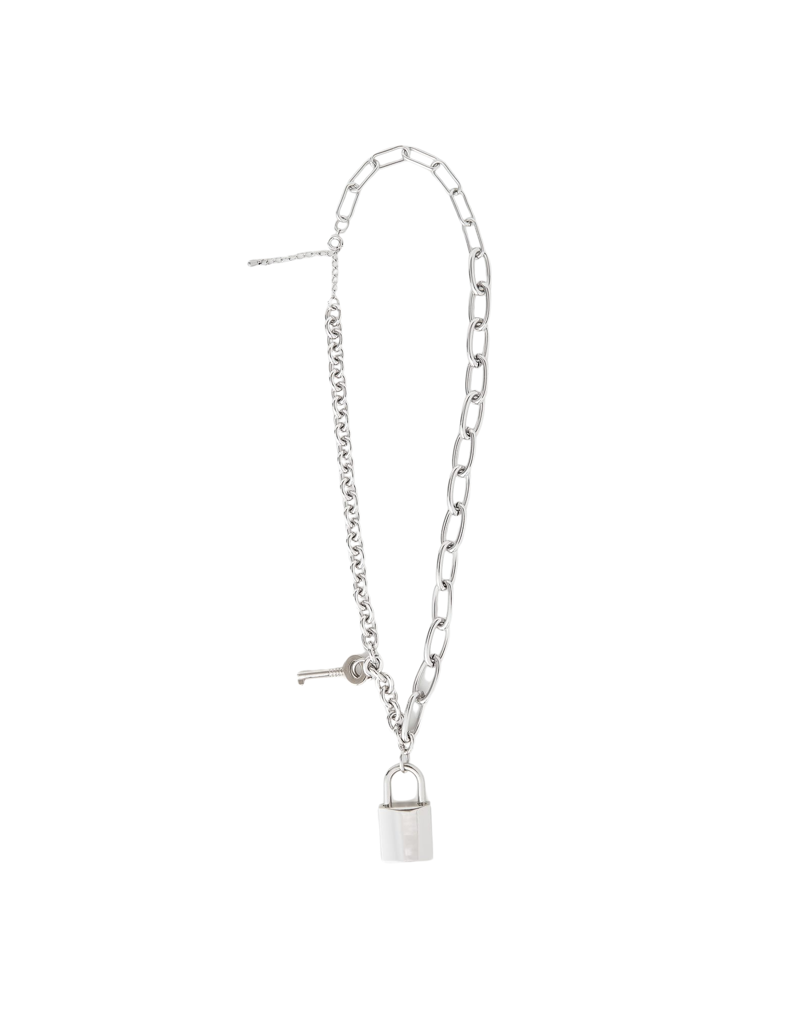 Lock Key Pendant Chain Necklace (Silver)