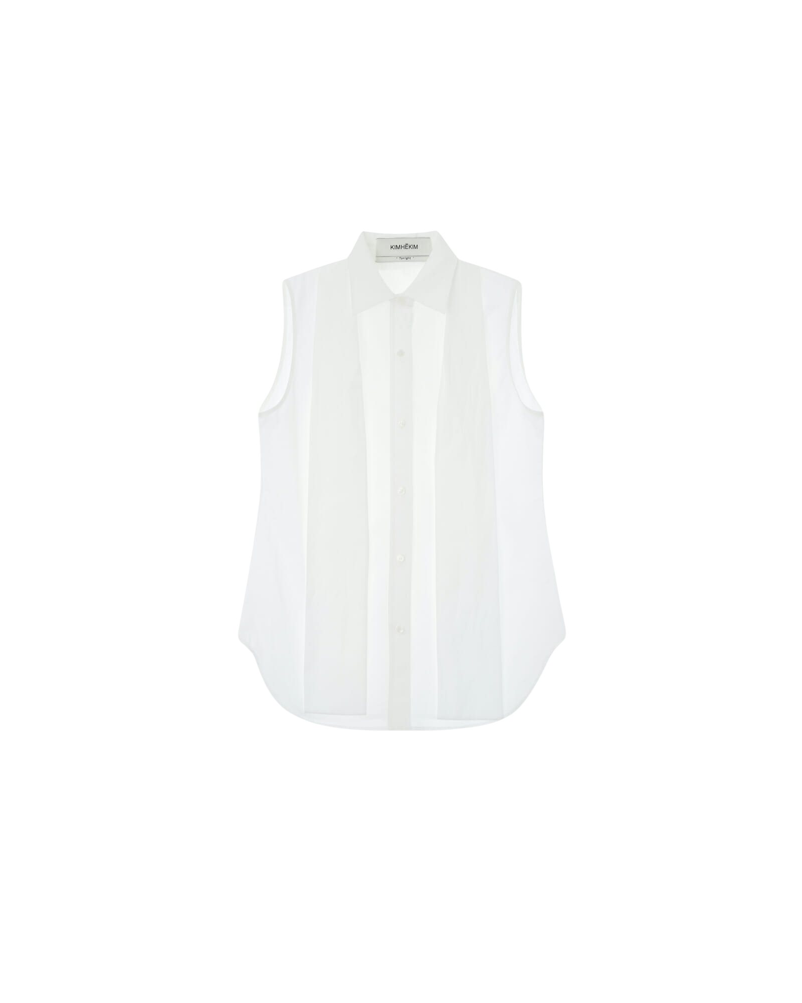Logo-Embroidered Sleeveless Cotton Shirt (White)