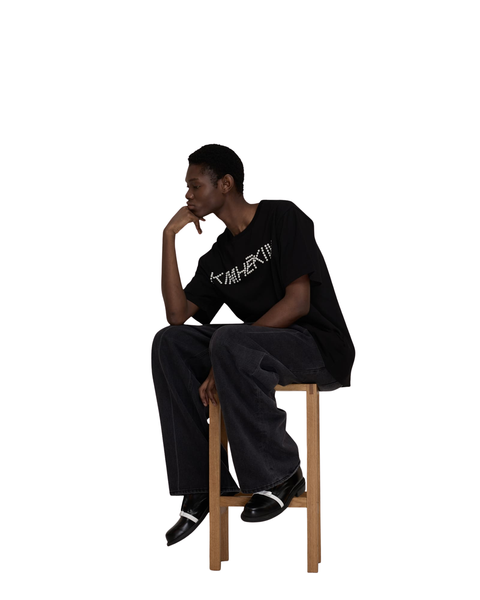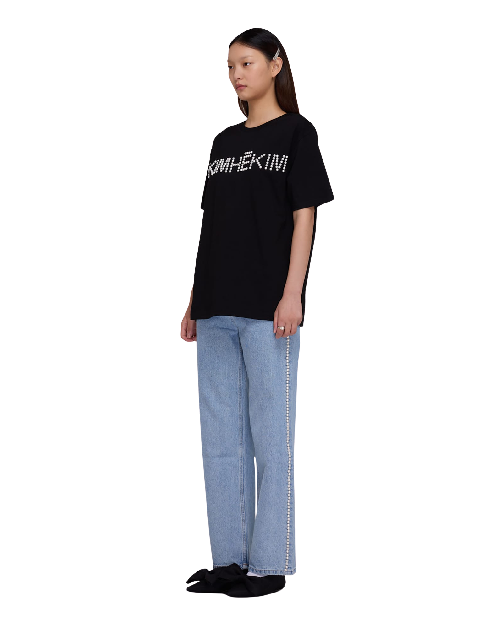 Logo T-Shirt With Pearl Embellishment (Black)