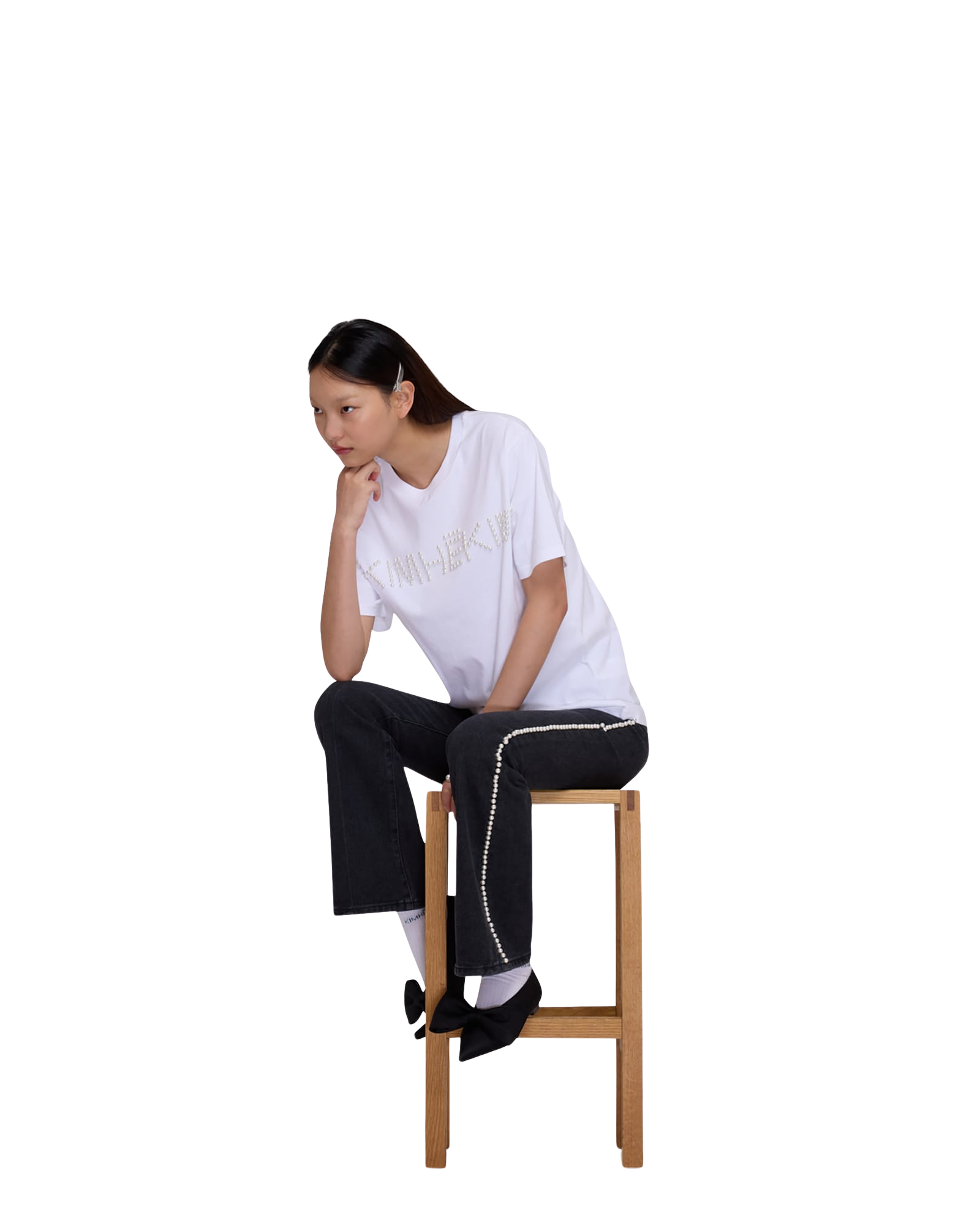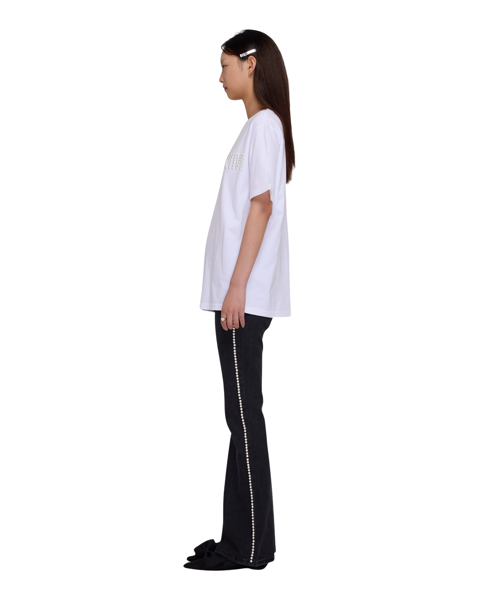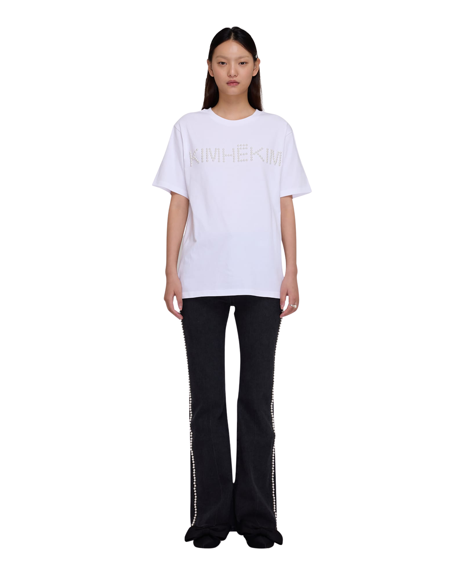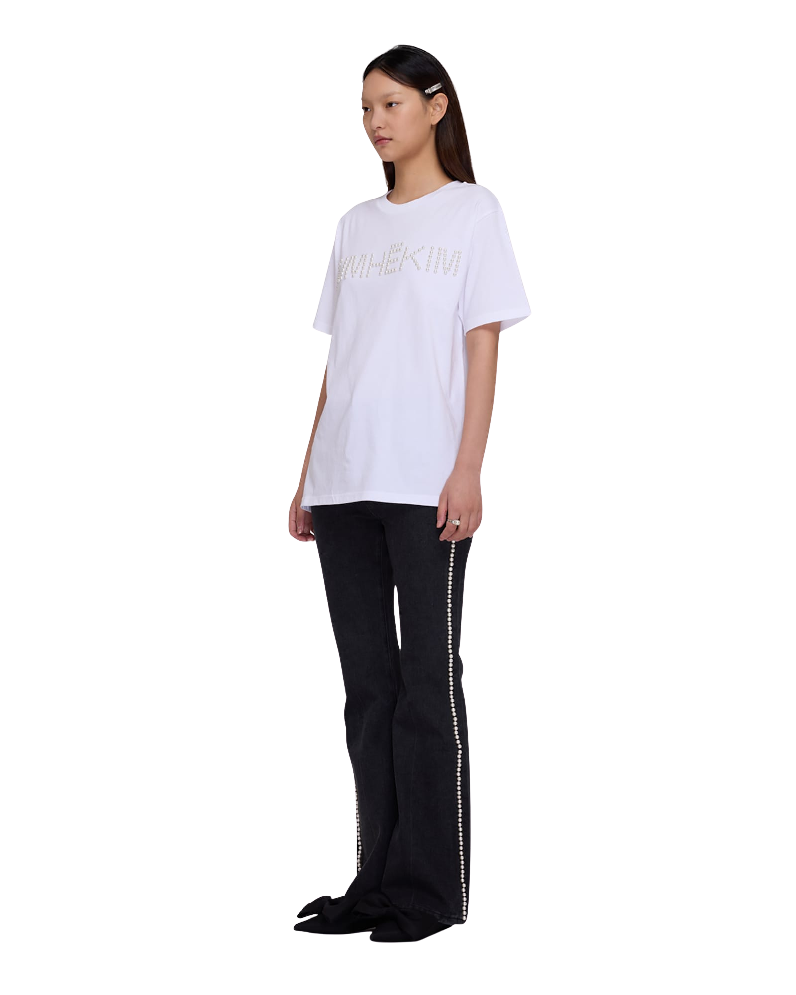 Logo T-Shirt With Pearl Embellishment (White)