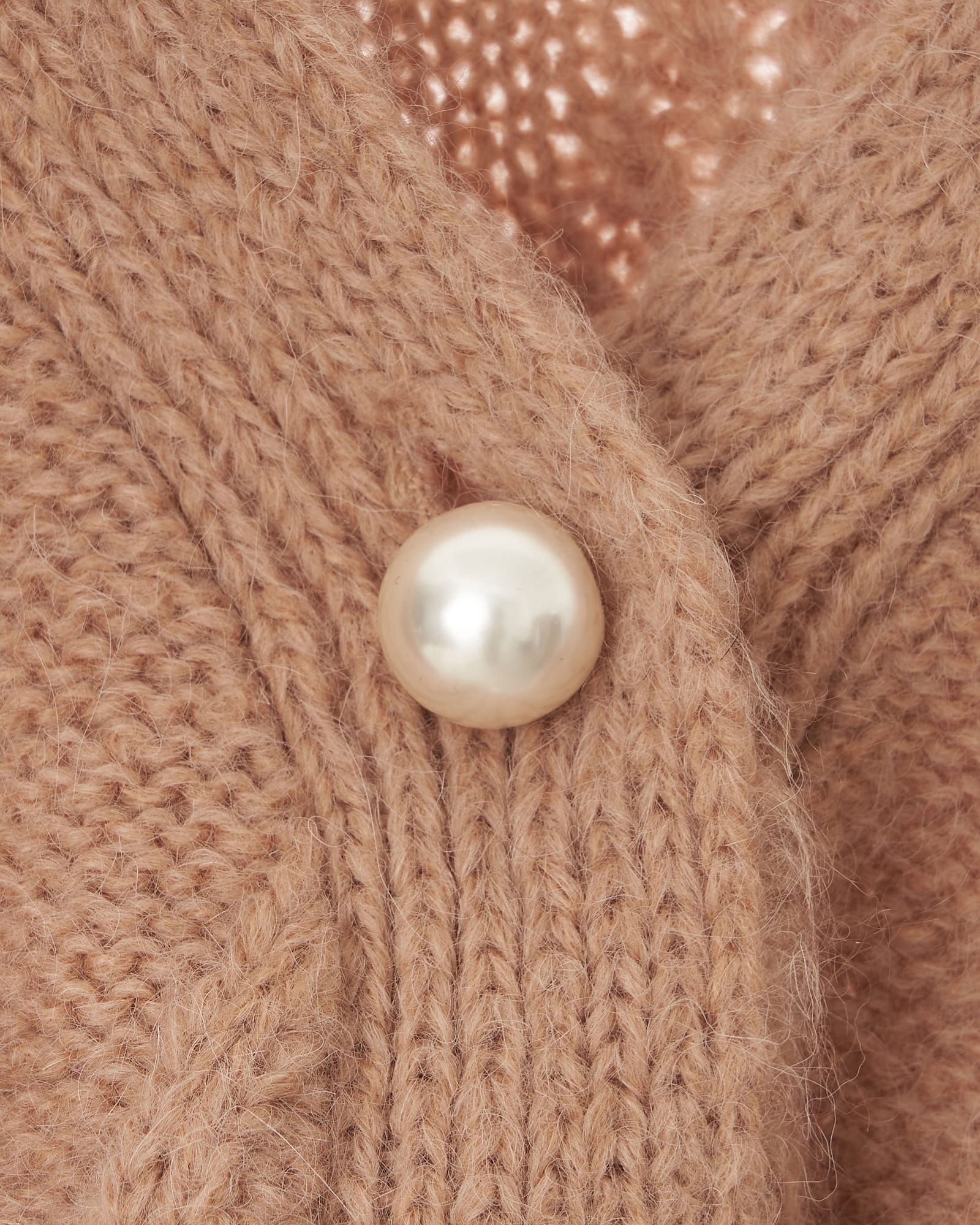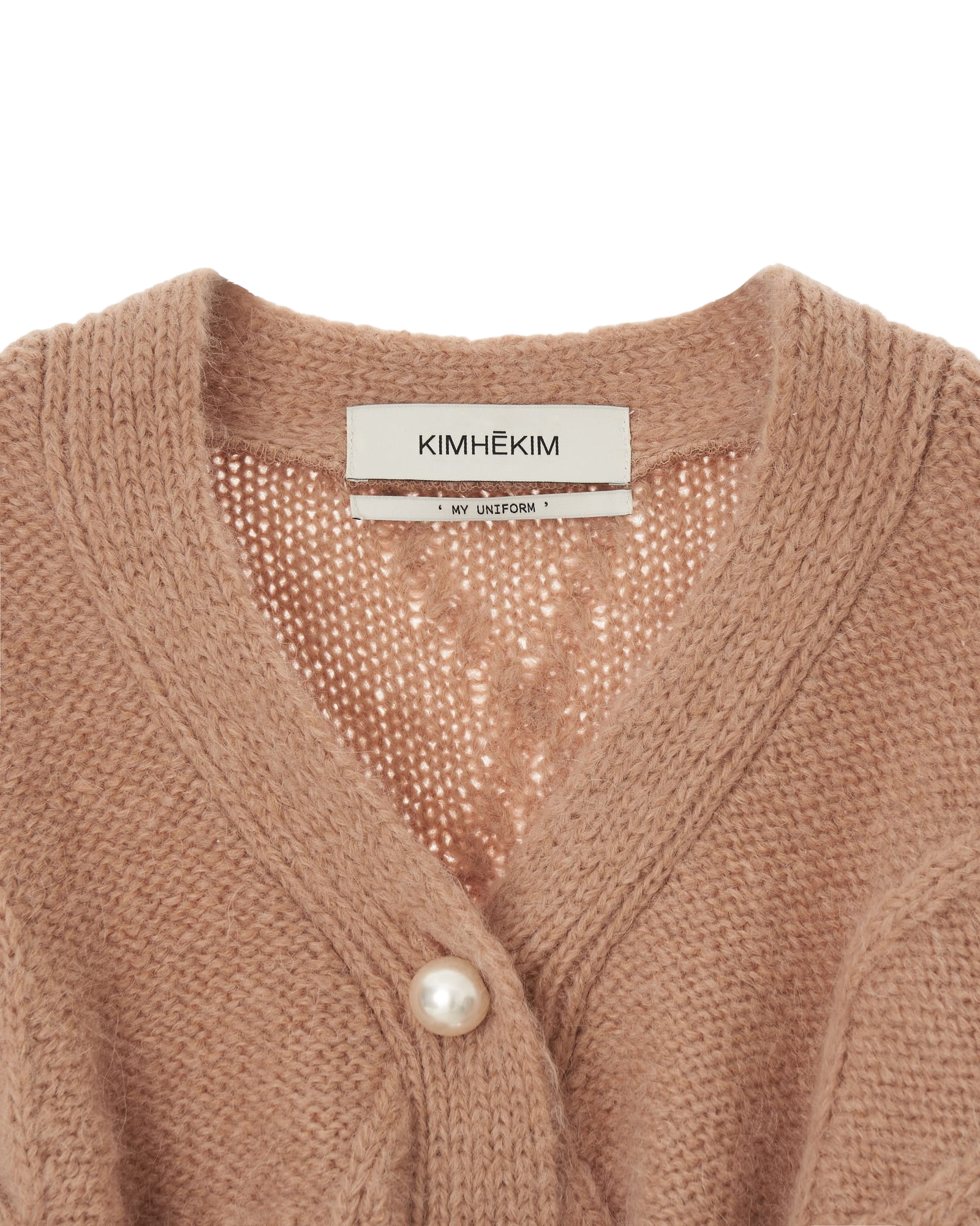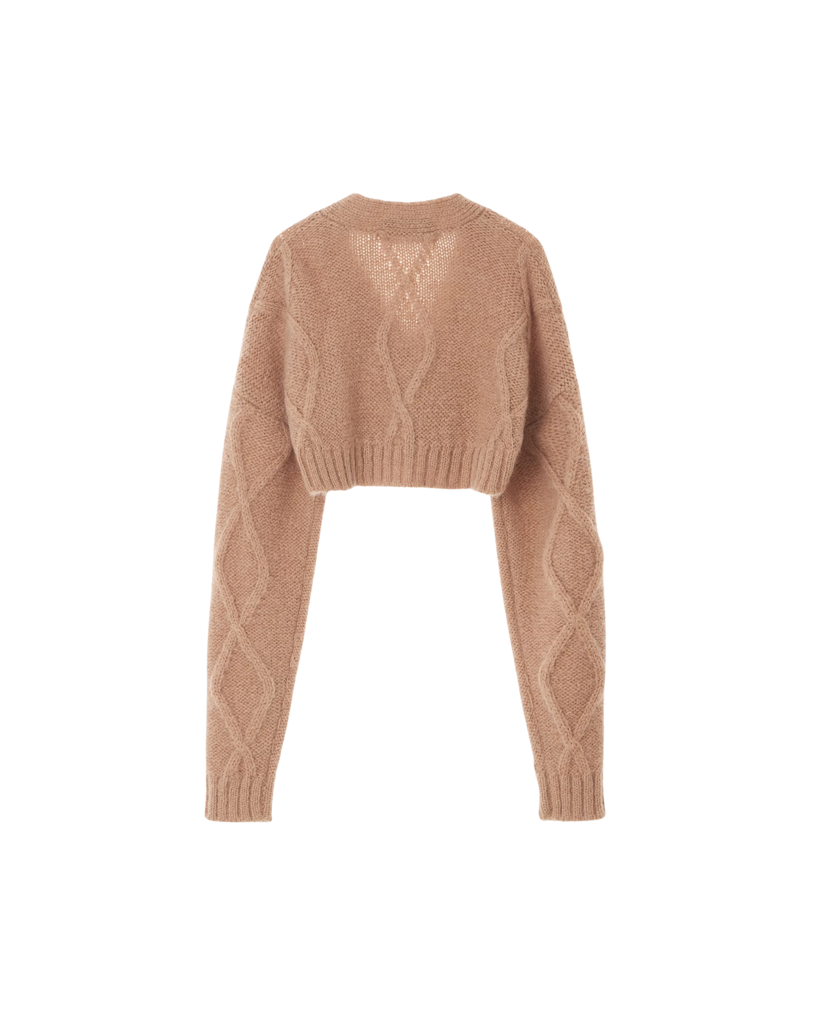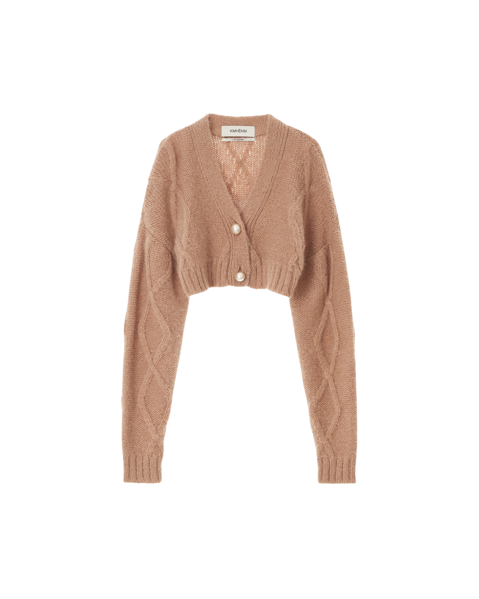 Pearl Button Cropped Mohair-Alpaca Cardigan (Ivory)