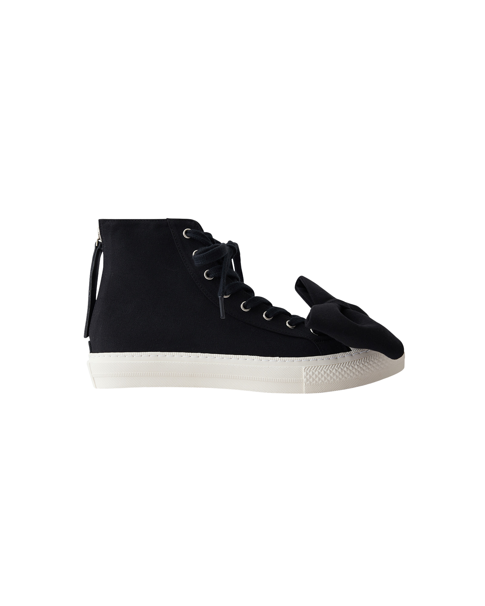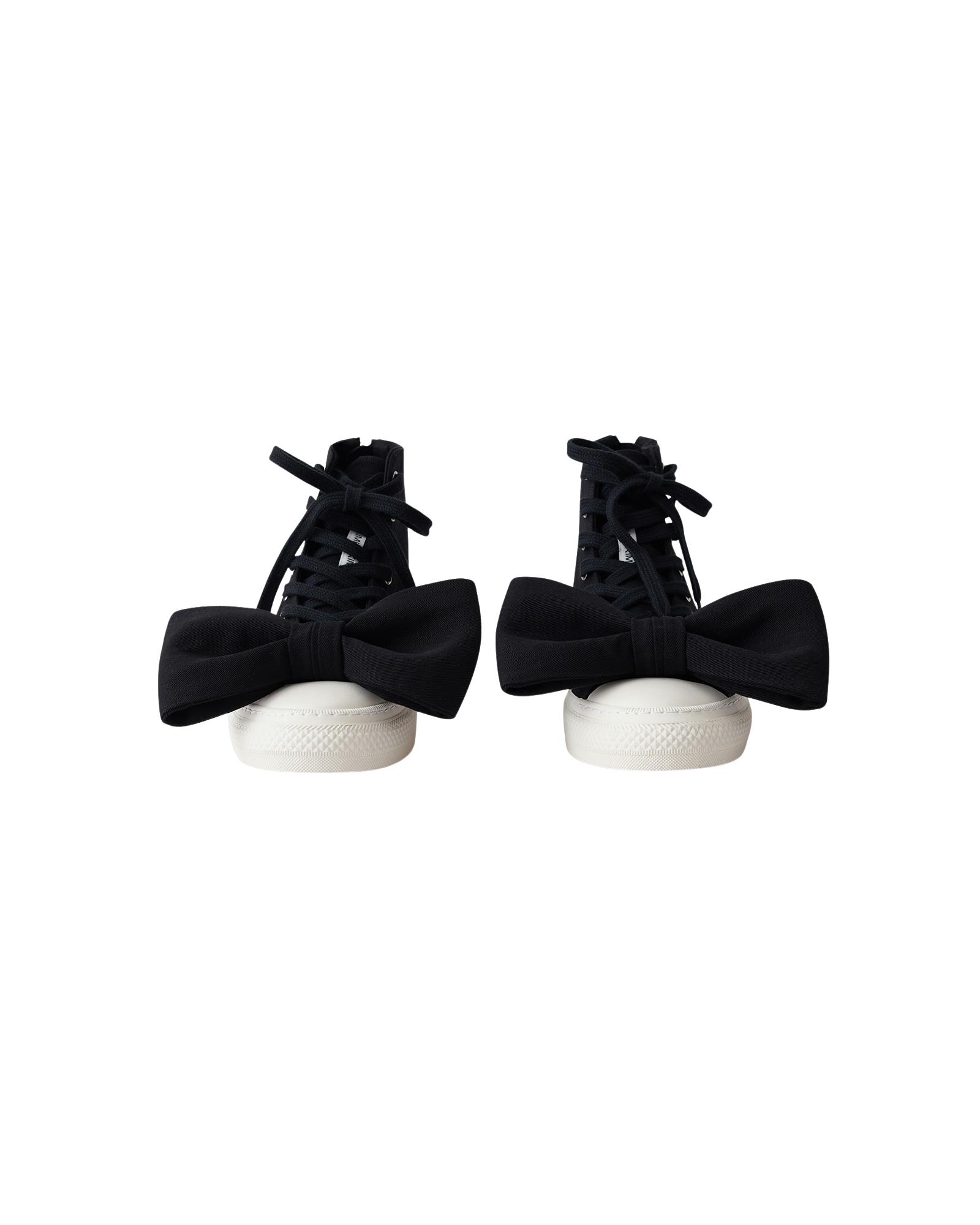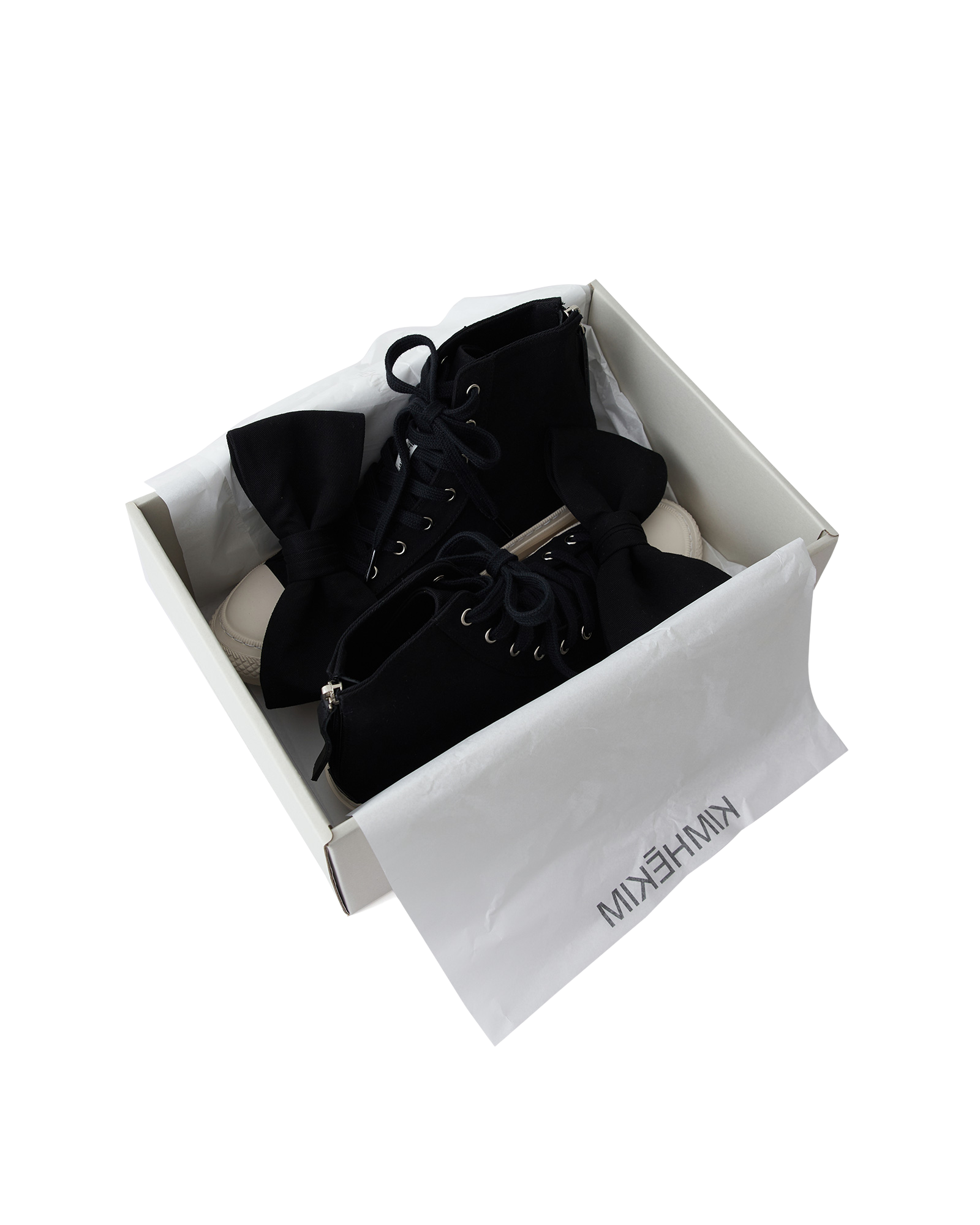 It is an impressive product with a delicately crafted ribbon and casual sneakers in harmony.