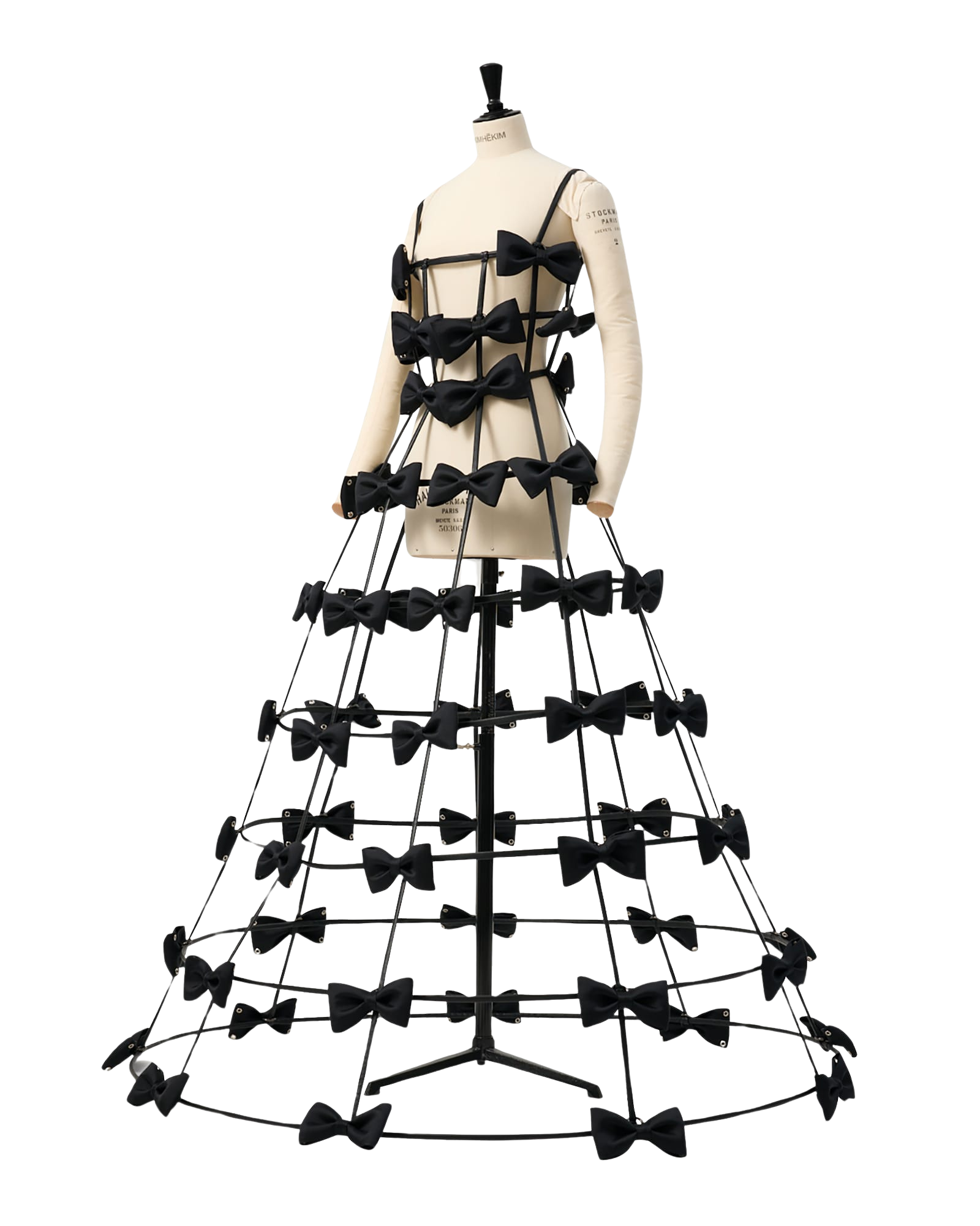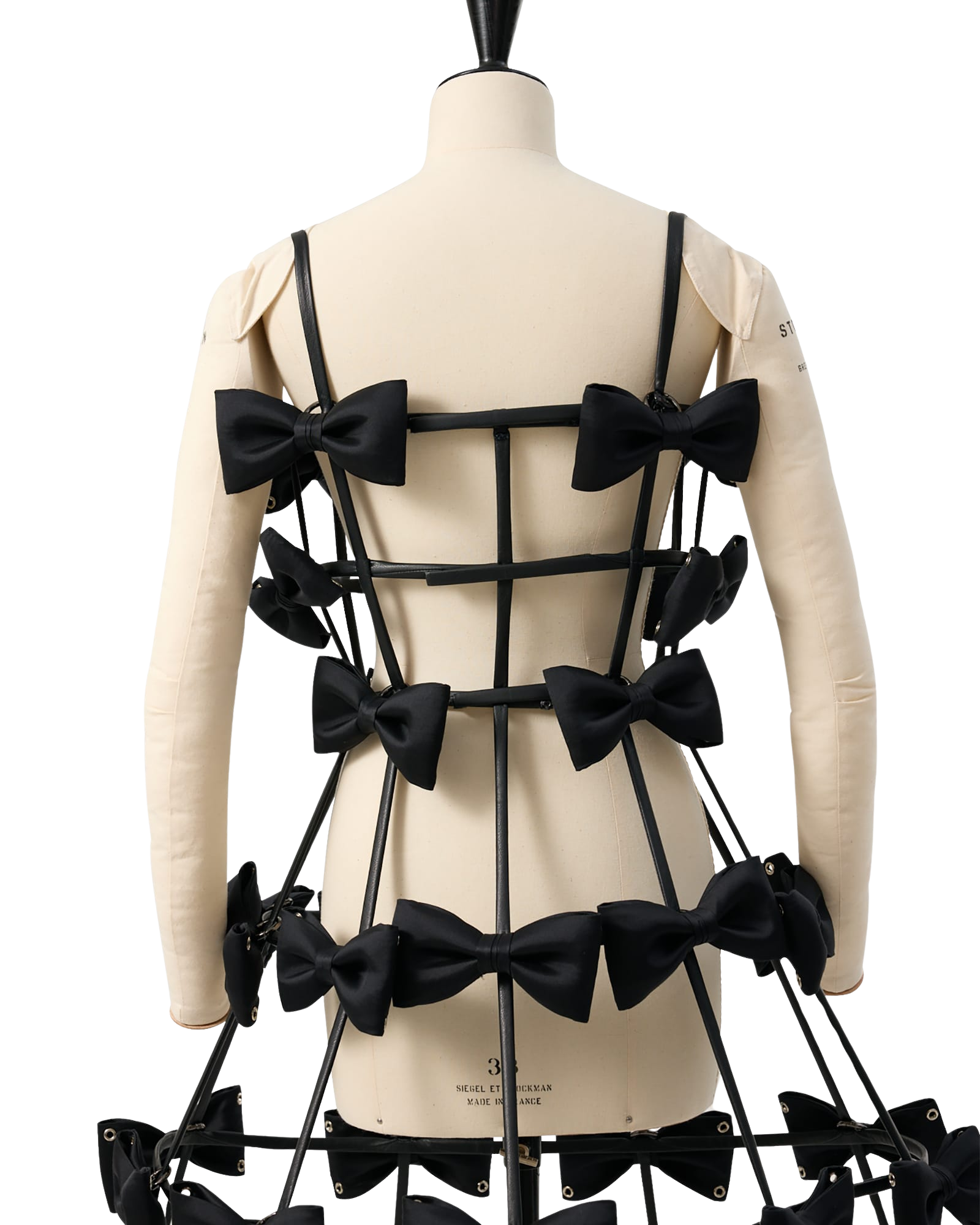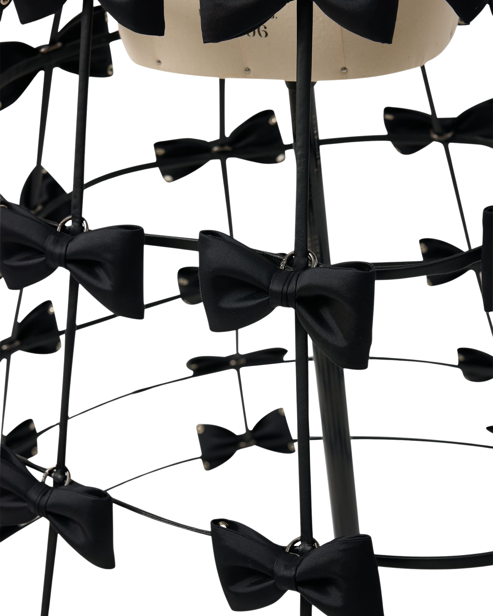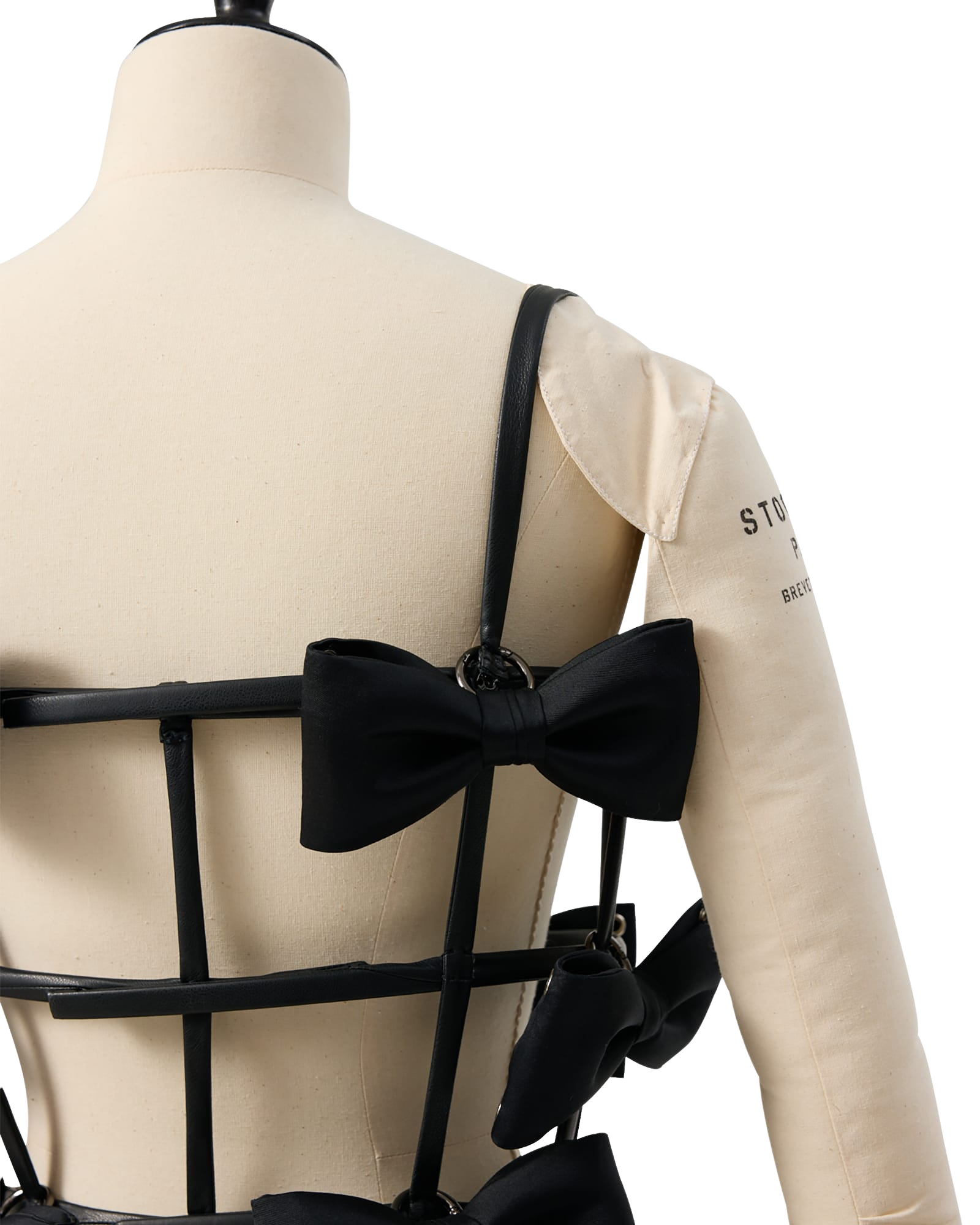 A dress with a leather-wrapped frame, accented with KIMHĒKIM 's Monroe ribbon.