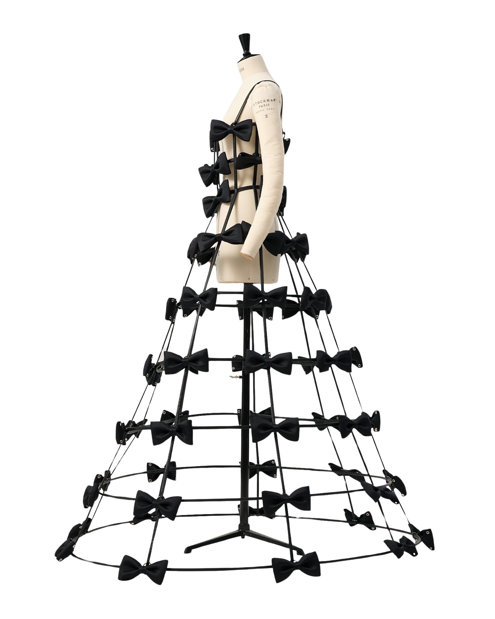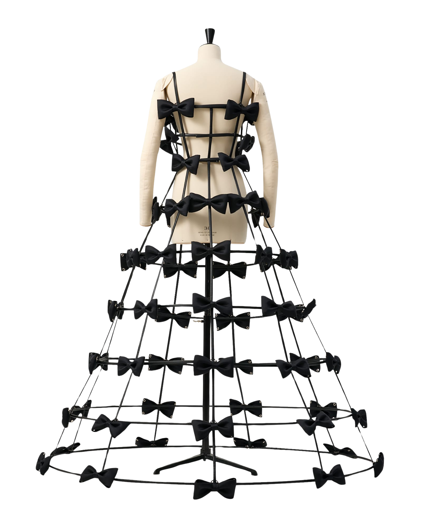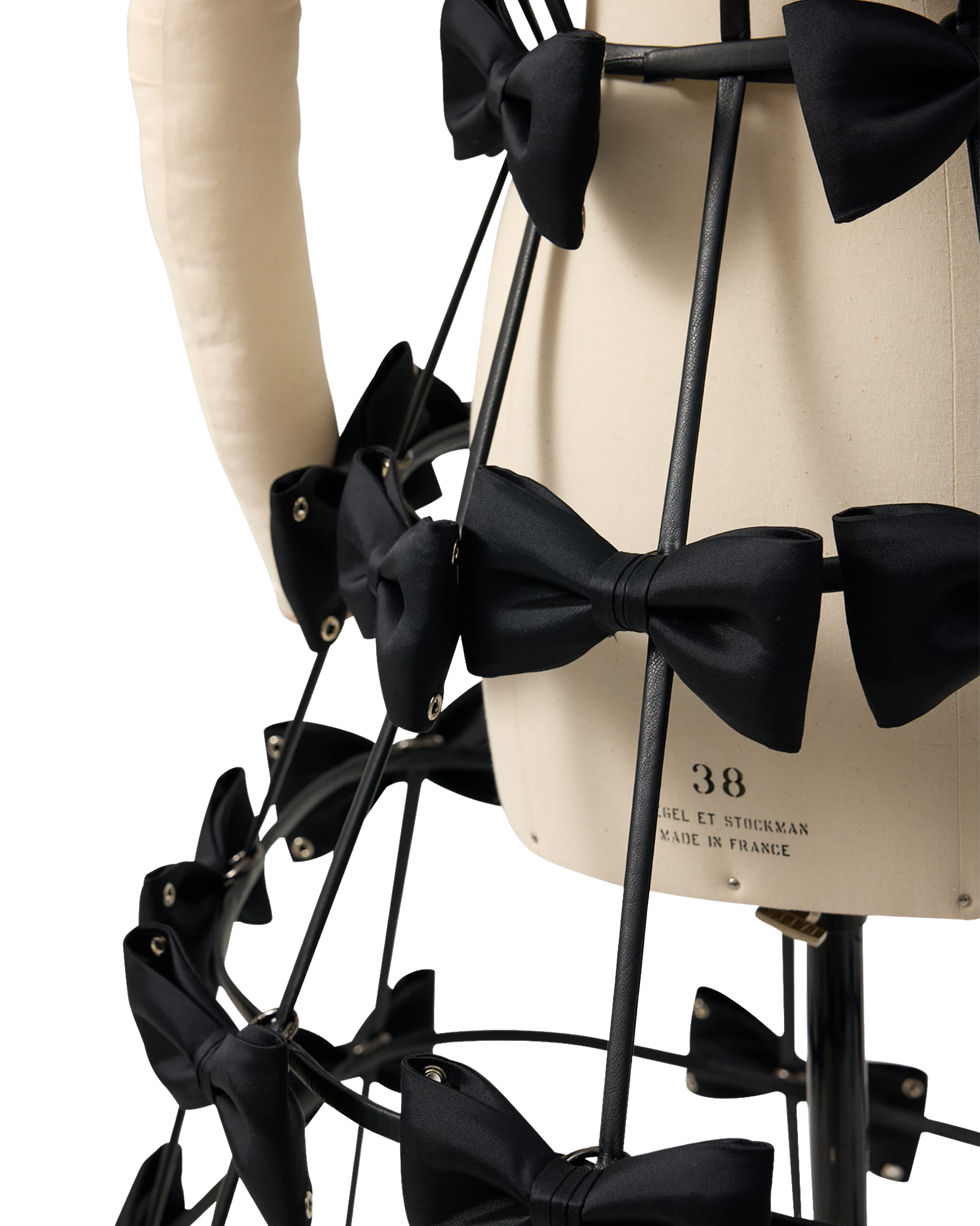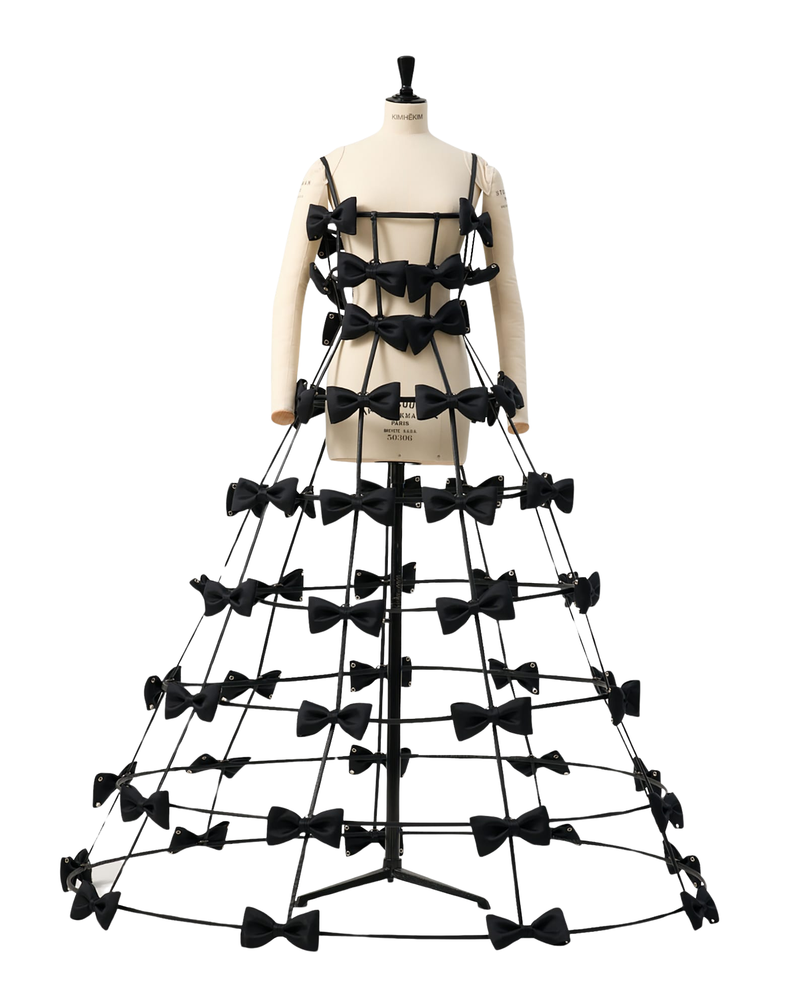 A dress with a leather-wrapped frame, accented with KIMHĒKIM 's Monroe ribbon.