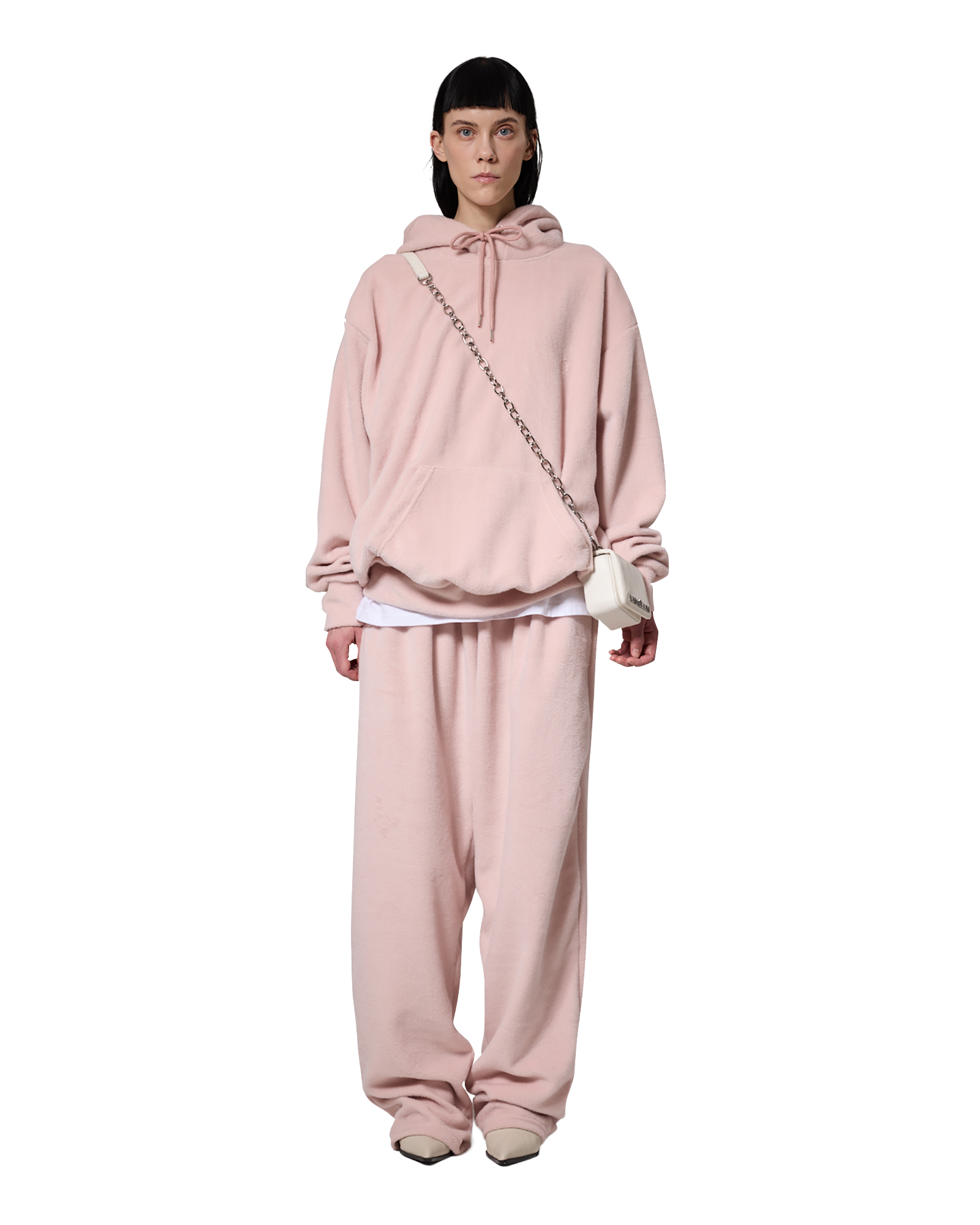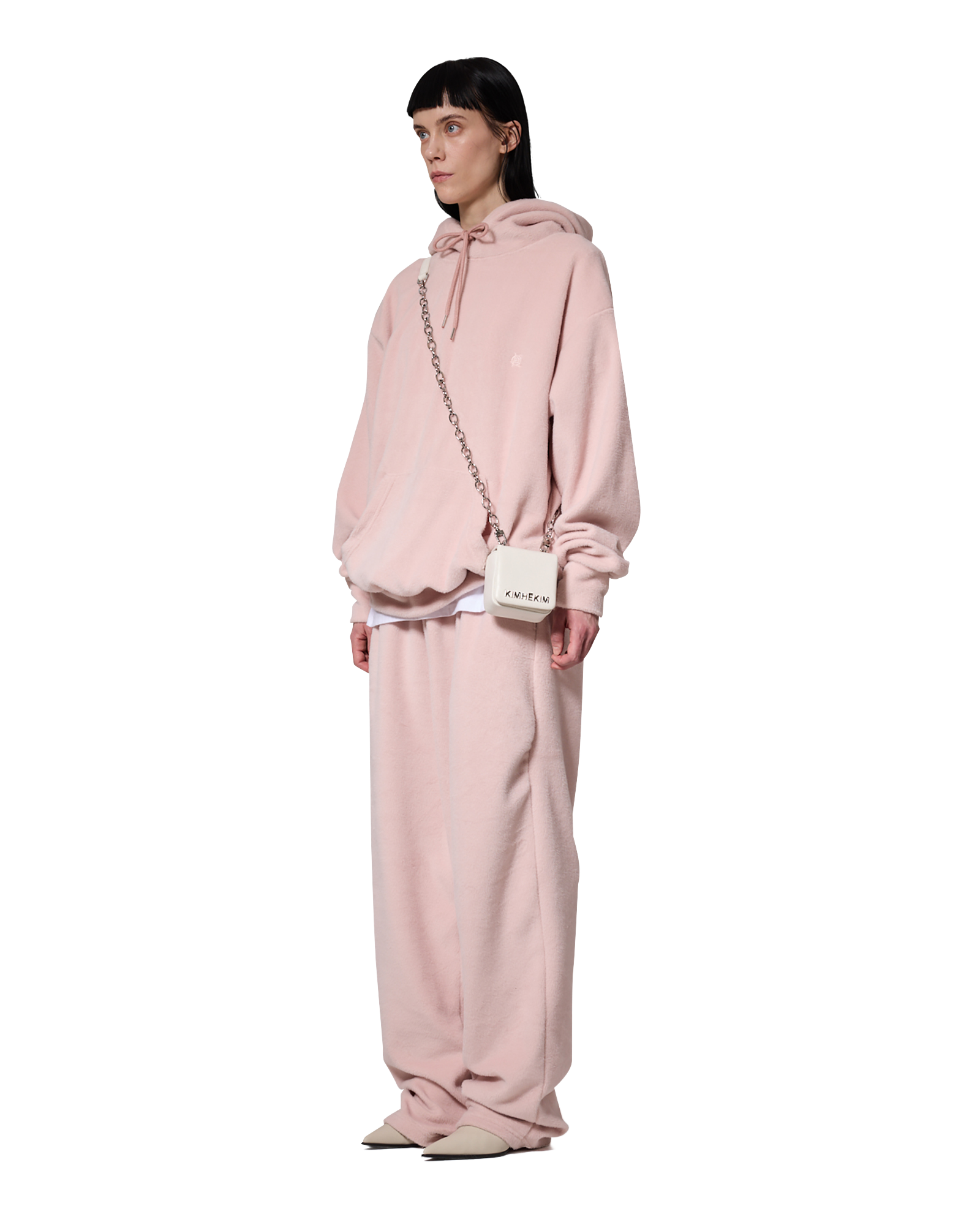-A loose-fit hoodie made from hairy fabric.
