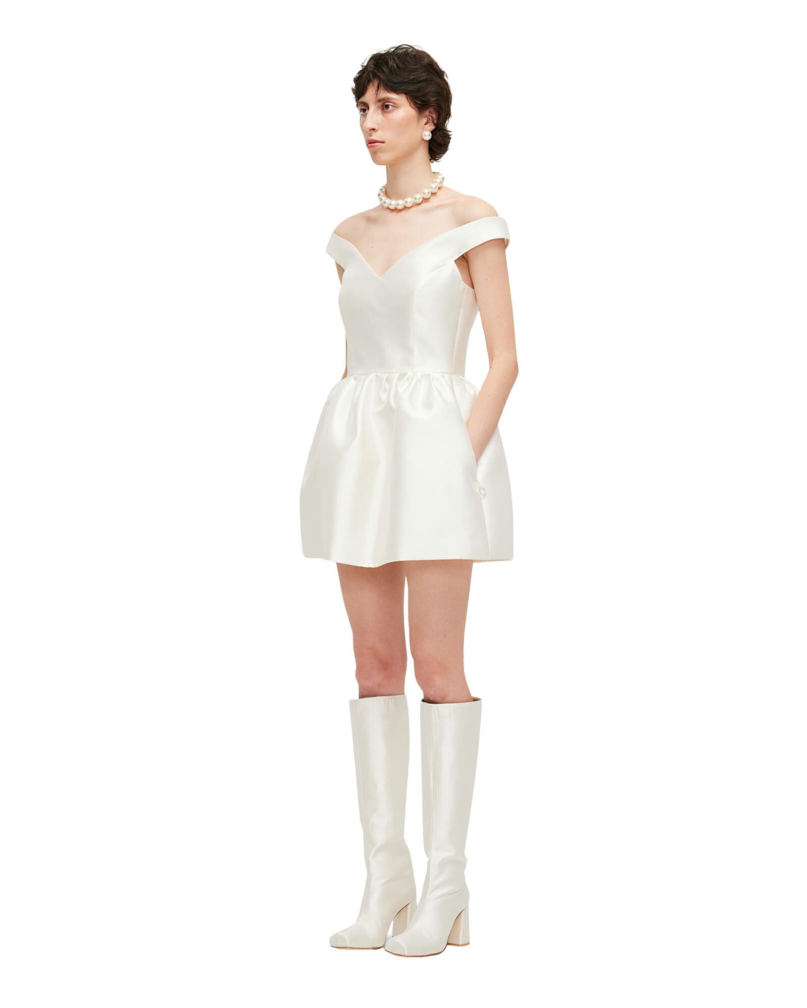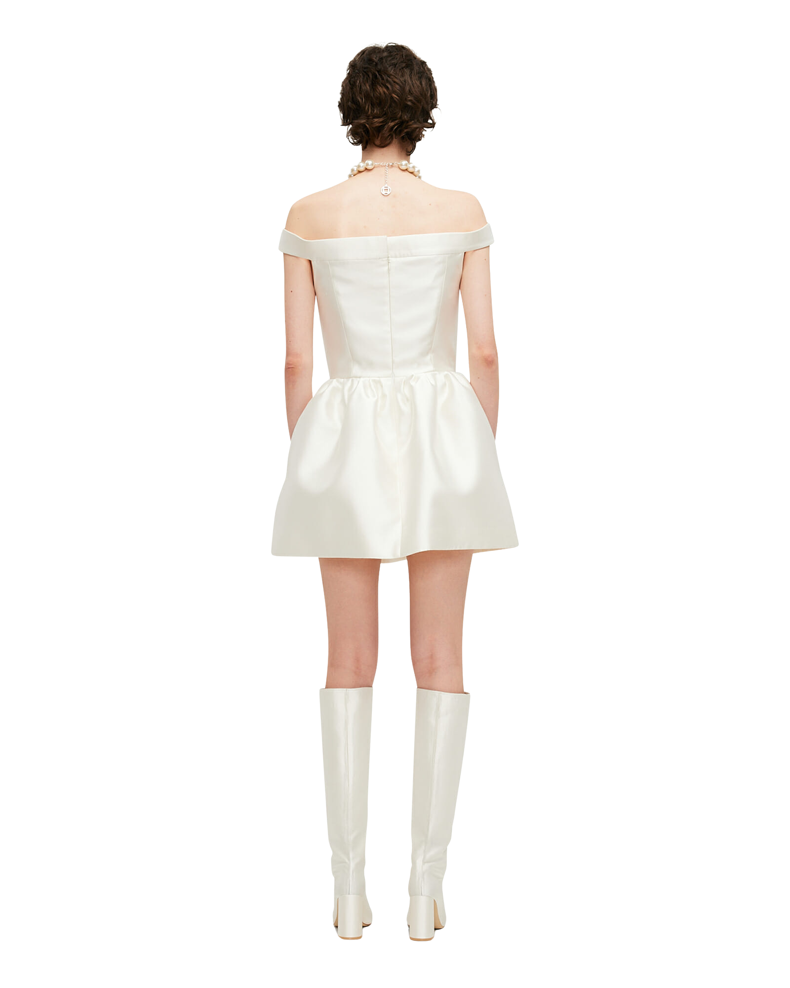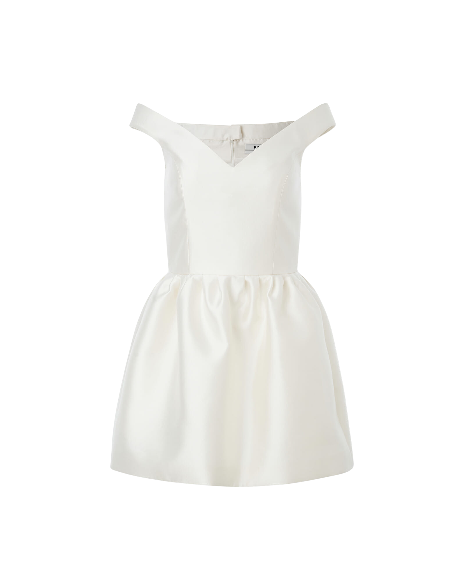 Off-The-Shoulder V Neck Wool-Silk Mini Dress