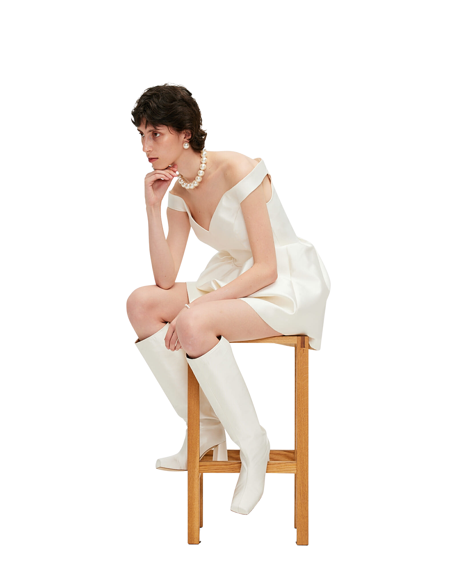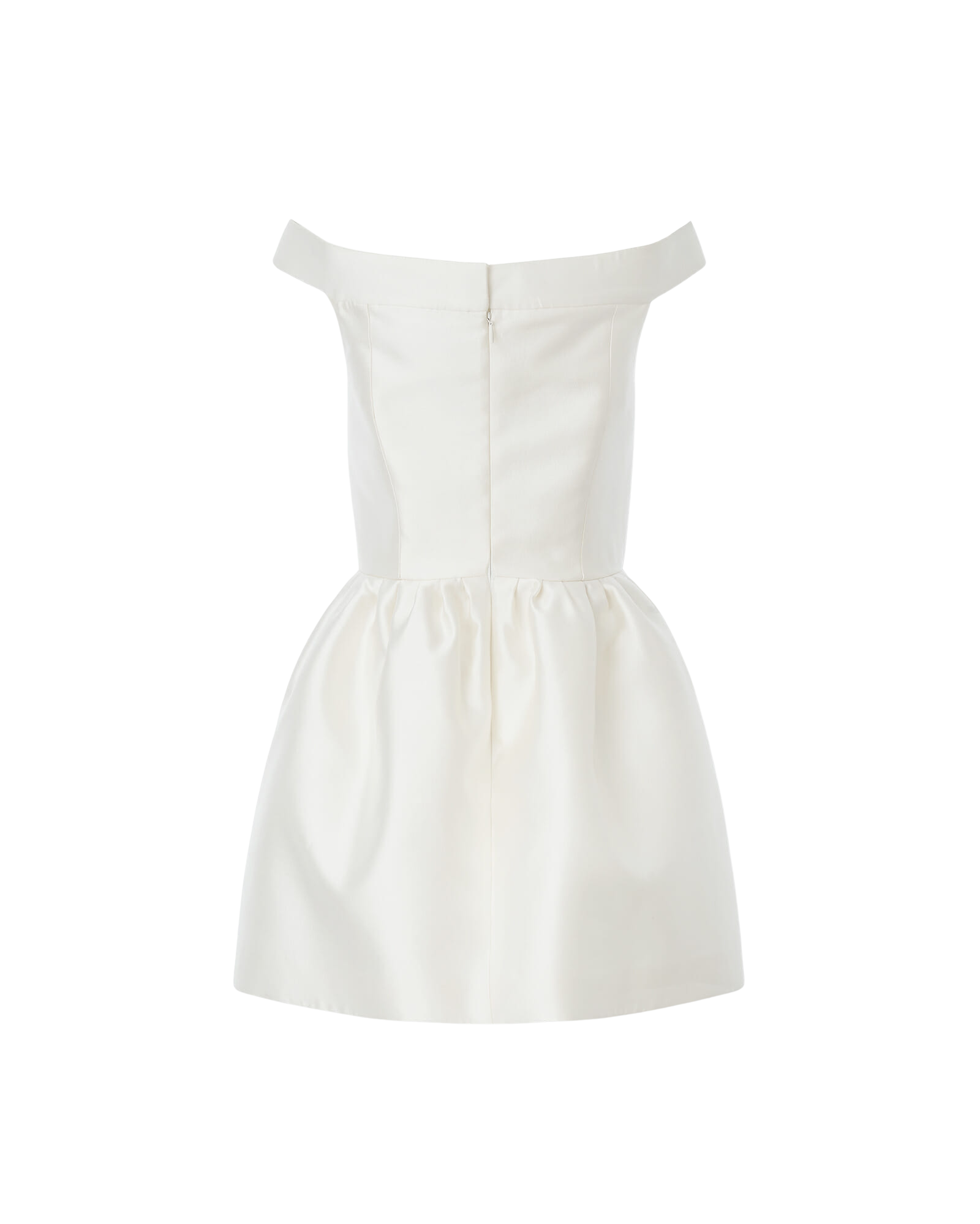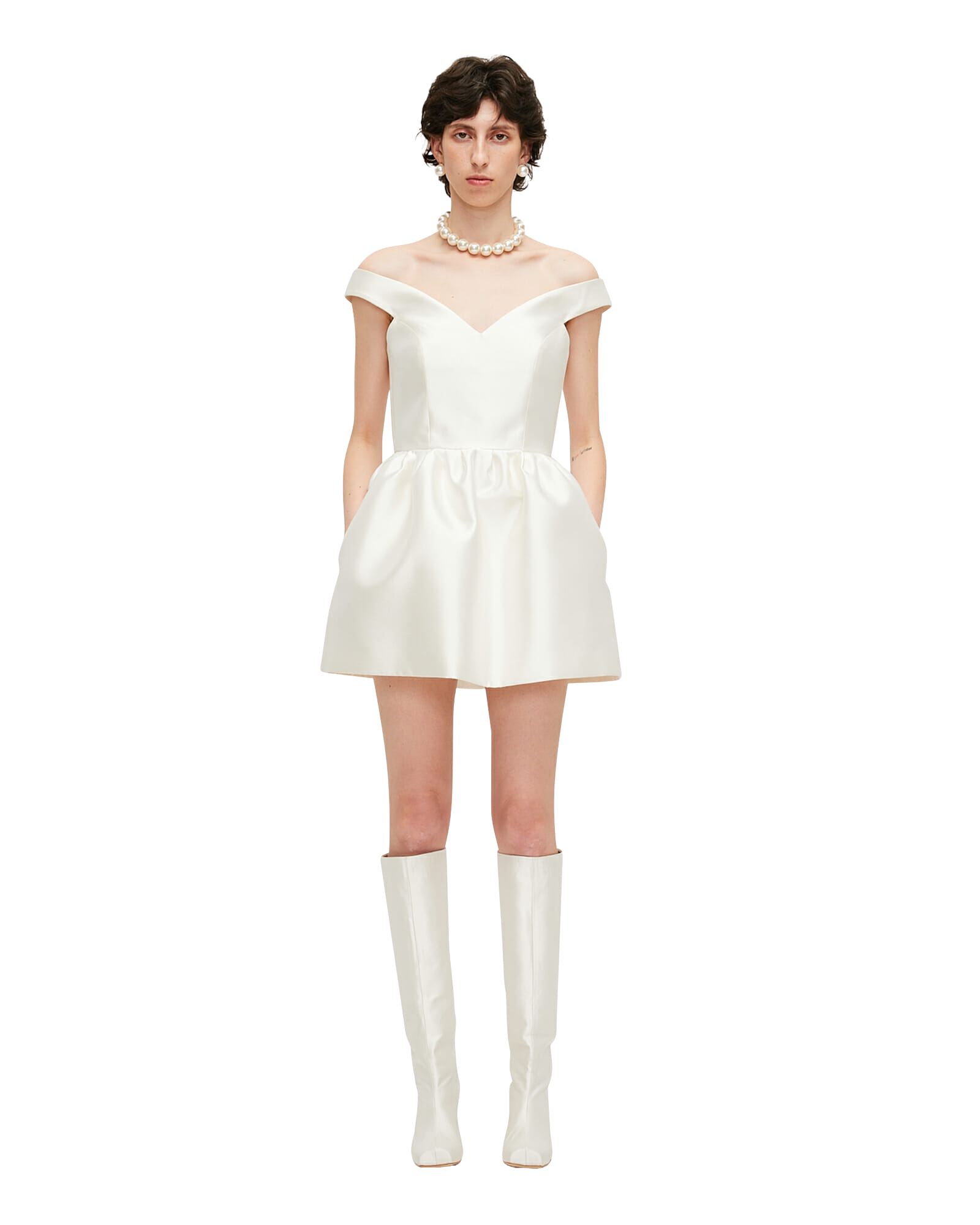 Off-The-Shoulder V Neck Wool-Silk Mini Dress