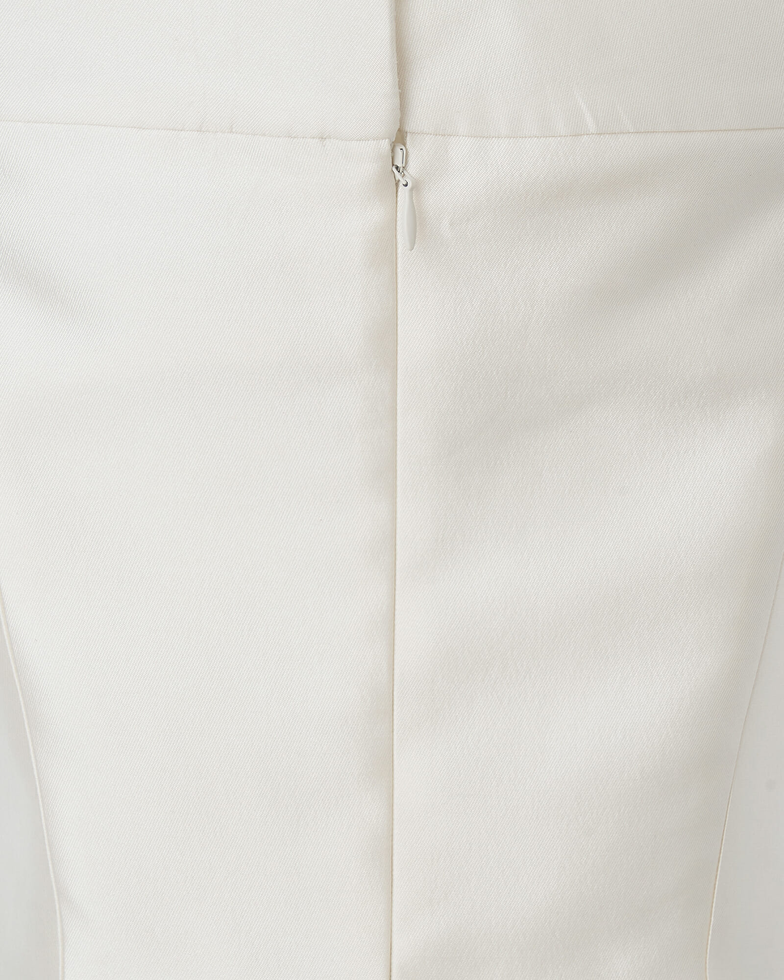 Off-The-Shoulder V Neck Wool-Silk Midi Dress