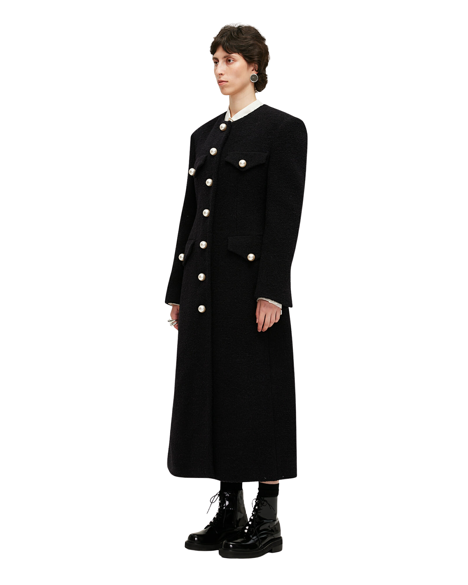 Pearl Buttons Evening Coat (Black)