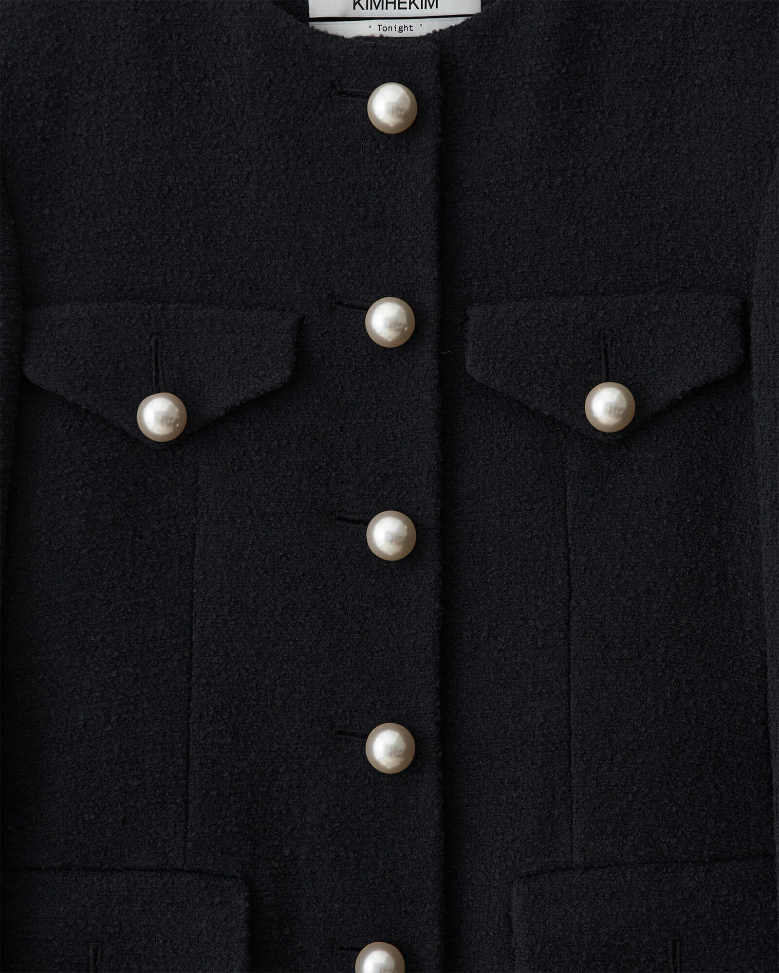 -Seven pearl buttons down at front and four pearl buttons on the pockets.