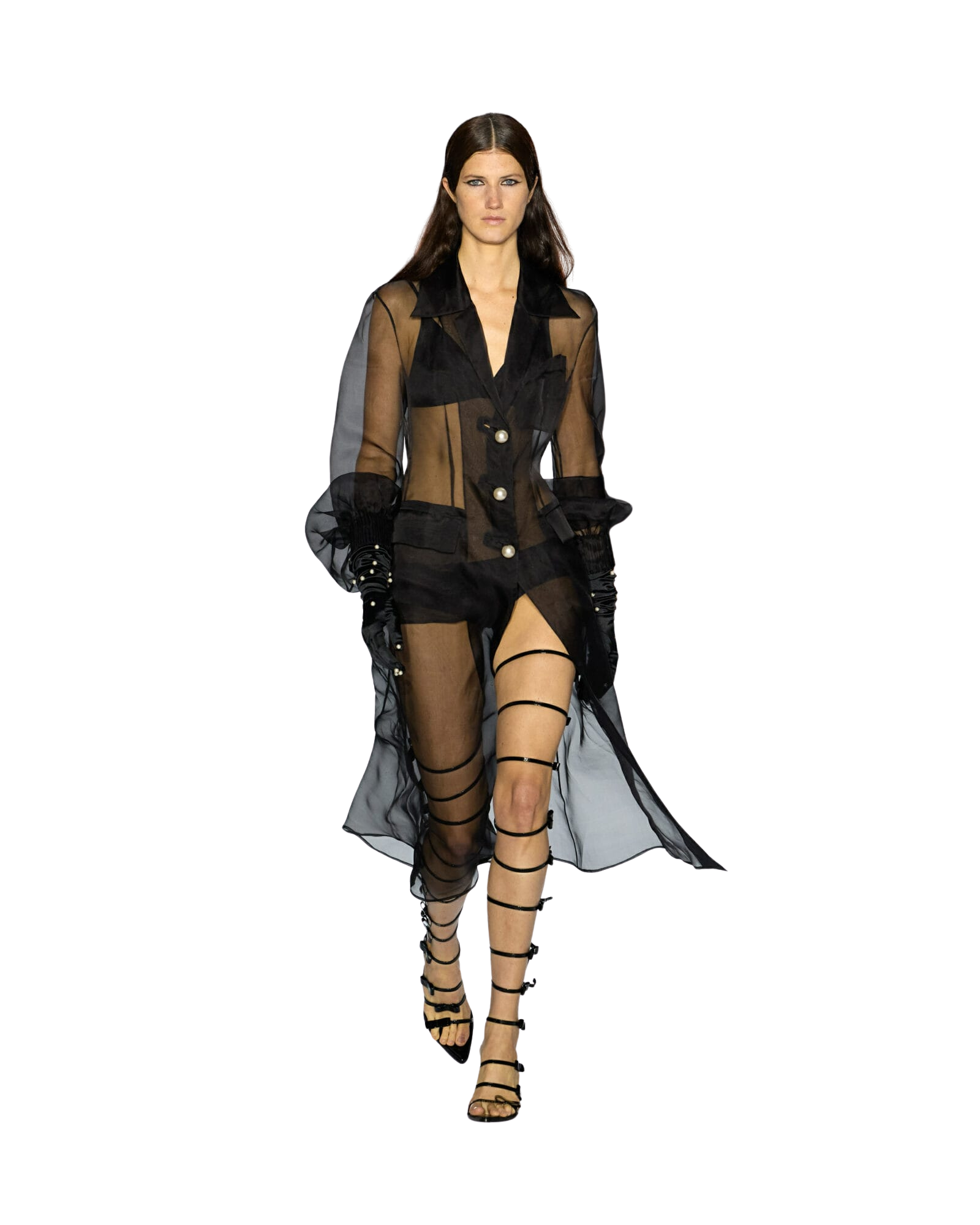 Designed to be three buttons coat with fitted waist and signature pearl buttons.