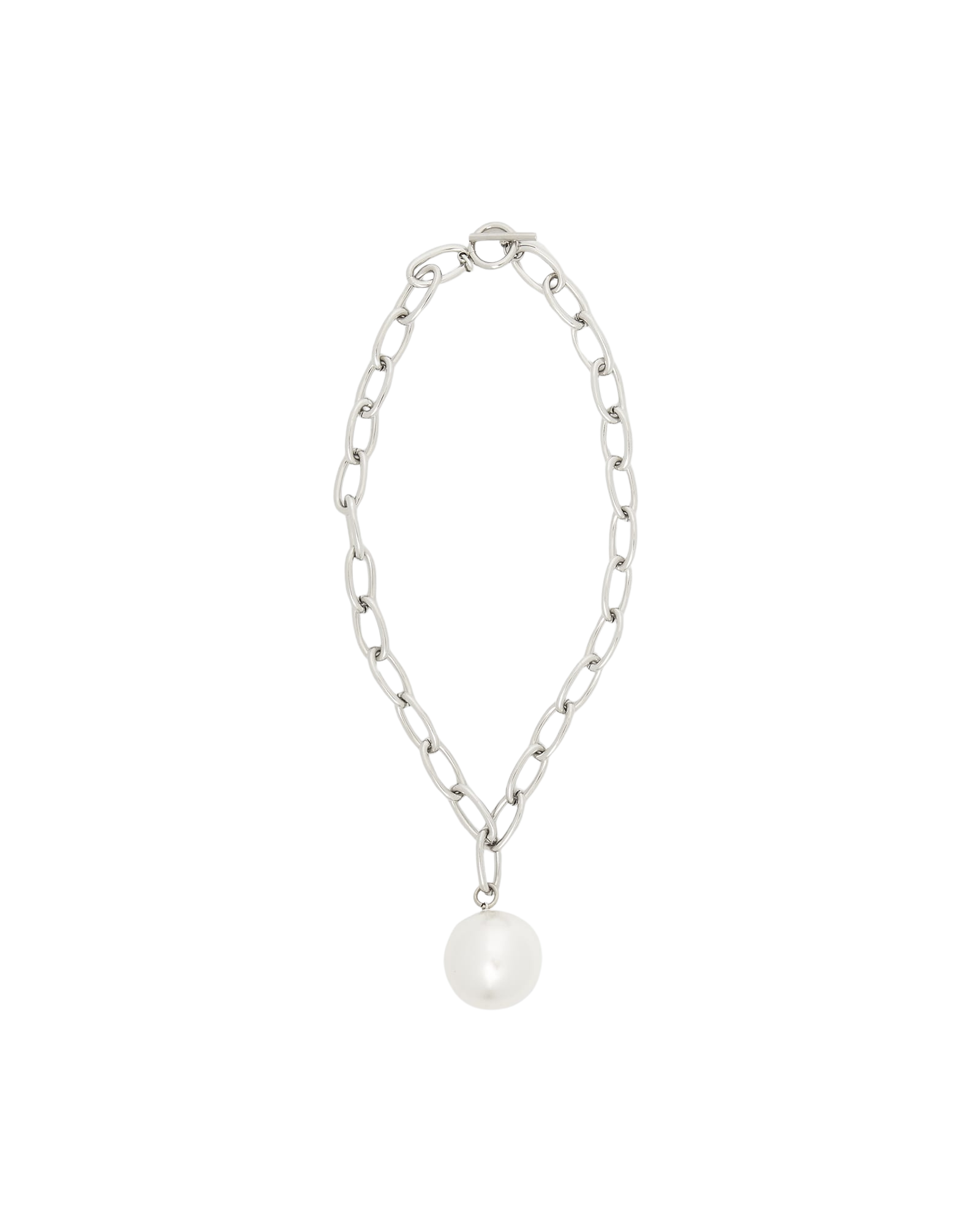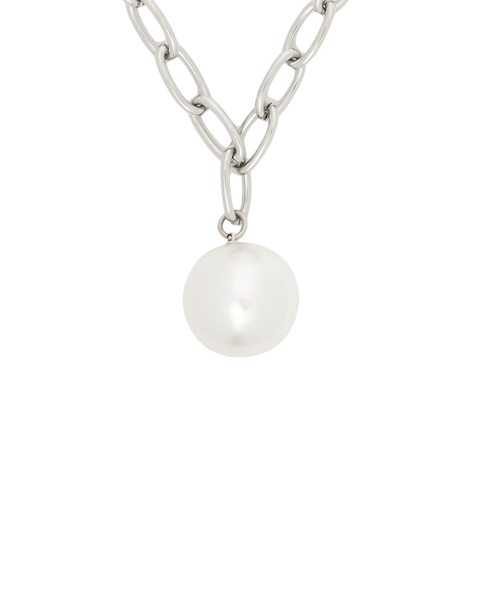 Small Ribbon Embellished Faux-Pearl Necklace (White)