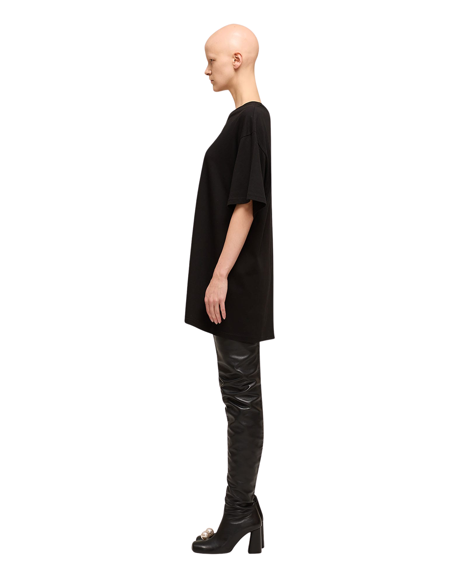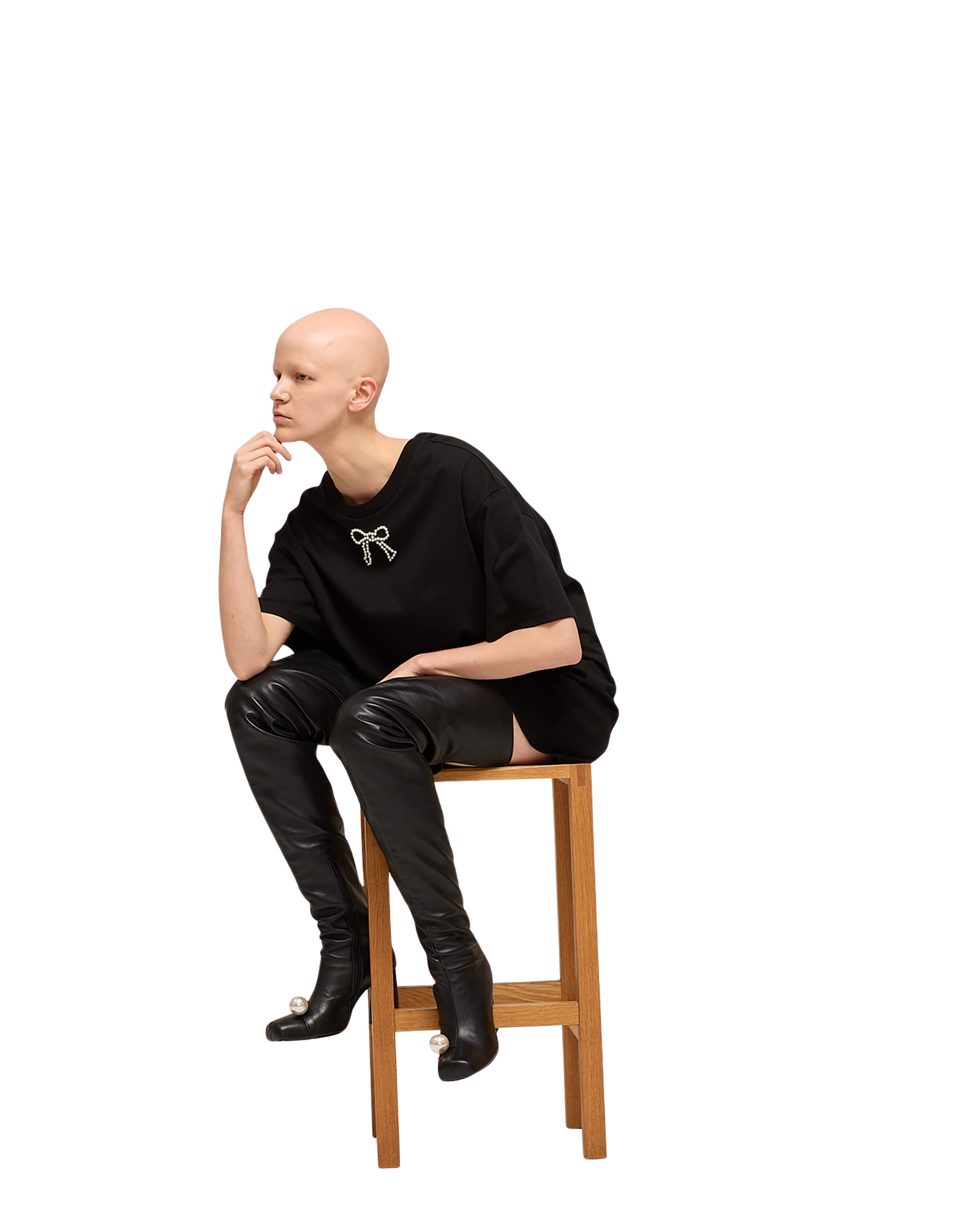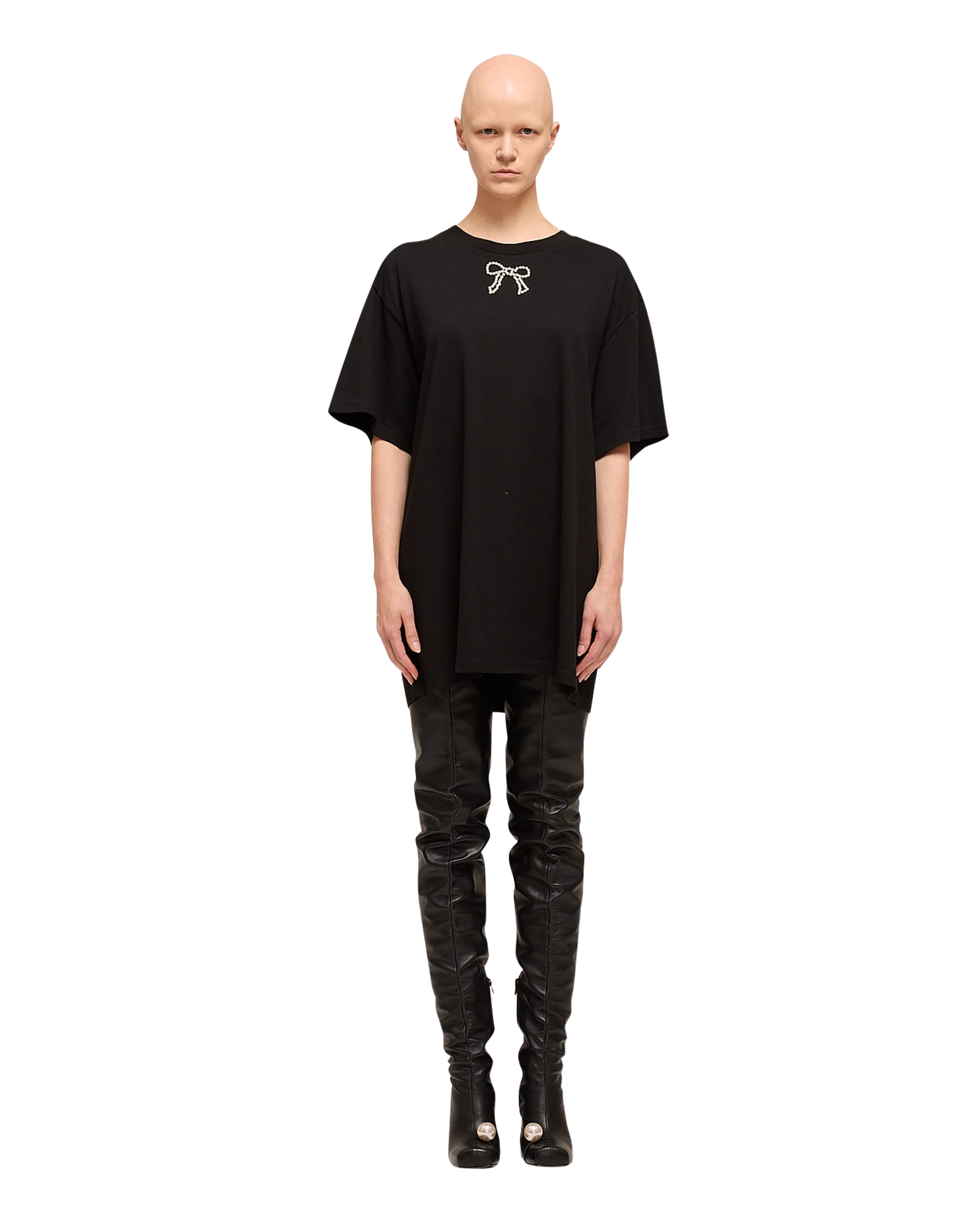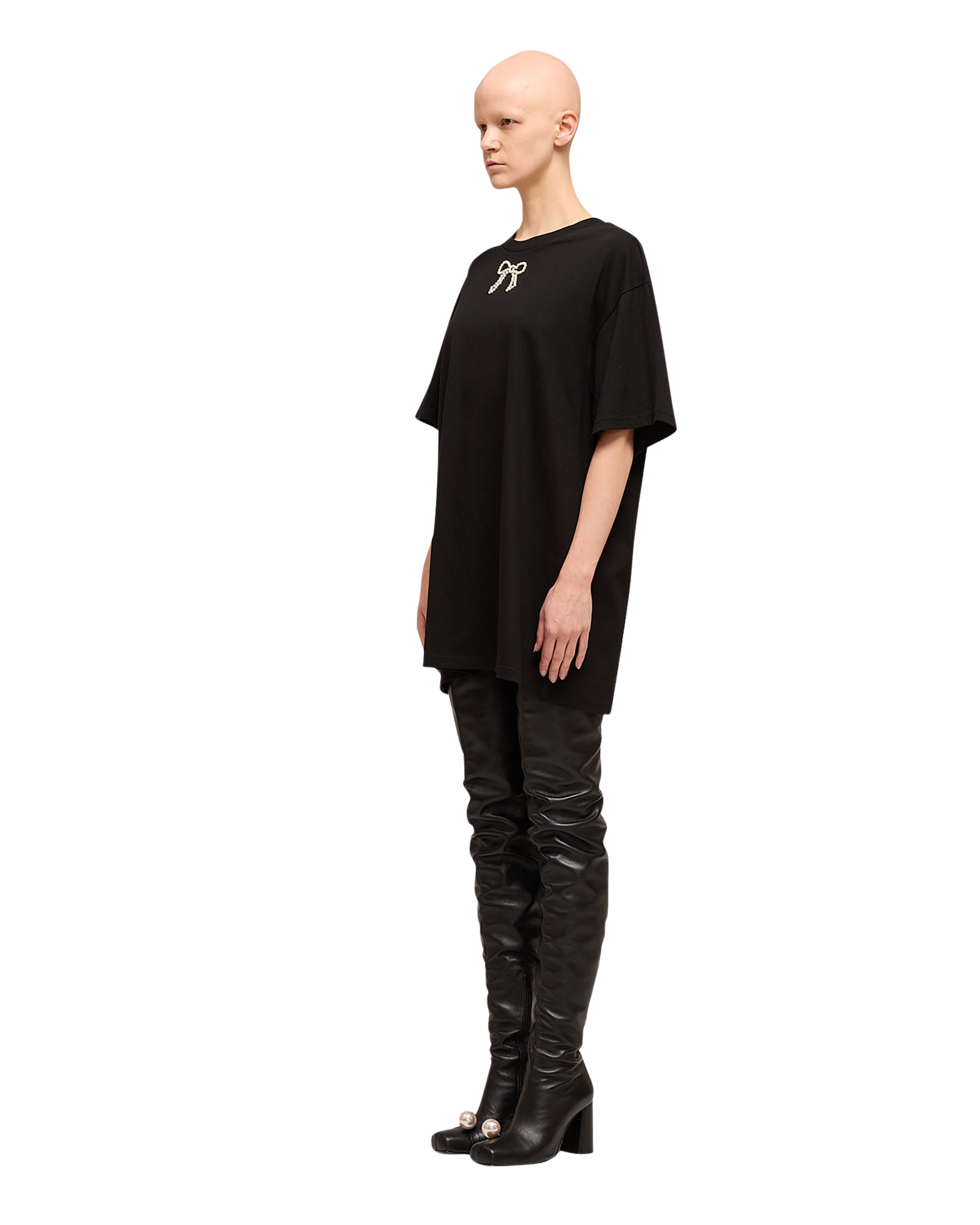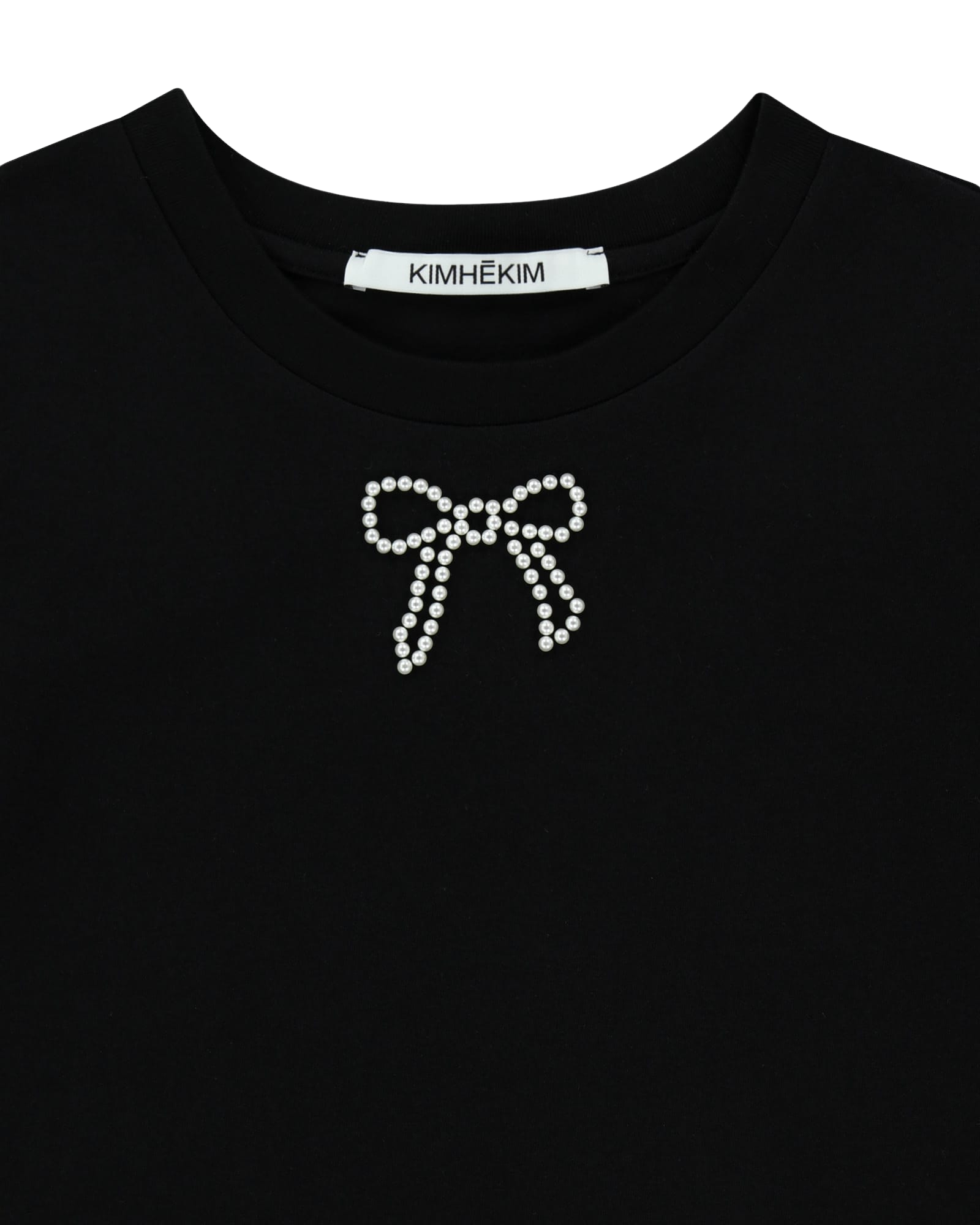 Pearl Embellished Bow Oversized T-Shirt (Black)