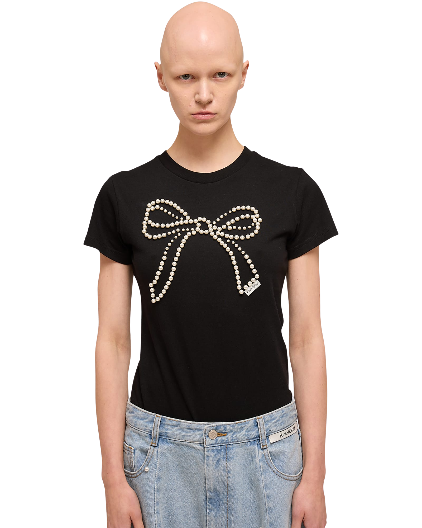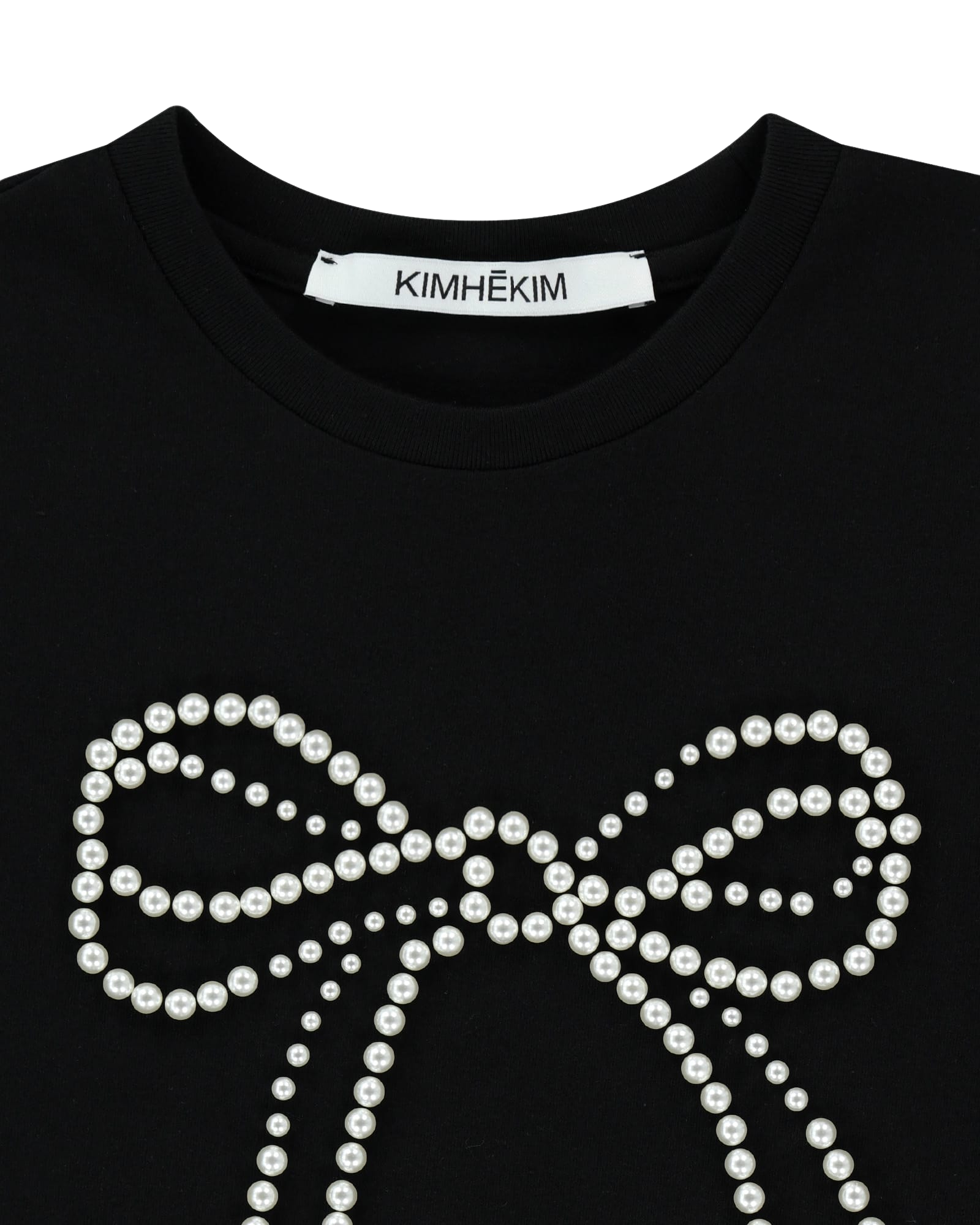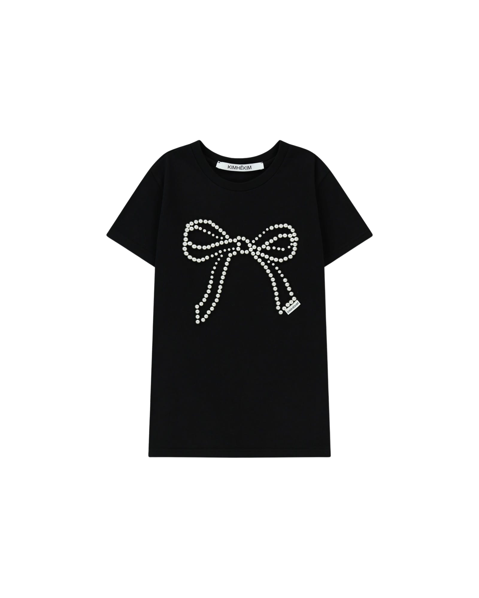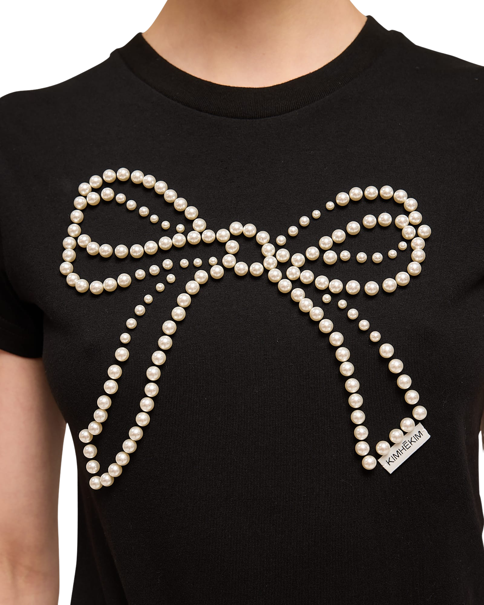 Pearl Embellished Bow Slim T-Shirt (Black)