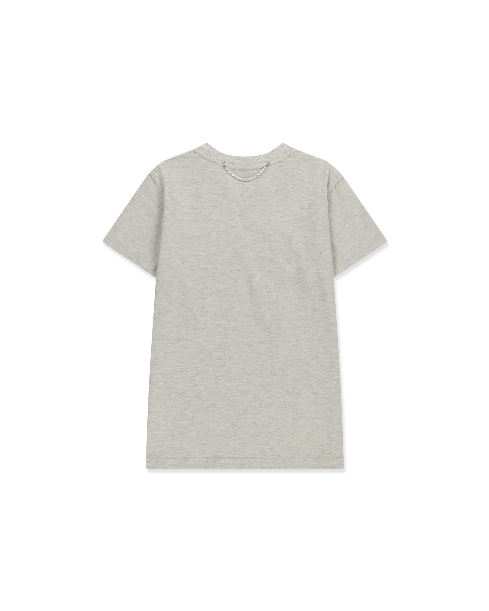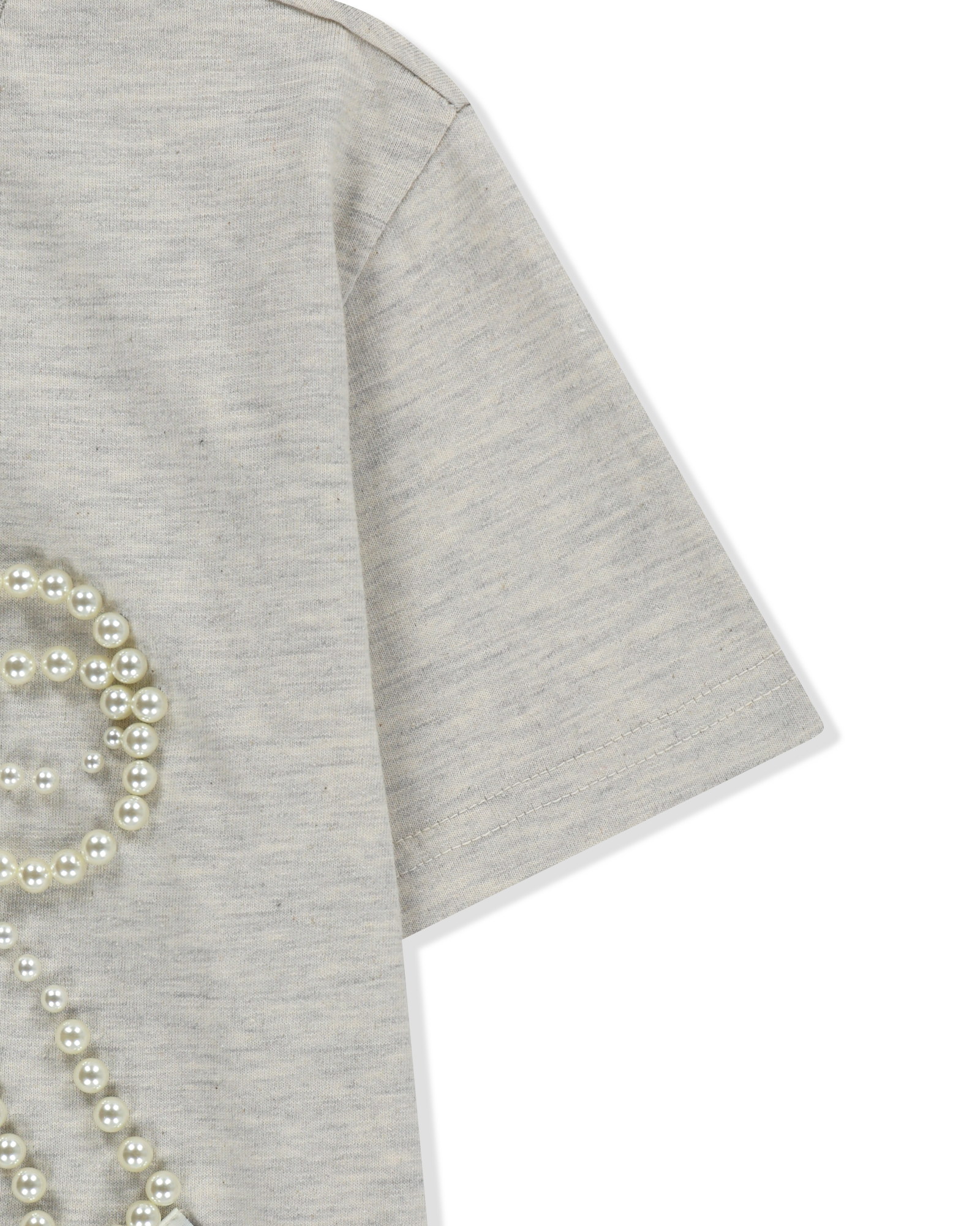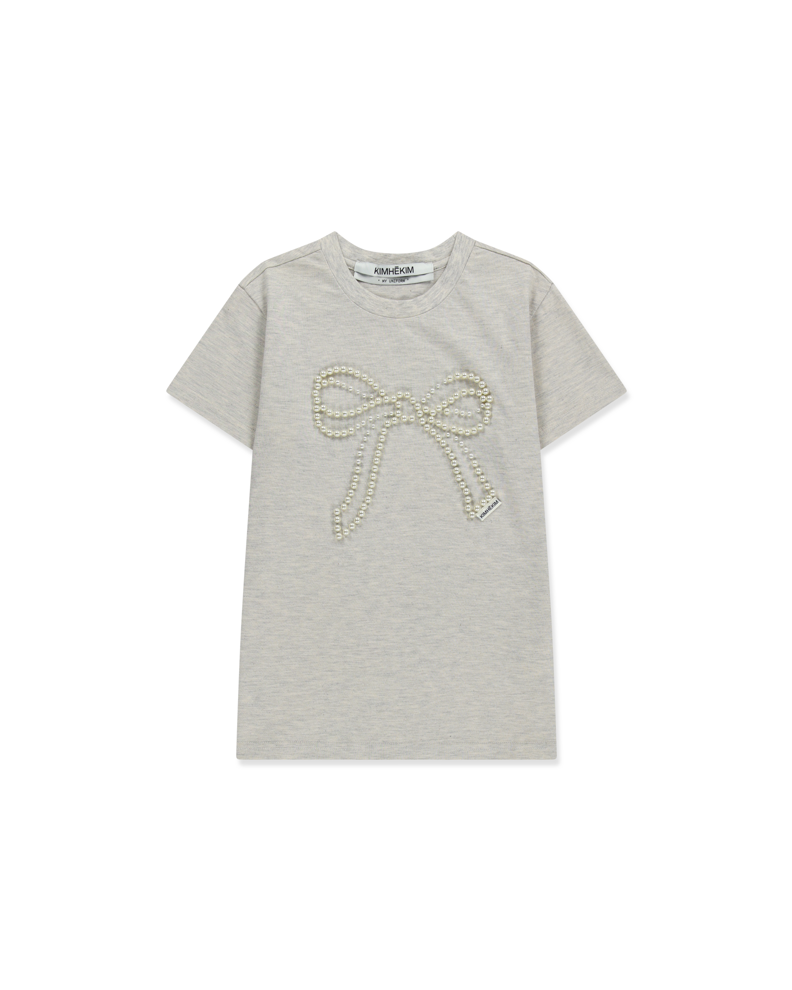 Pearl Embellished Bow Slim T-Shirt (Oatmeal)