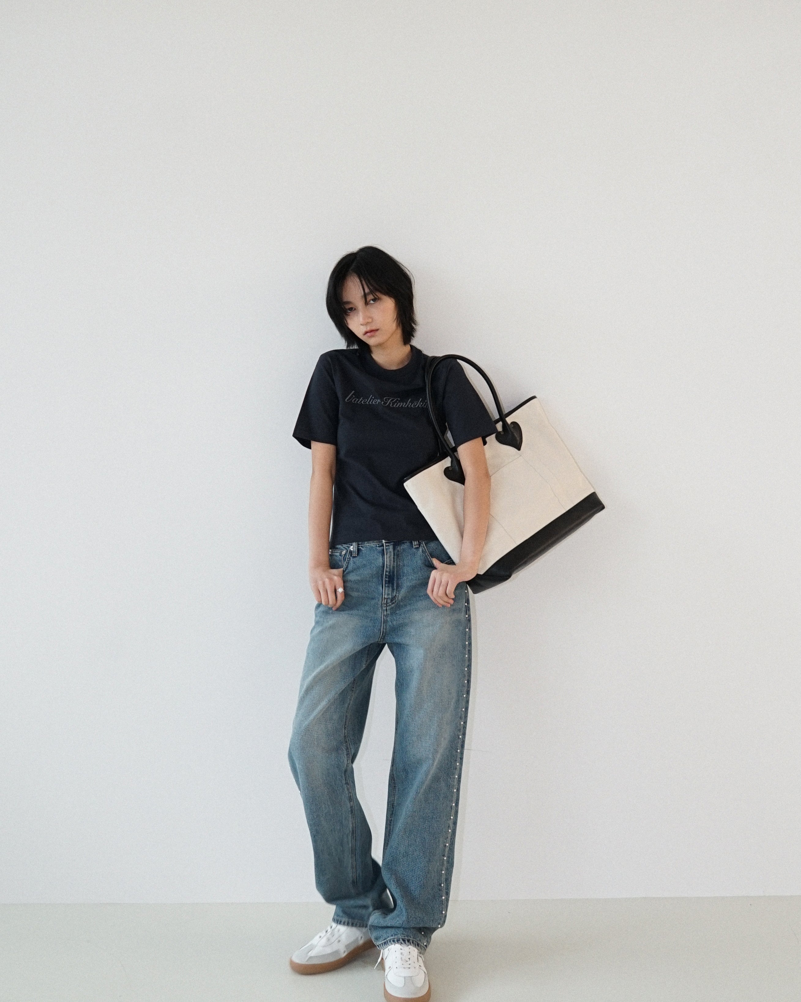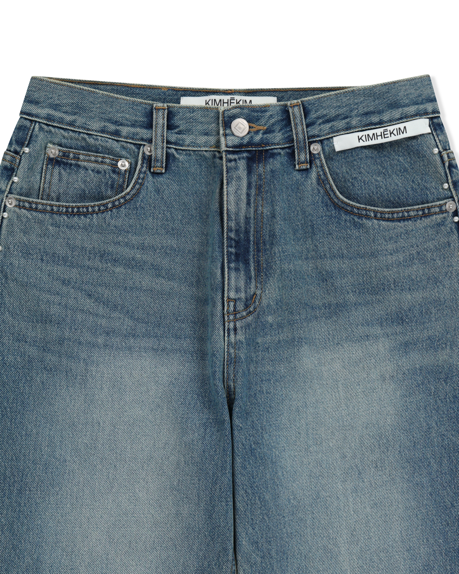 -Detailed with a KIMHĒKIM label at the waistline.