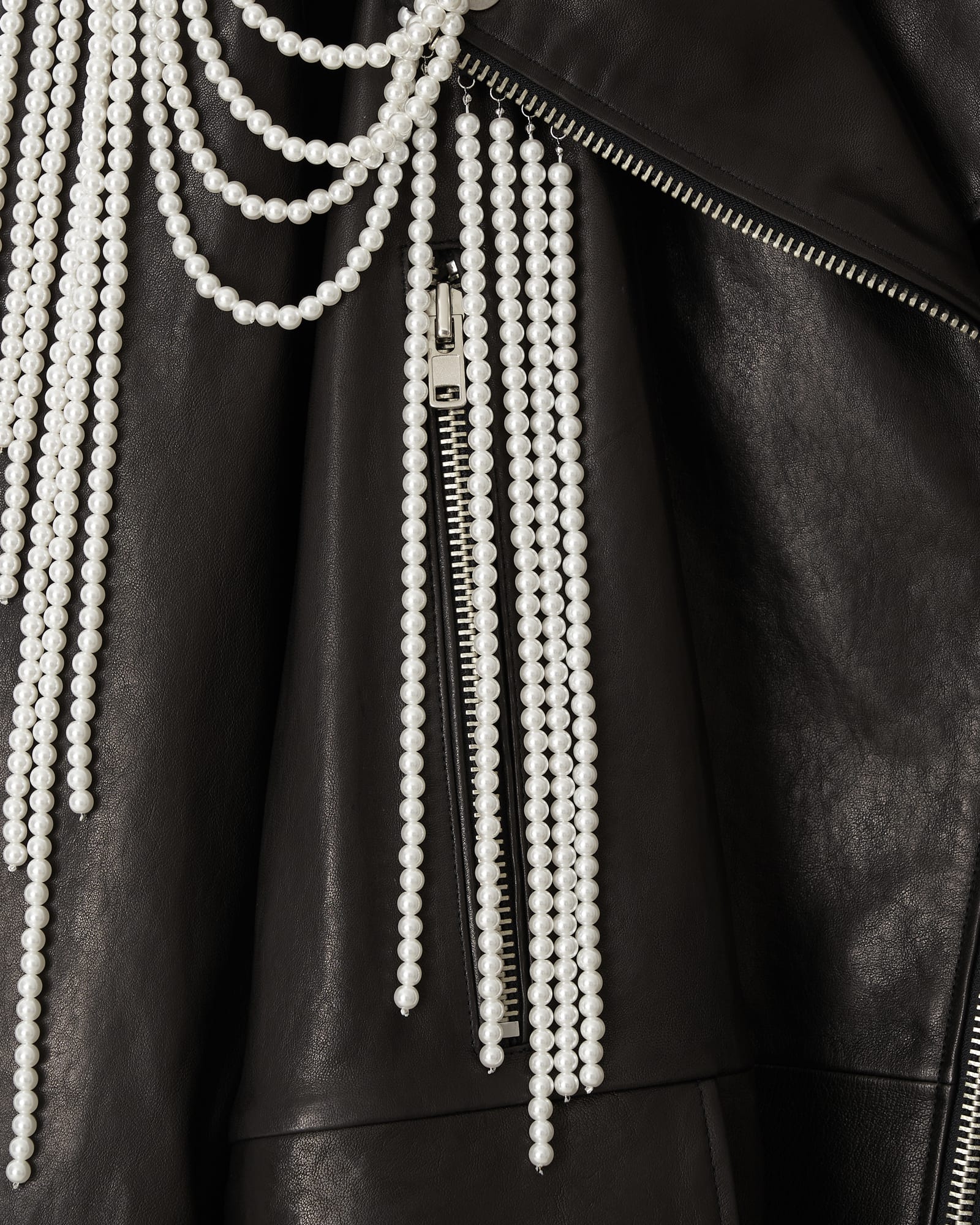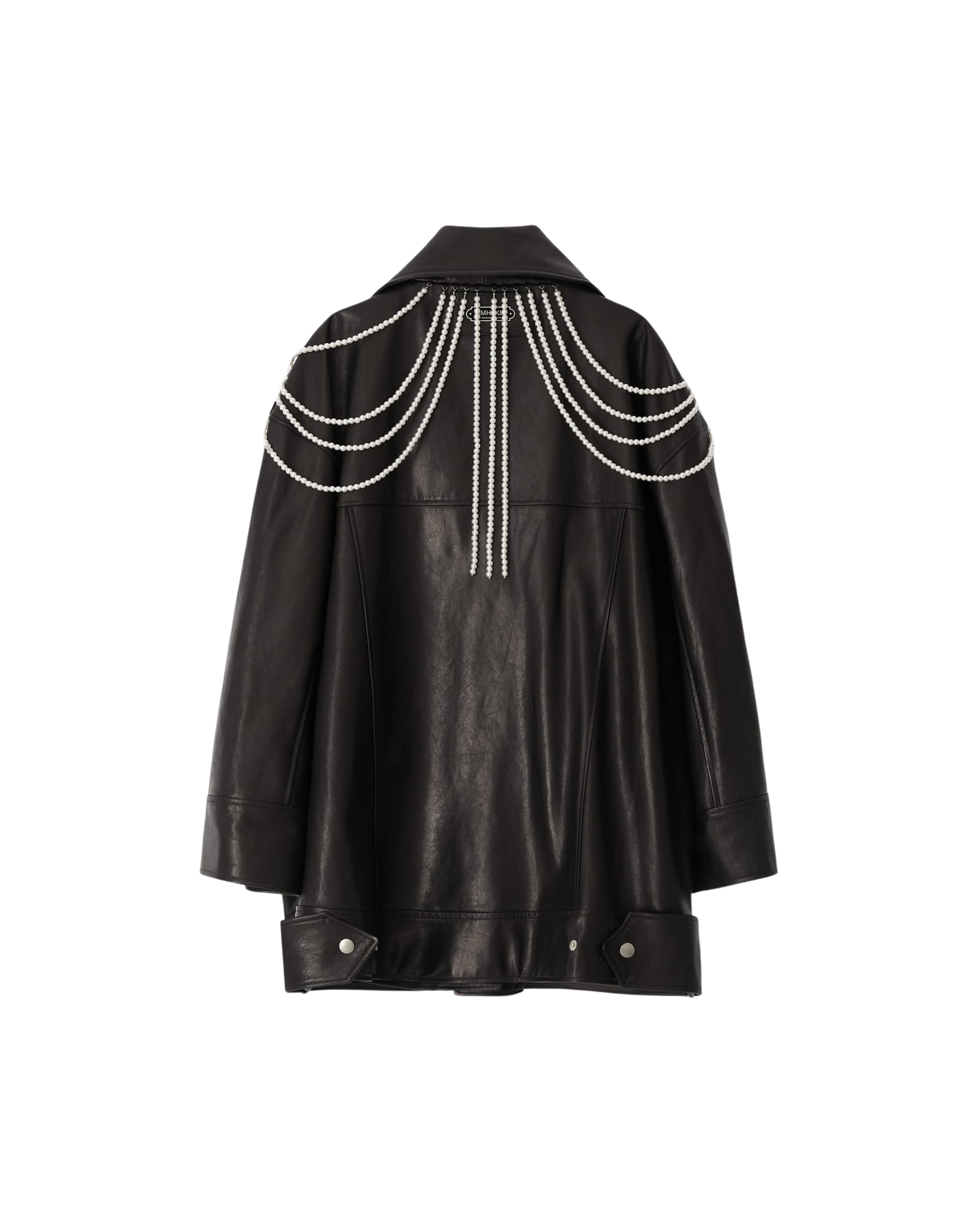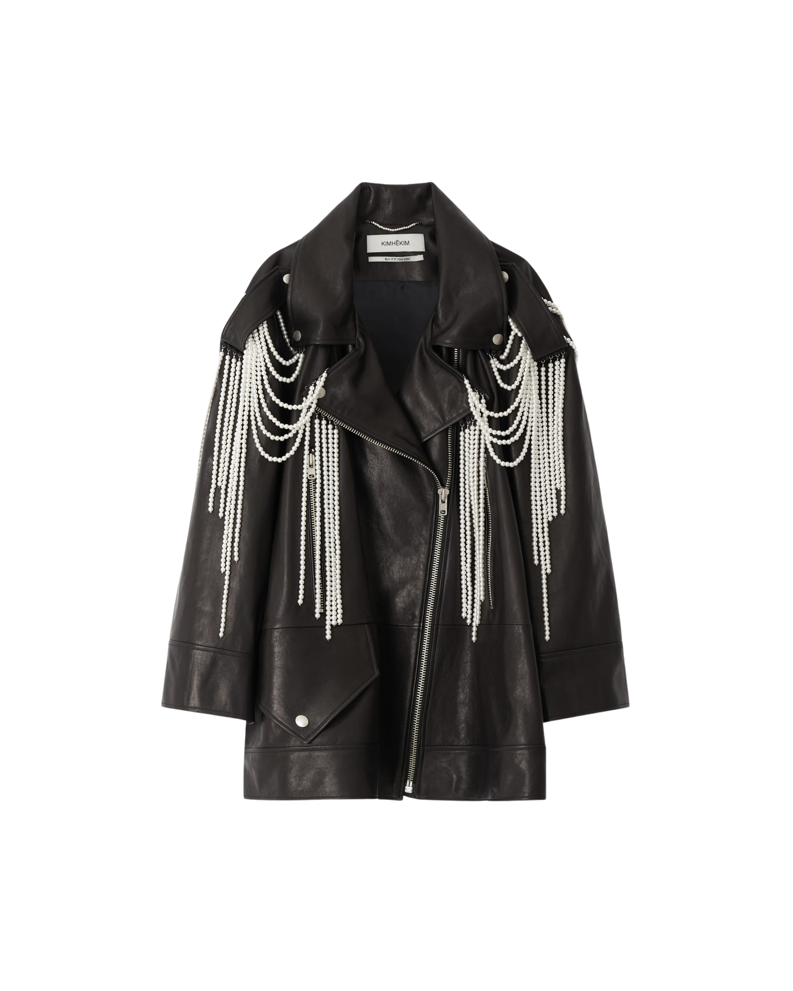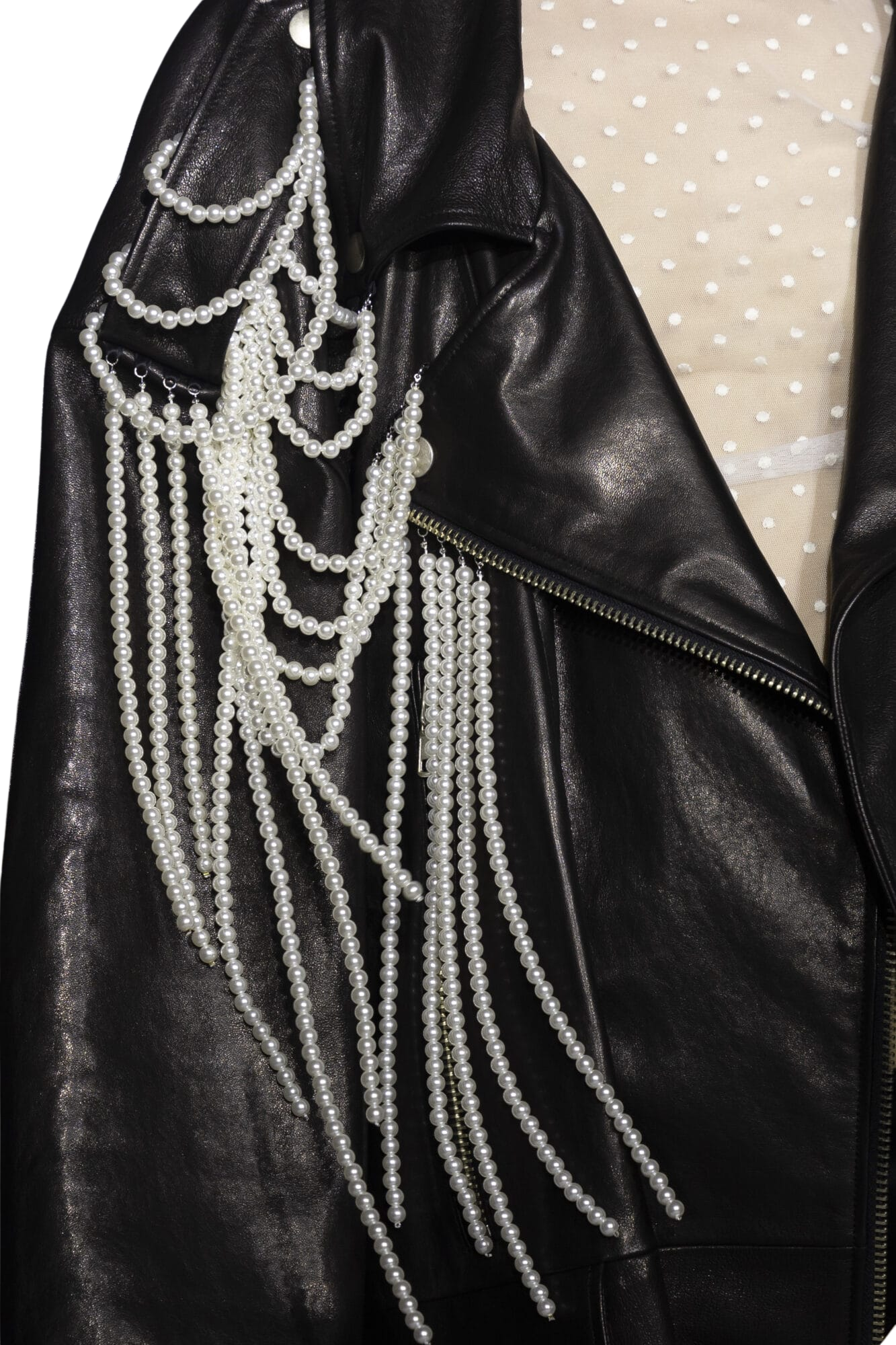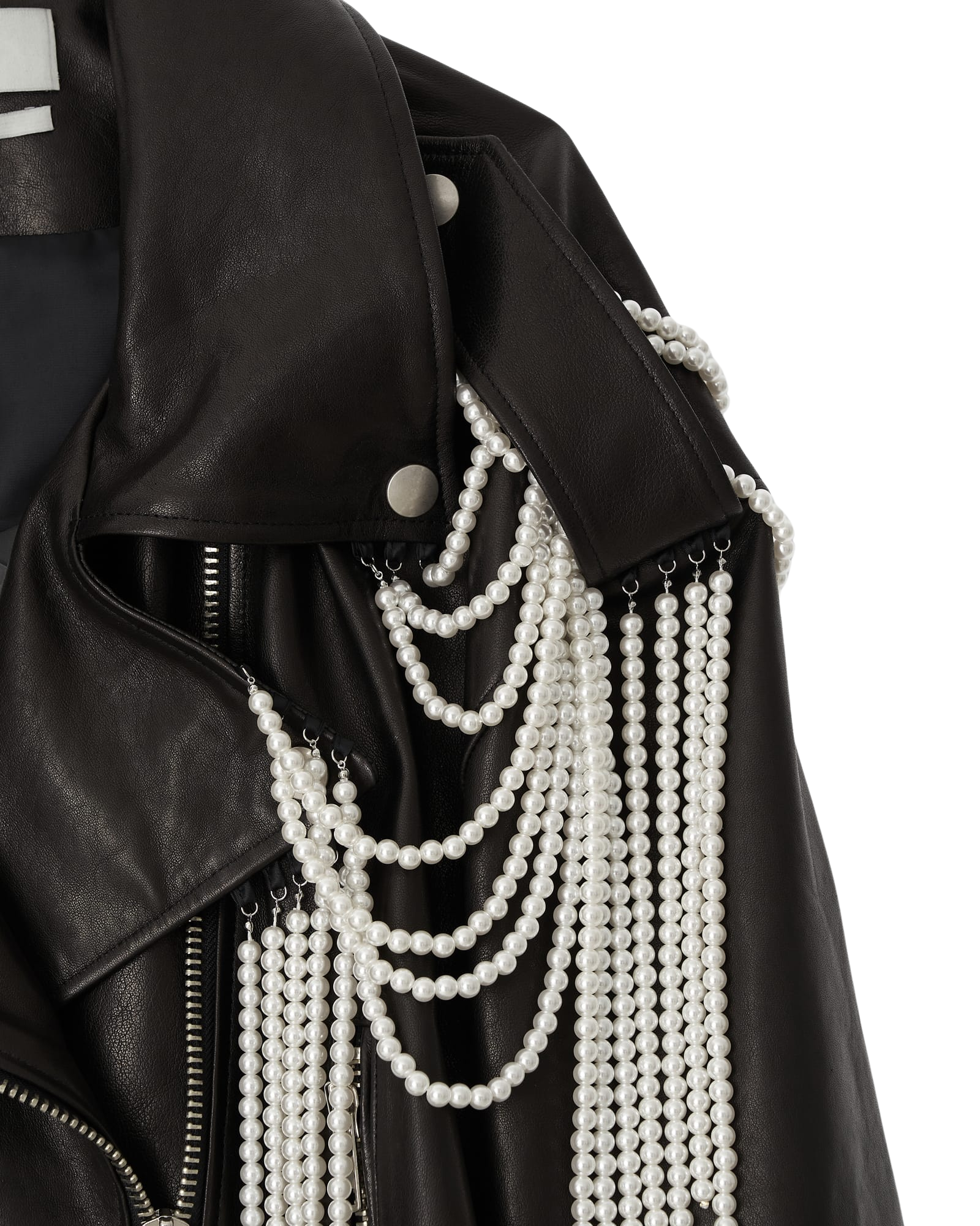 Pearl Embellished Men's Fit Rider Jacket (Black)