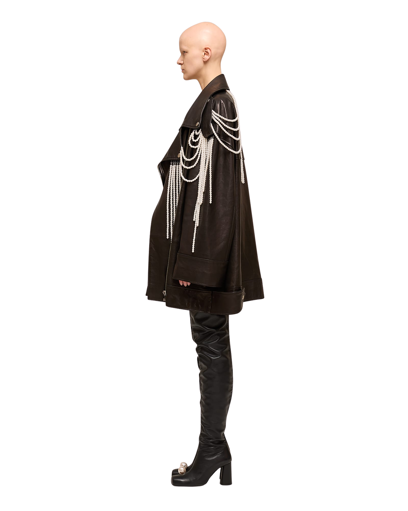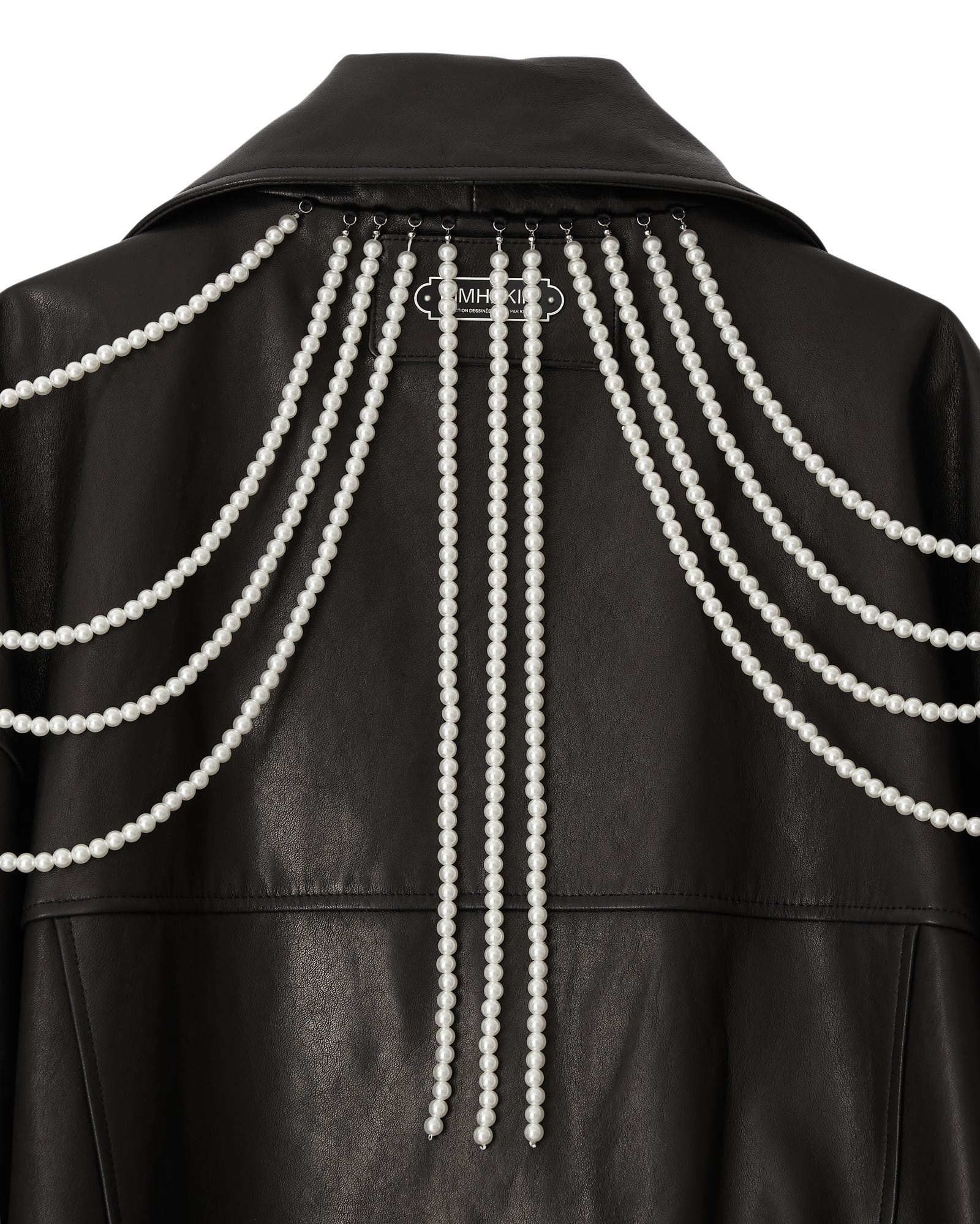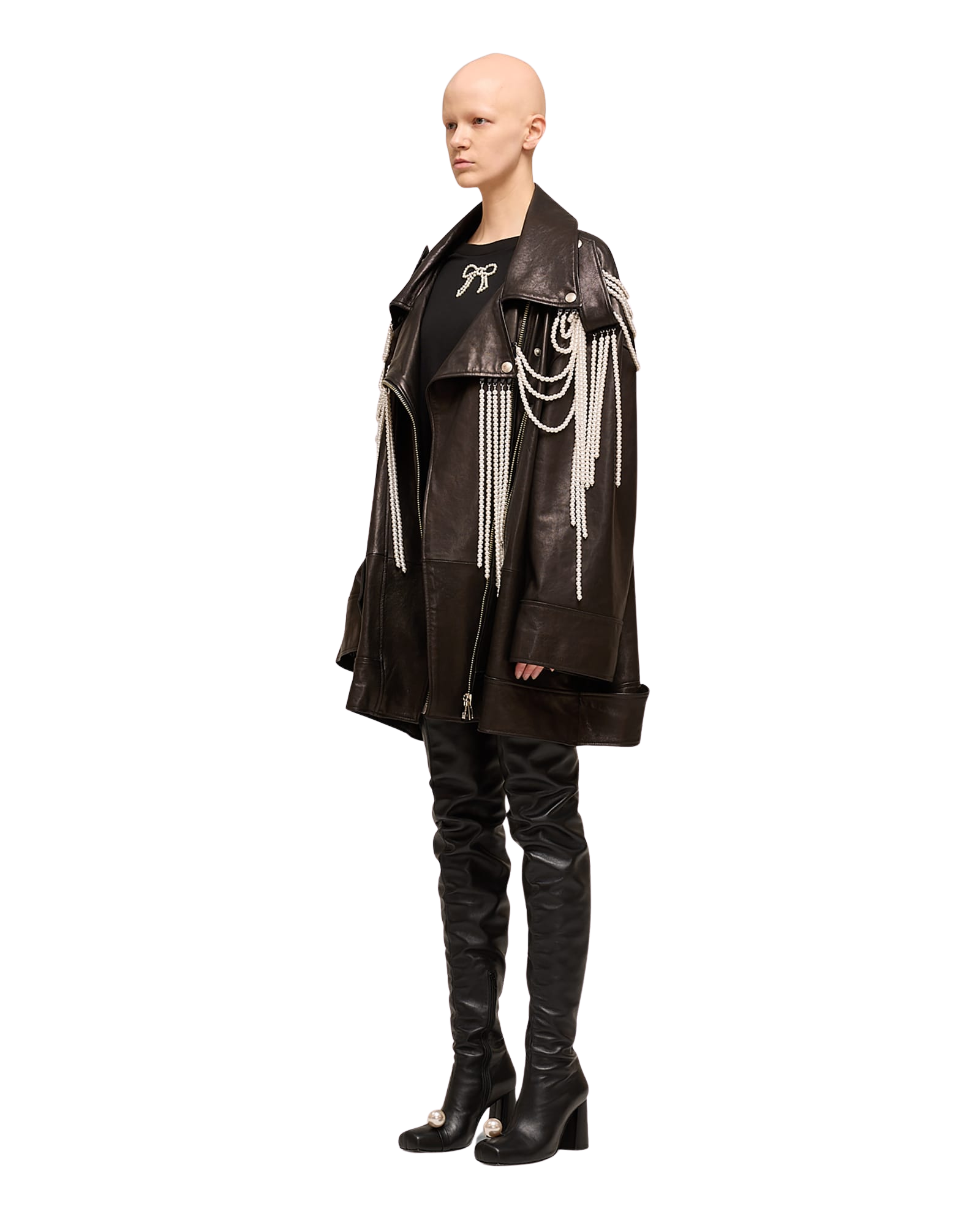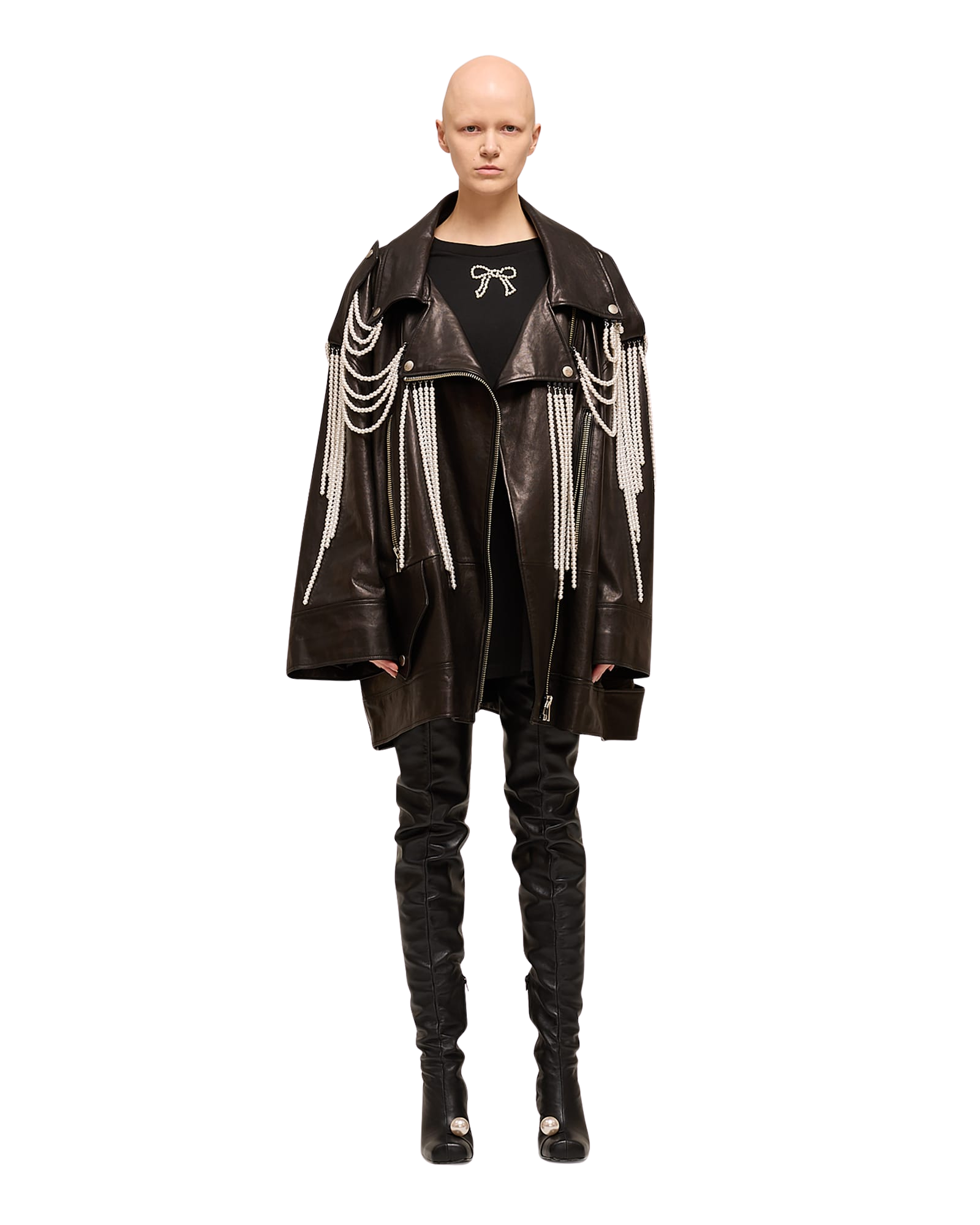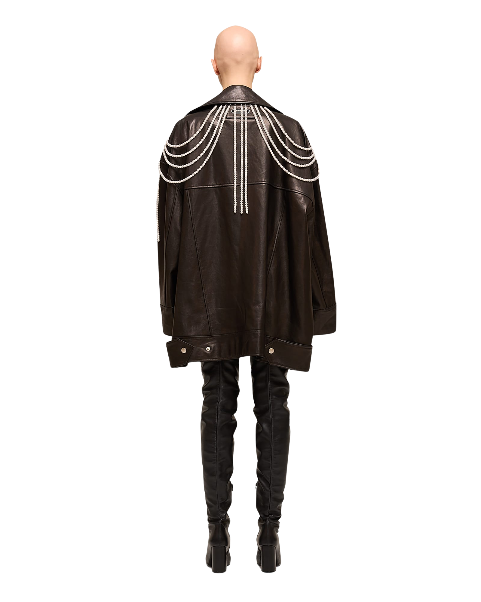 Pearl Embellished Men's Fit Rider Jacket (Black)