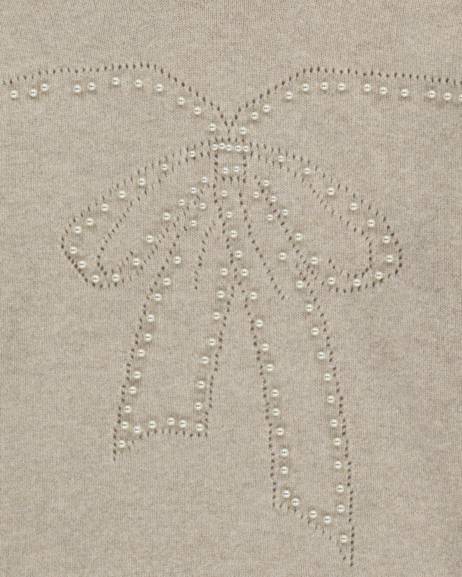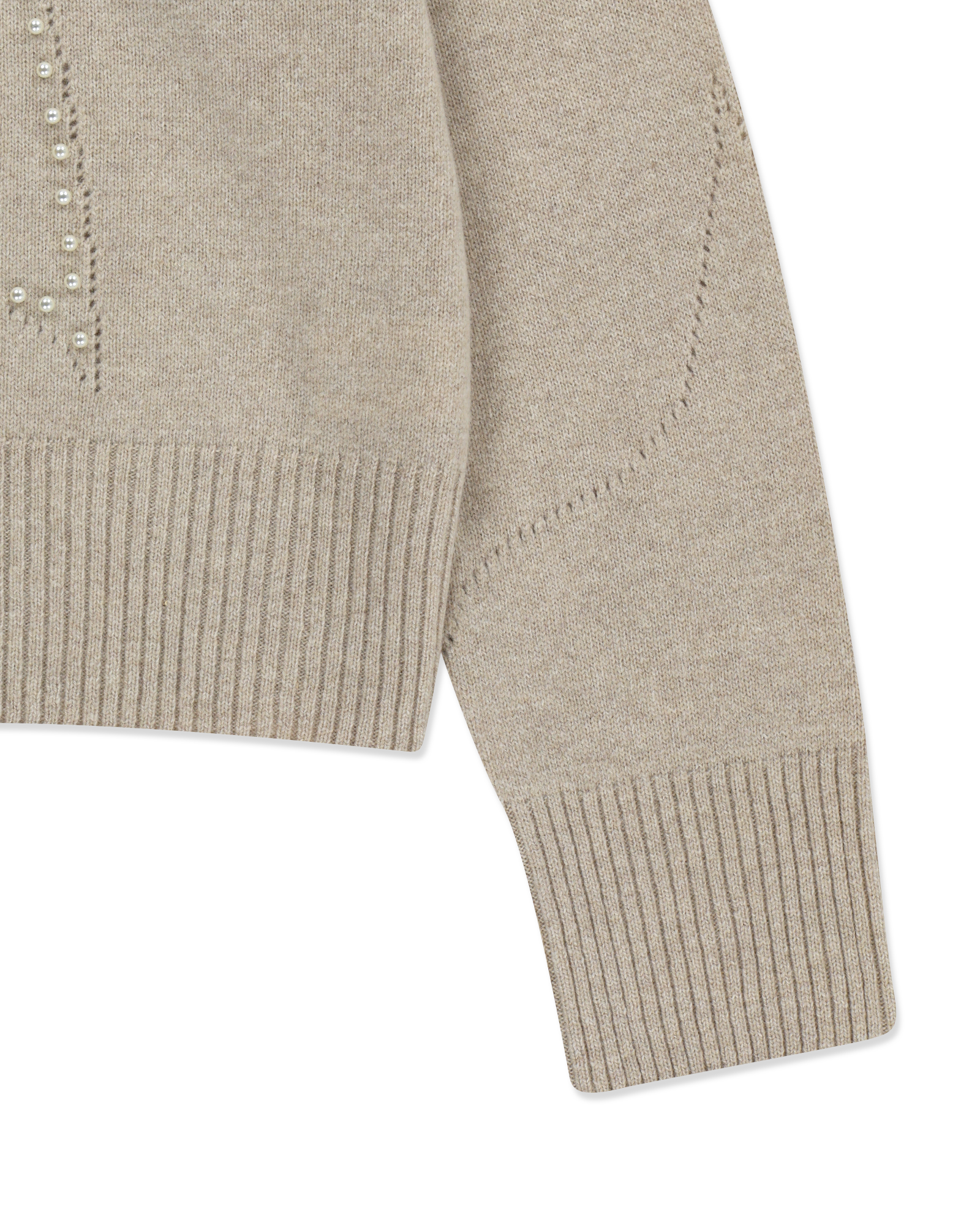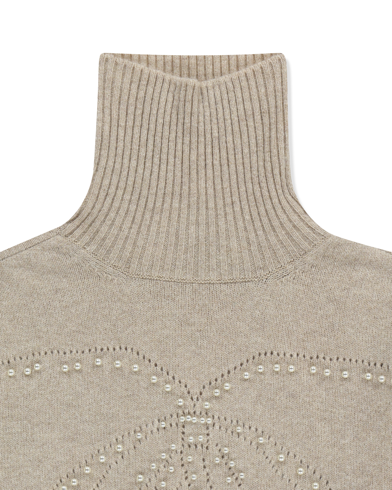 COMPOSITION - YARN: BABY ALPACA 15%, SUPERFINE MERINO WOOL 78% NYLON 7% EMBELLISHMENT: ACRYLIC PEARL
