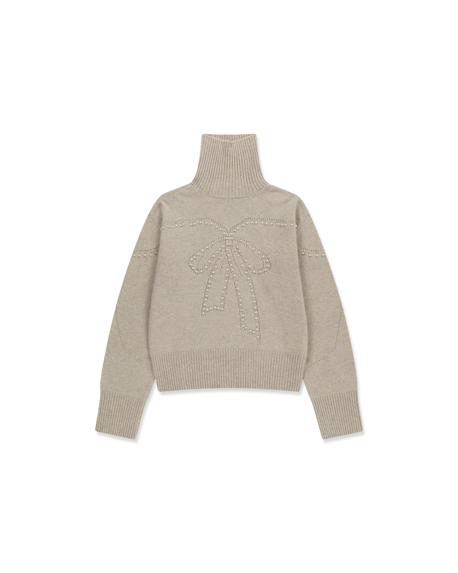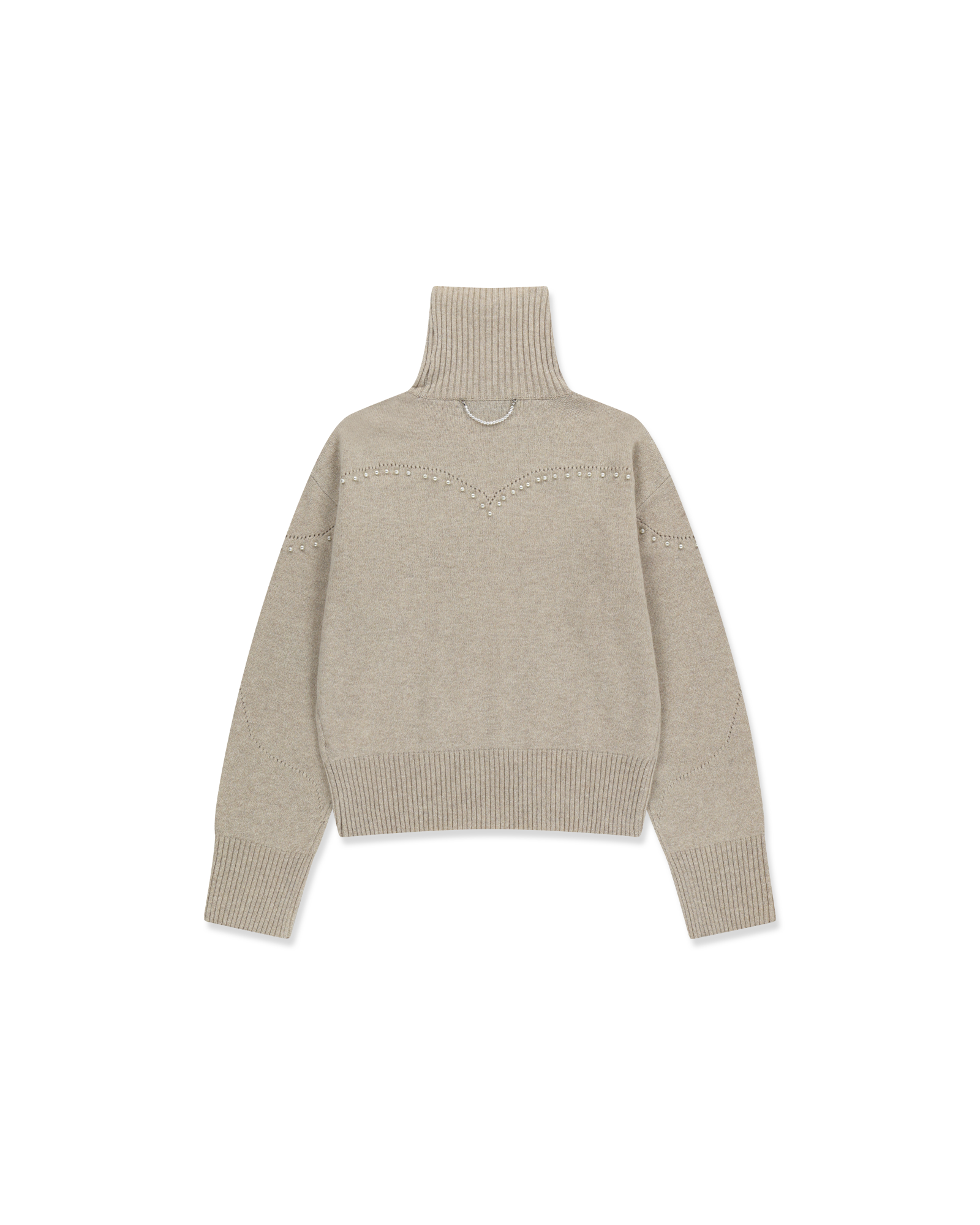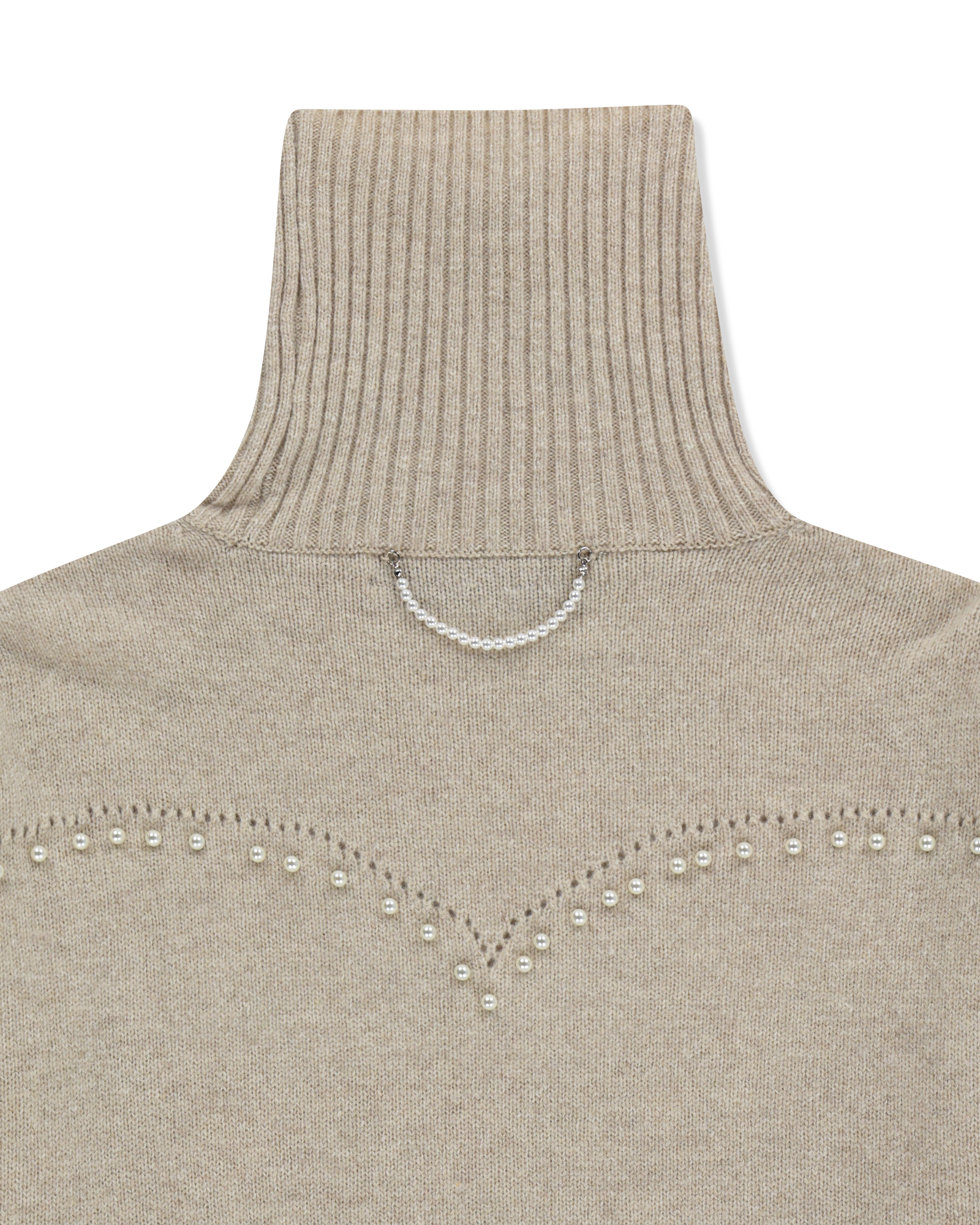 COMPOSITION - YARN: BABY ALPACA 15%, SUPERFINE MERINO WOOL 78% NYLON 7% EMBELLISHMENT: ACRYLIC PEARL