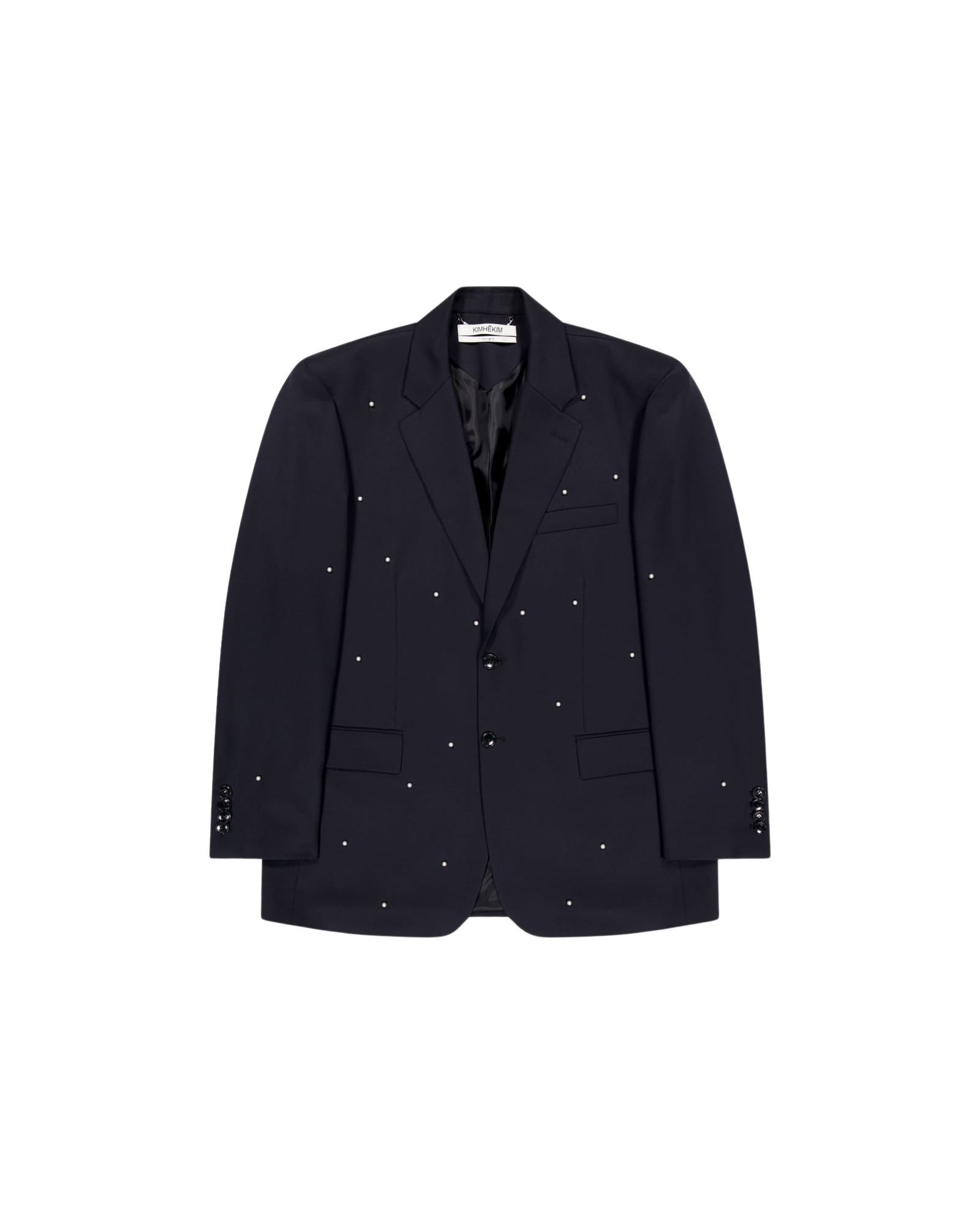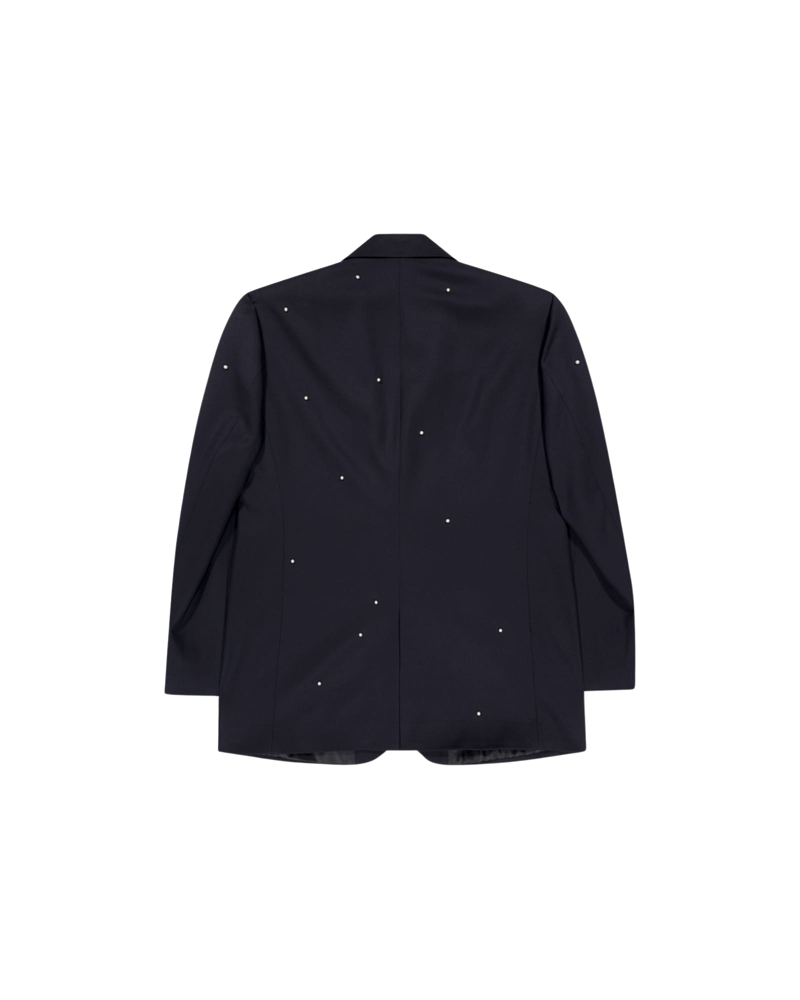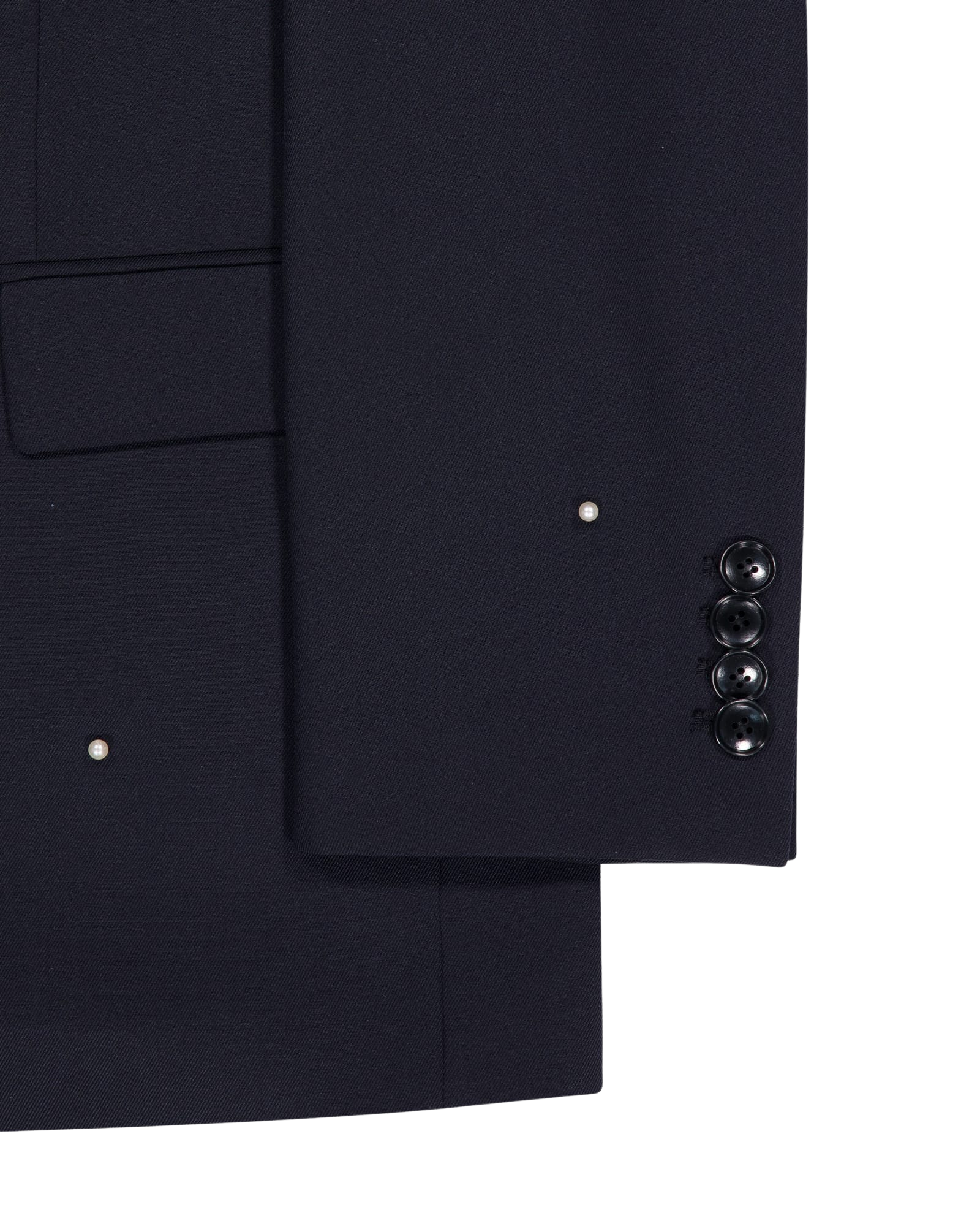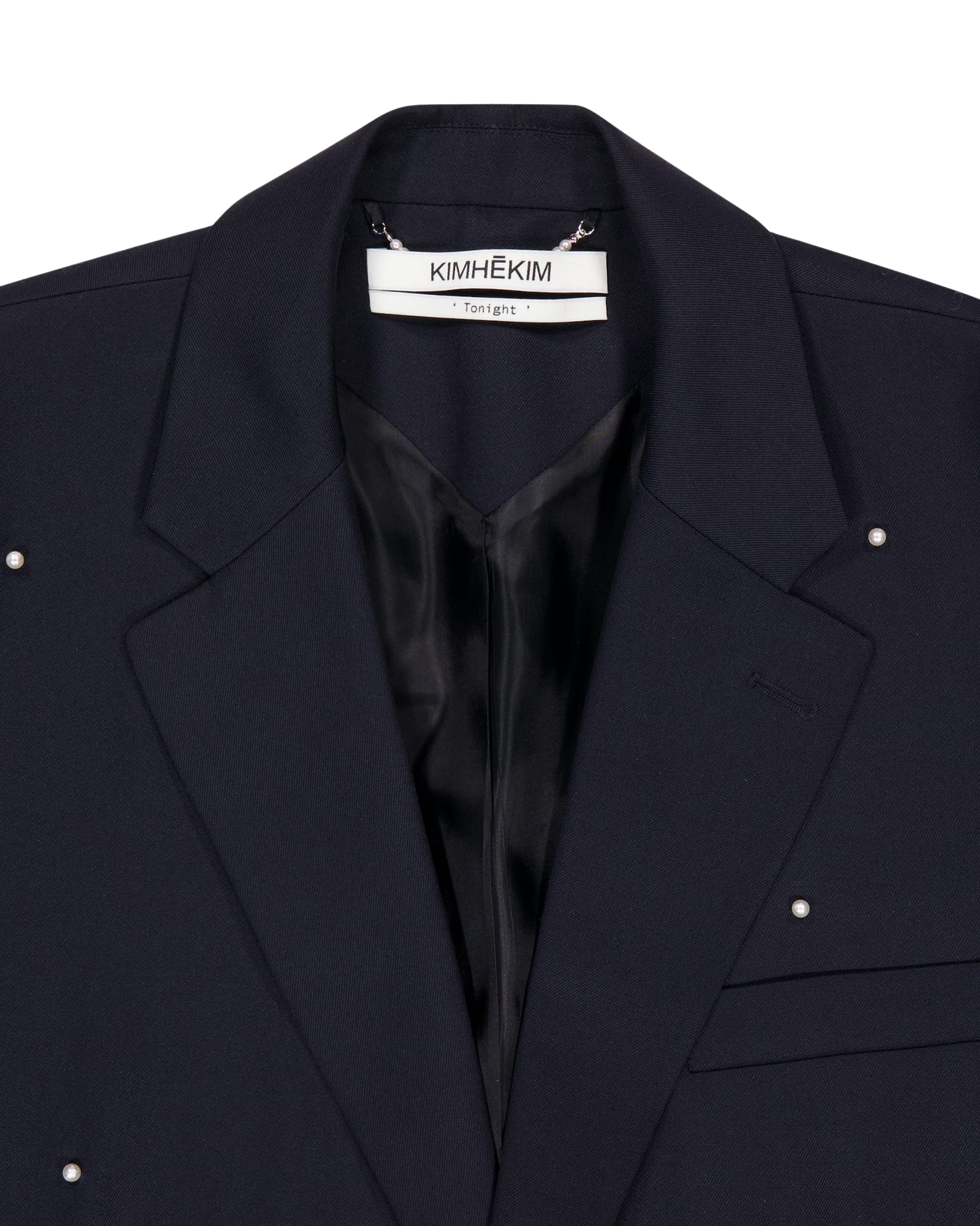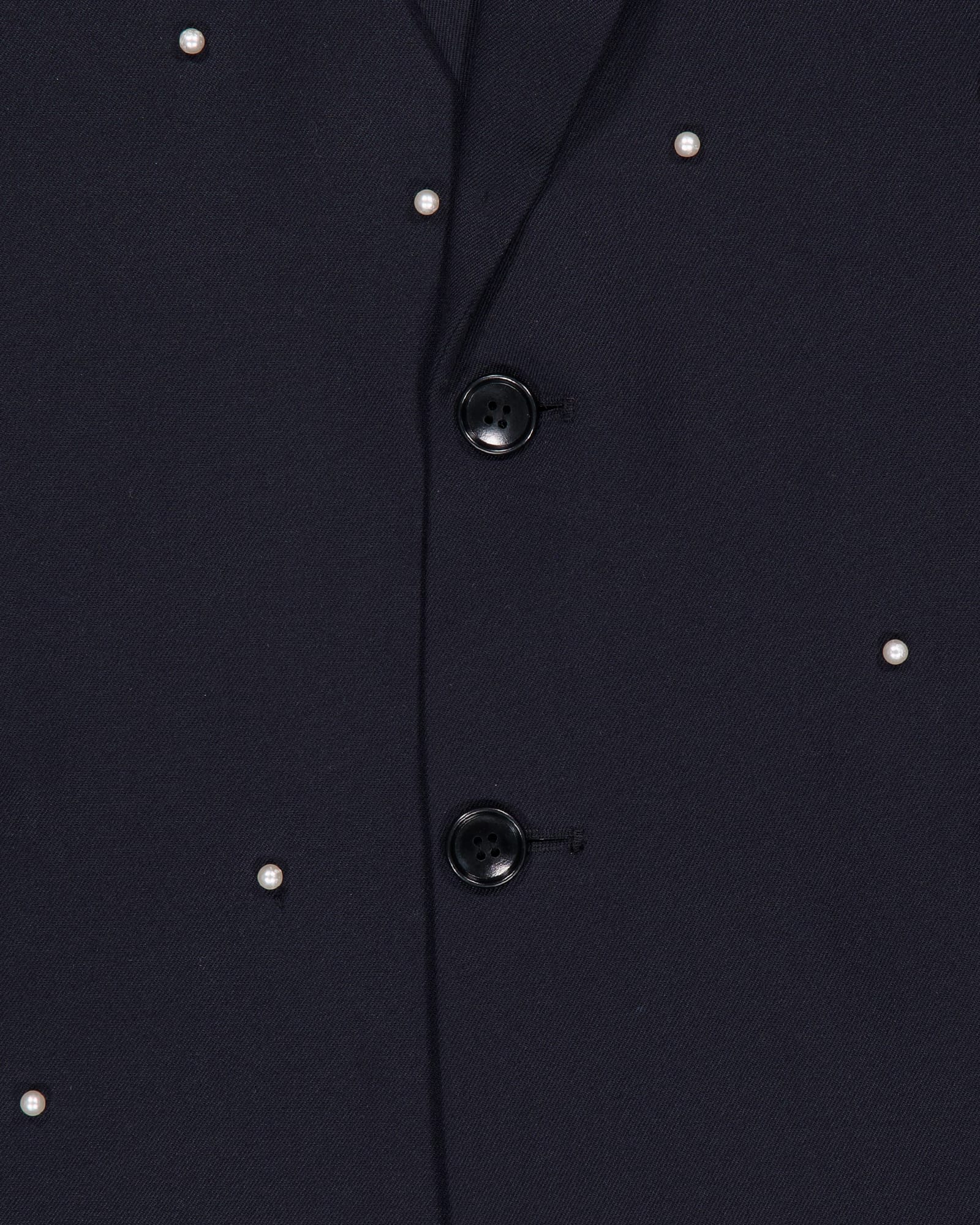 Pearl Embellished Single Breasted Blazer (Dark Navy)