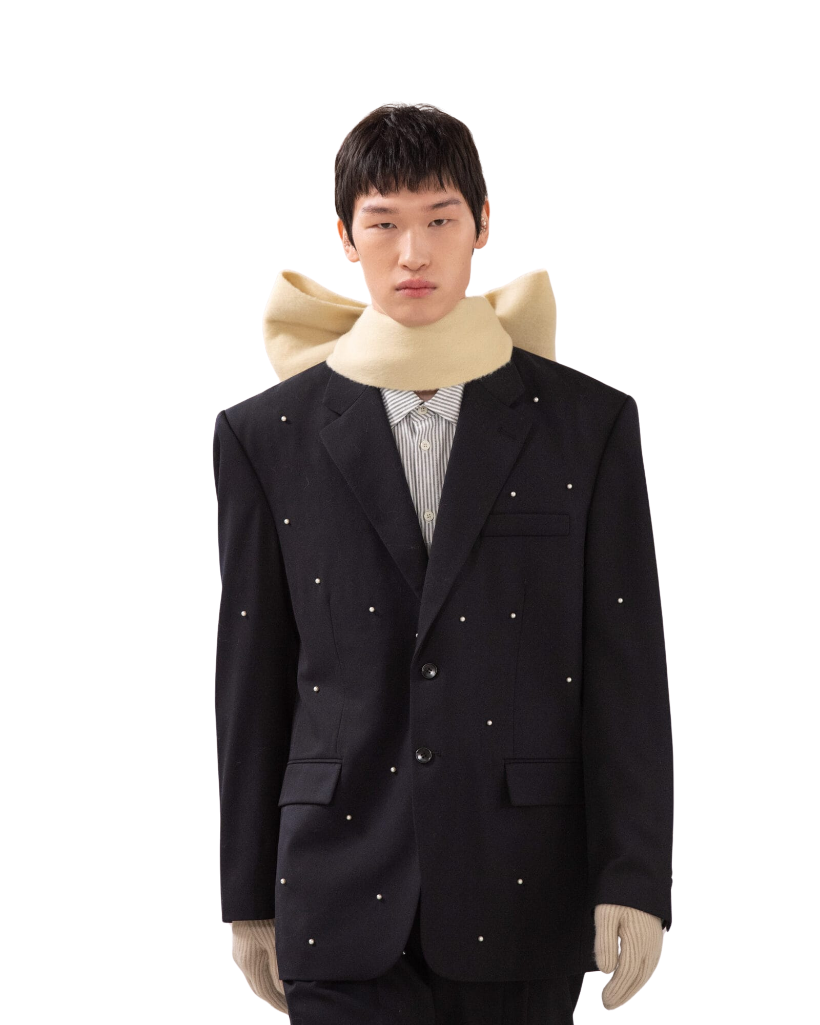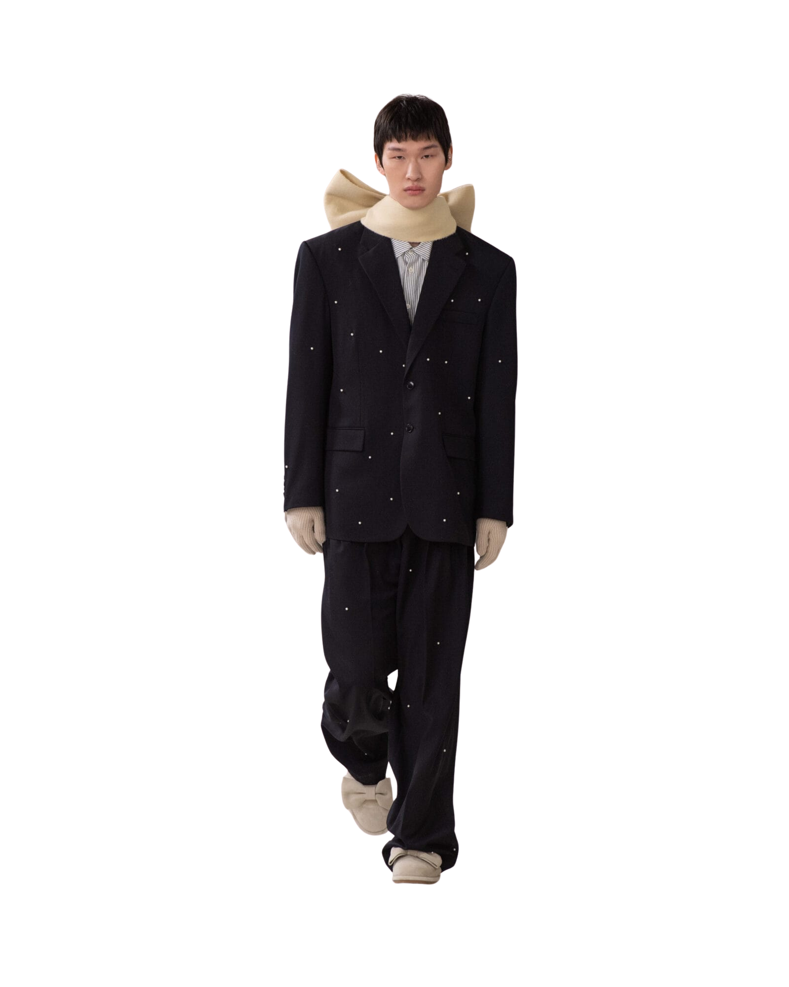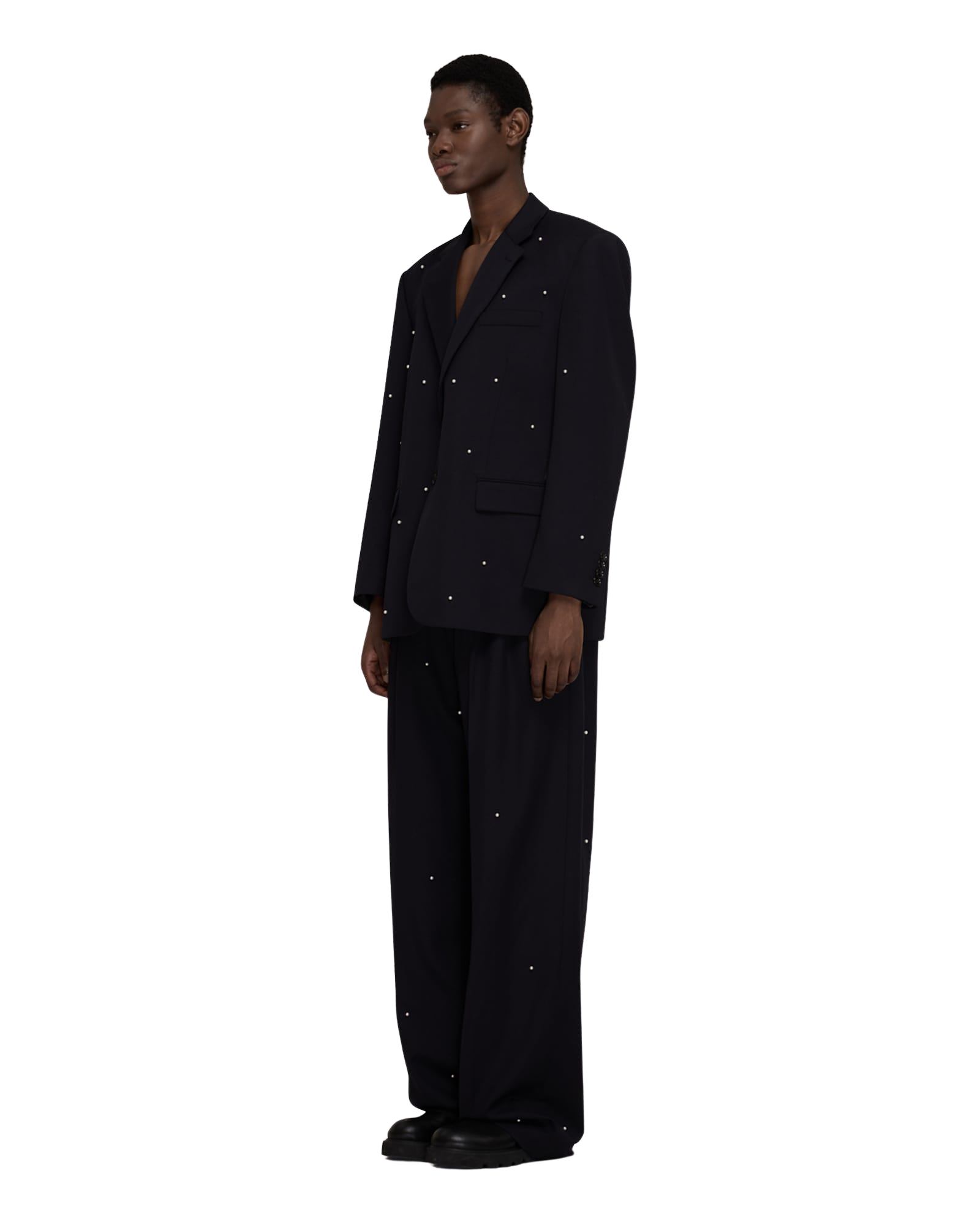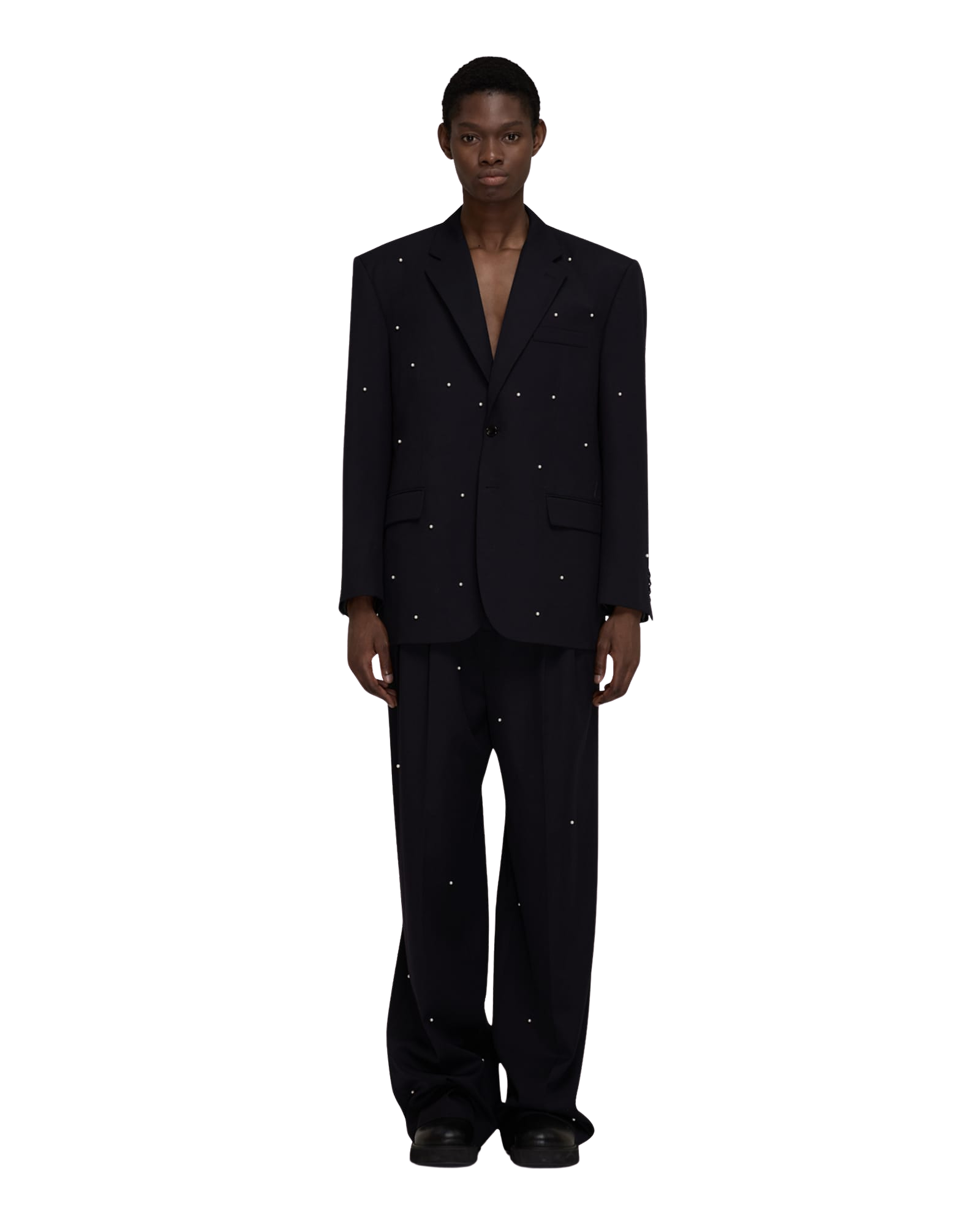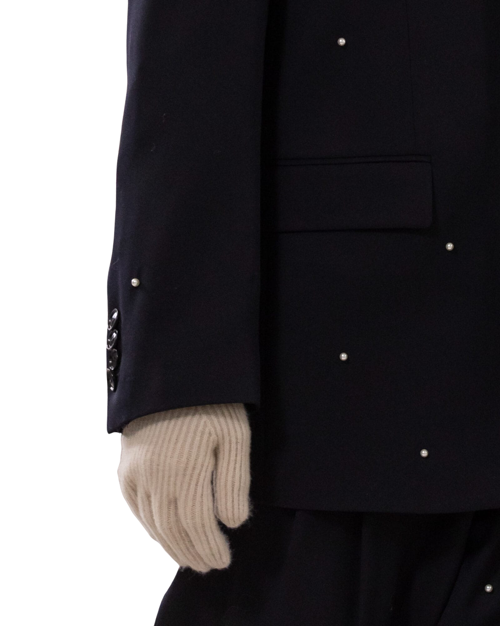 Pearl Embellished Single Breasted Blazer (Dark Navy)