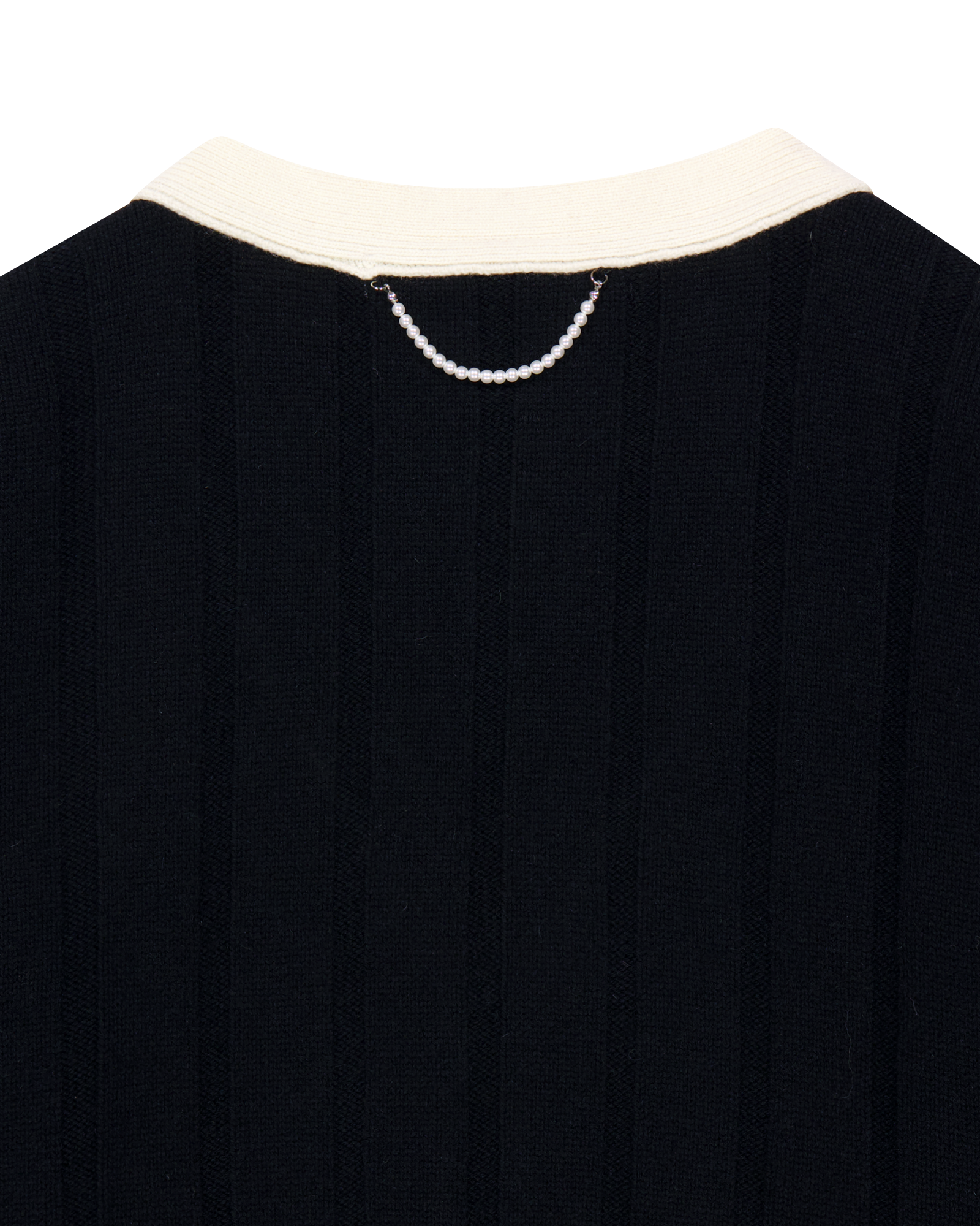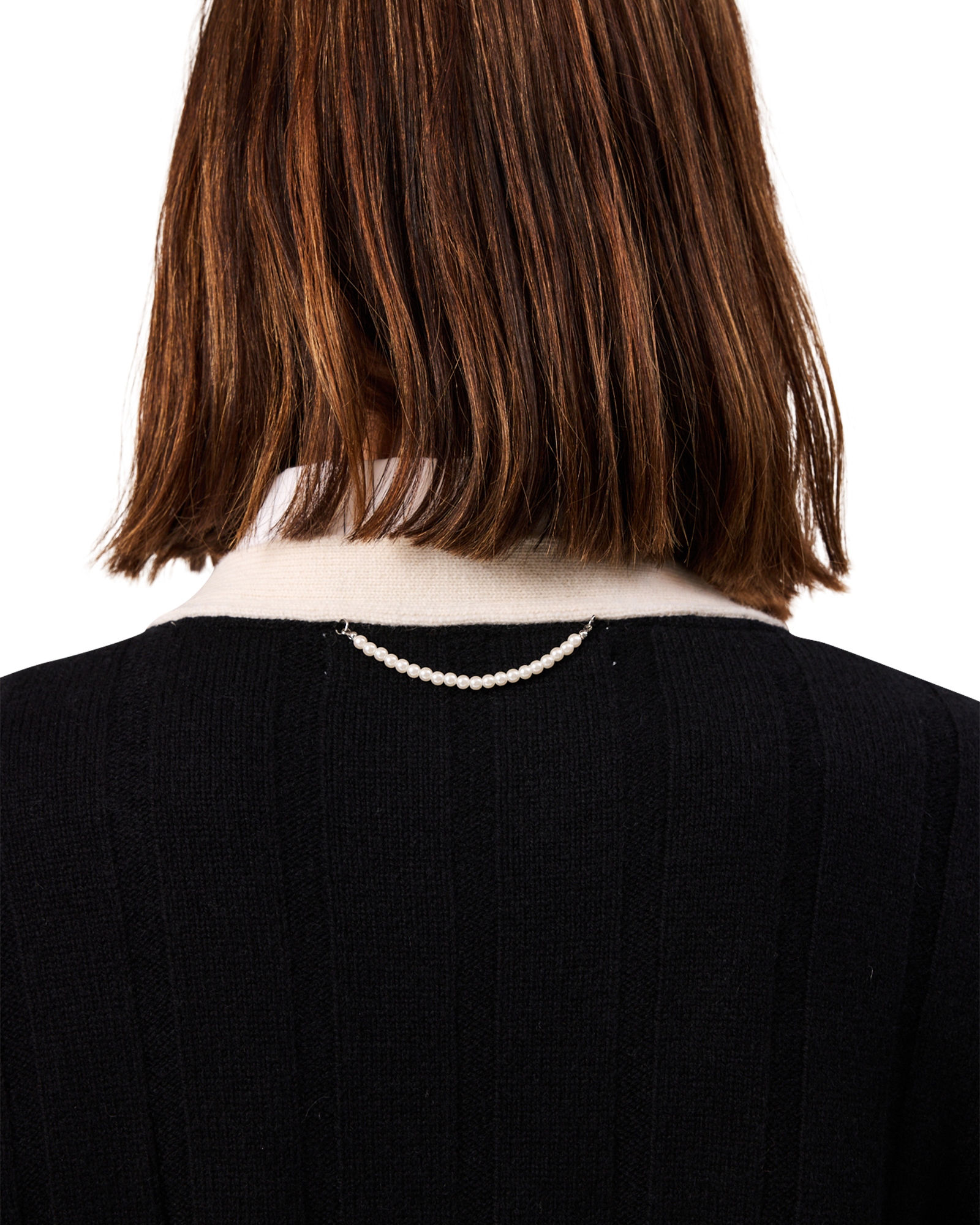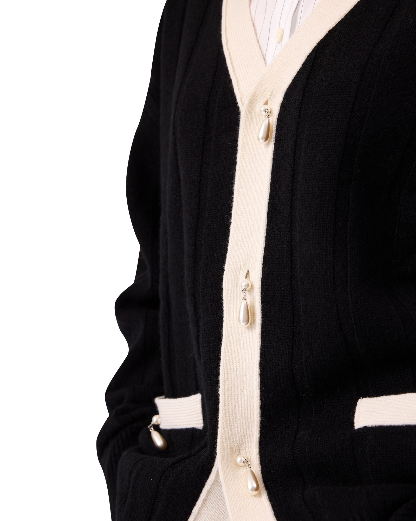 Pearl Embellished V-Neck Cardigan (Ivory/Black)