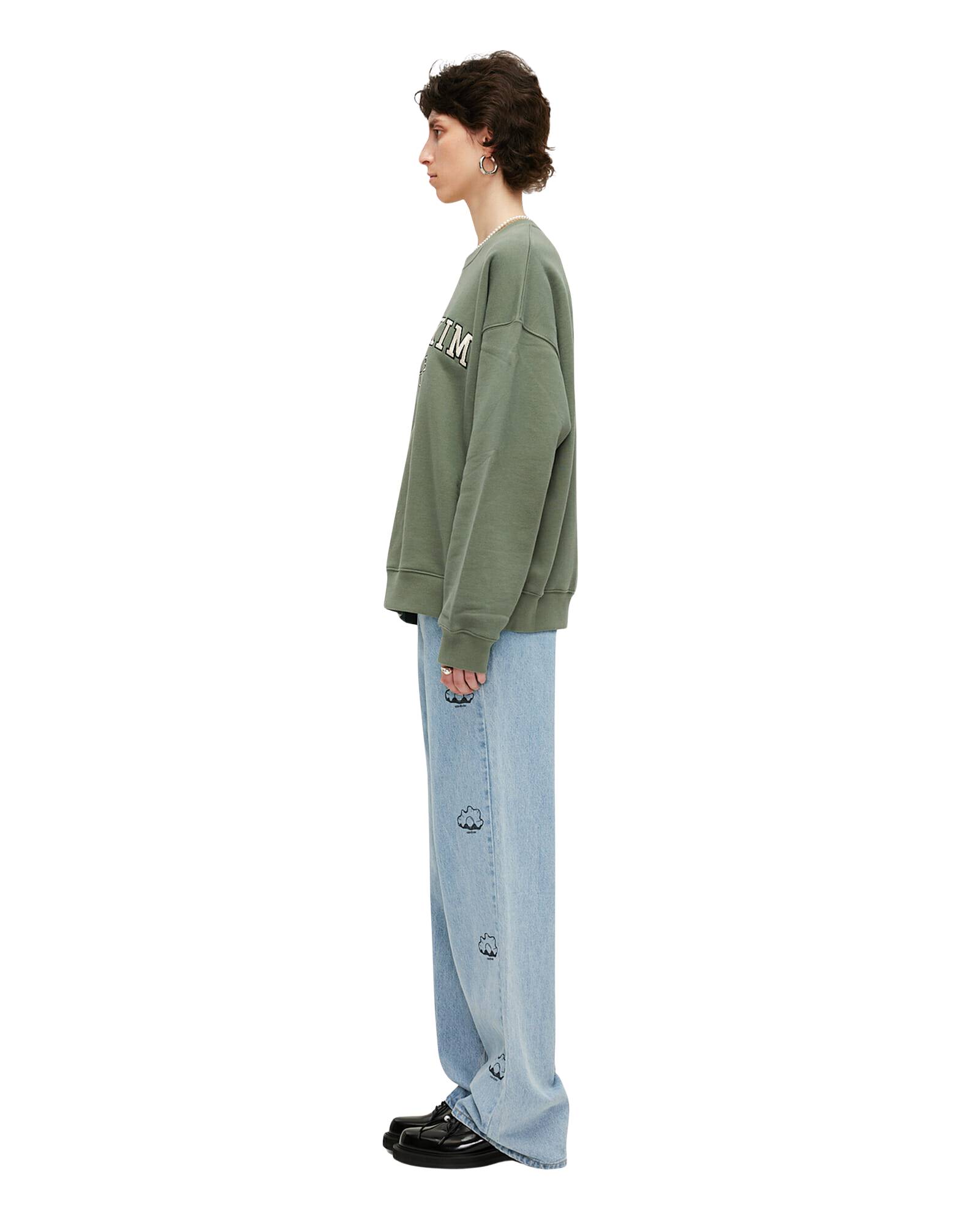Pearl Stamped Wide Leg Denim Pants (Sky Blue)