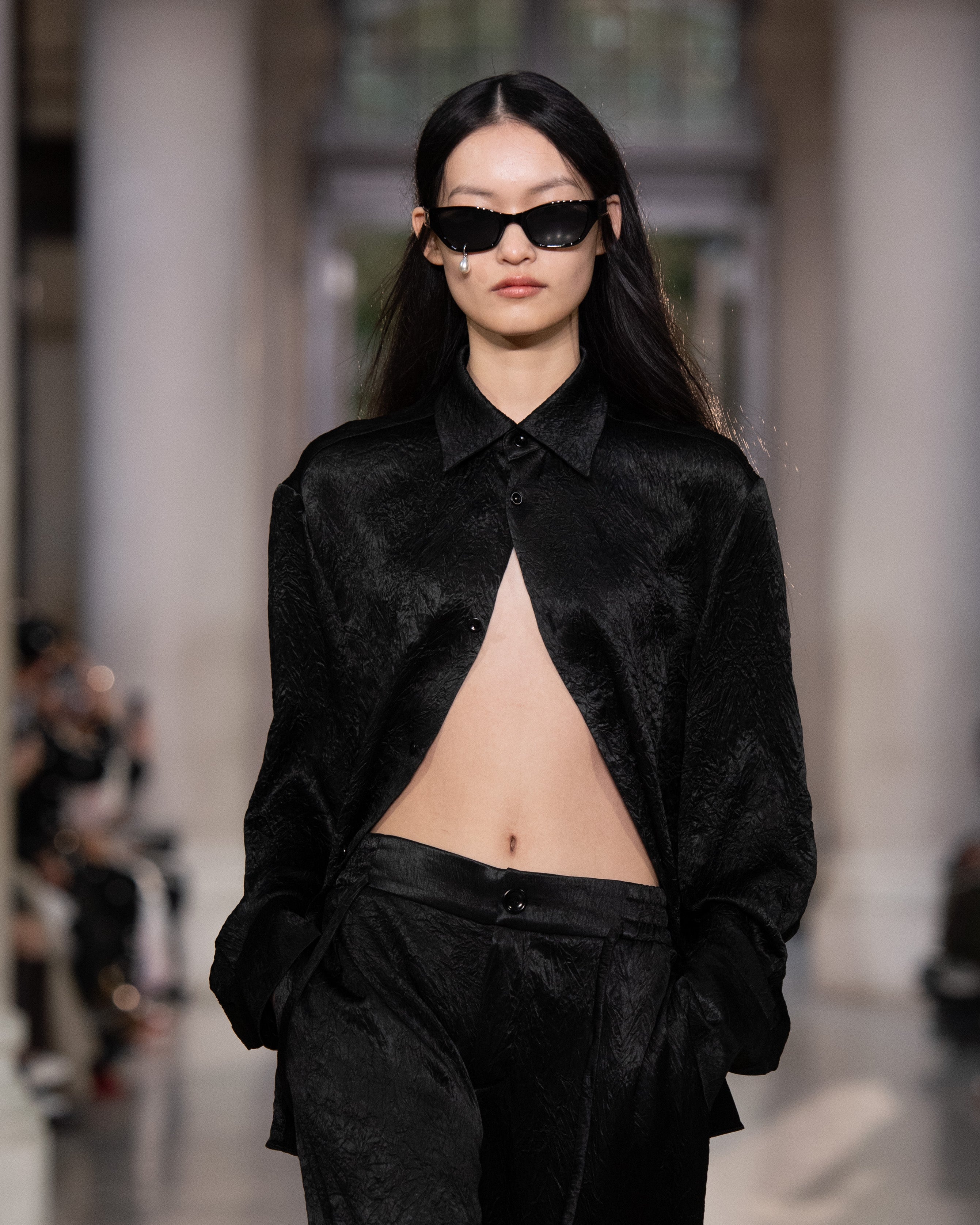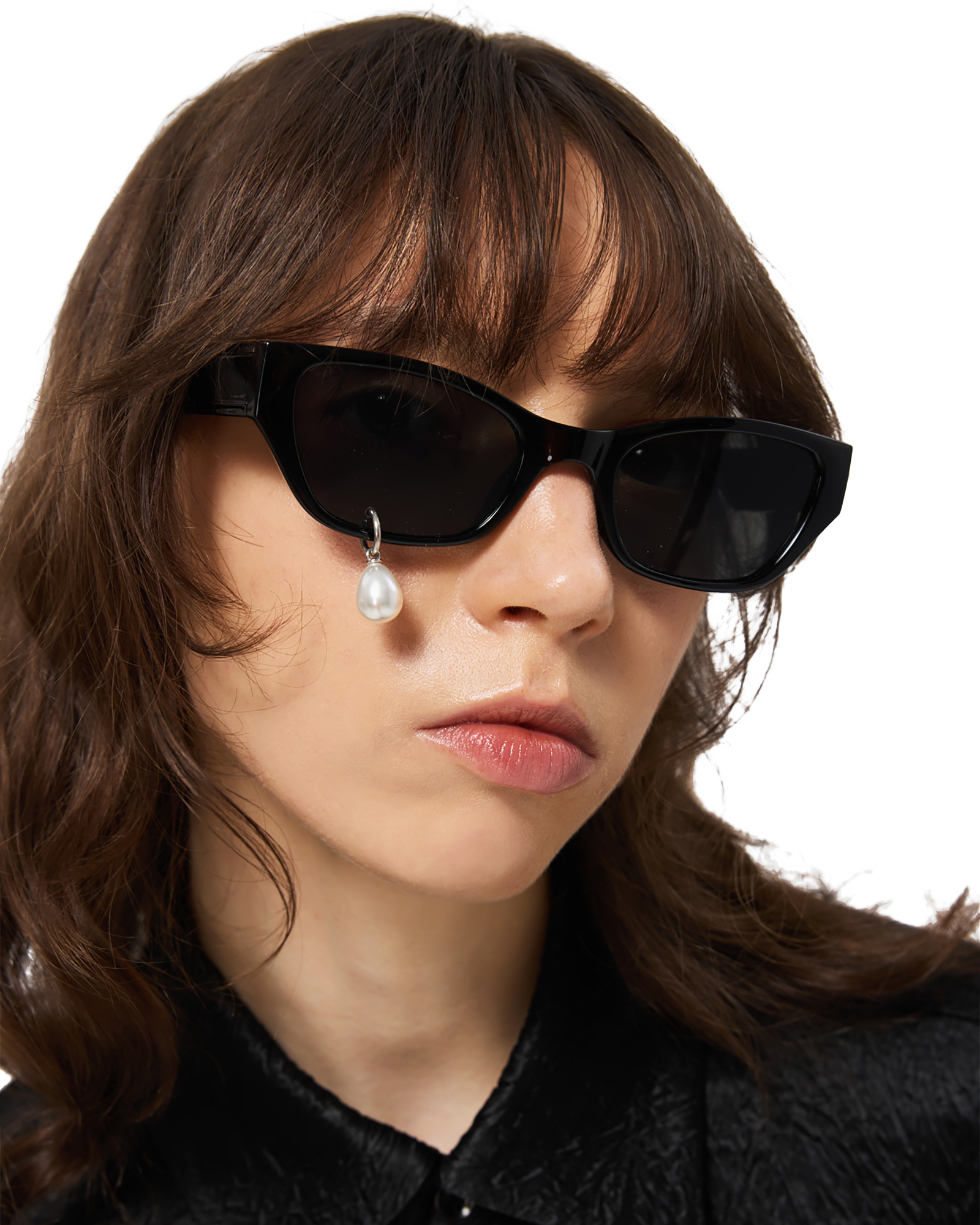 Pearl Tear Cat-Eye Sunglasses (Black)
