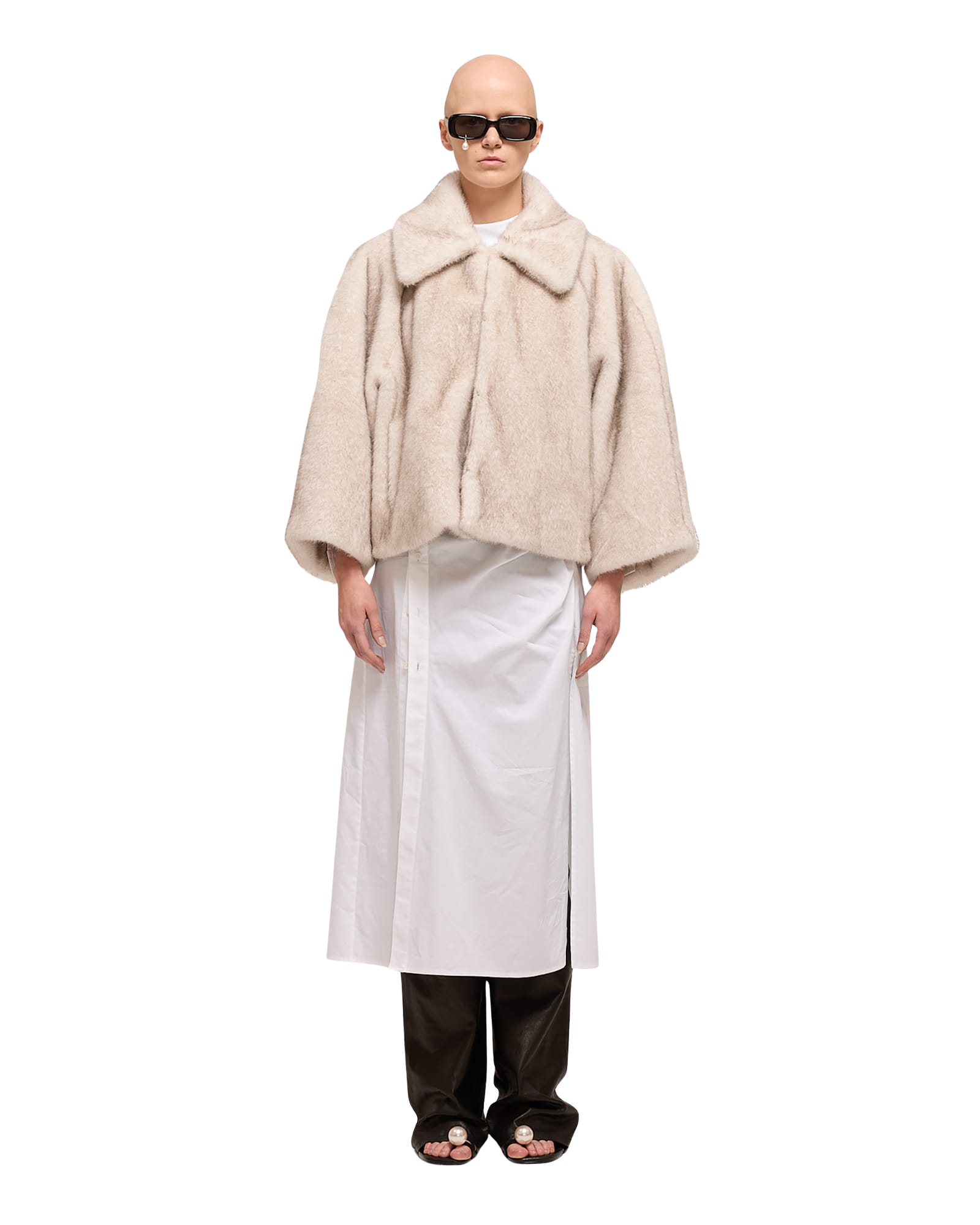 Pearl Button Cropped Mohair-Alpaca Cardigan (Ivory)