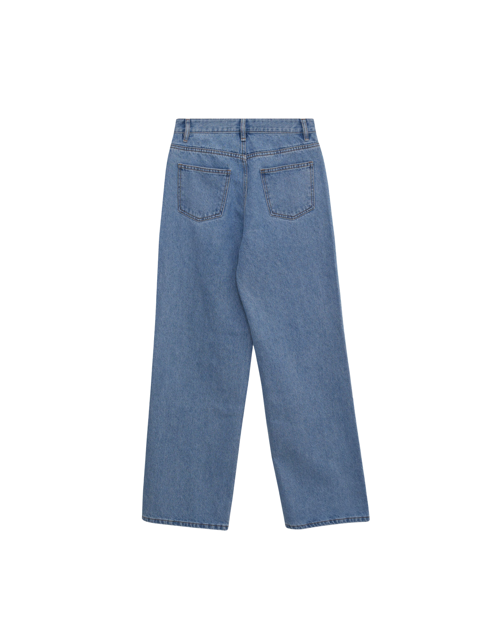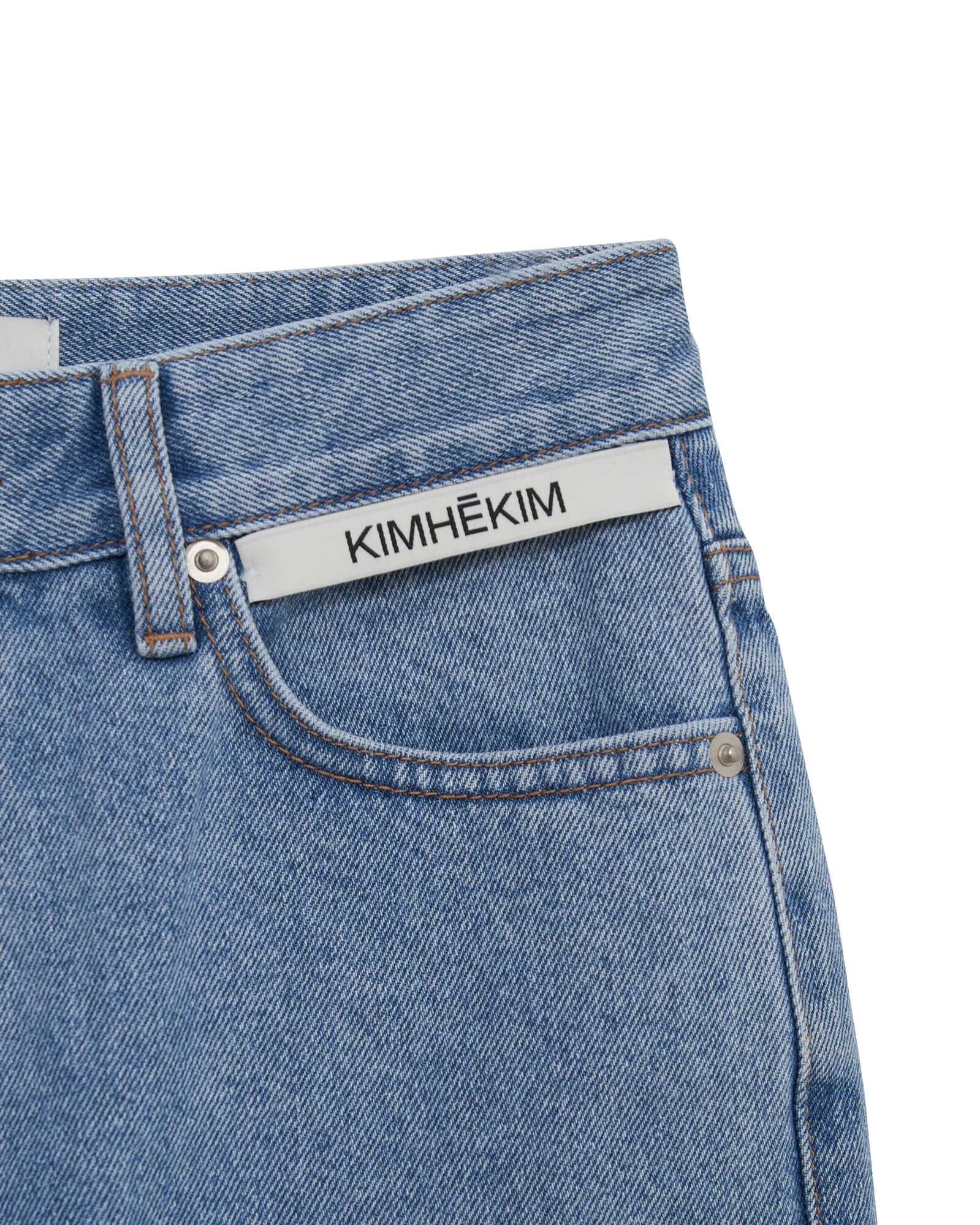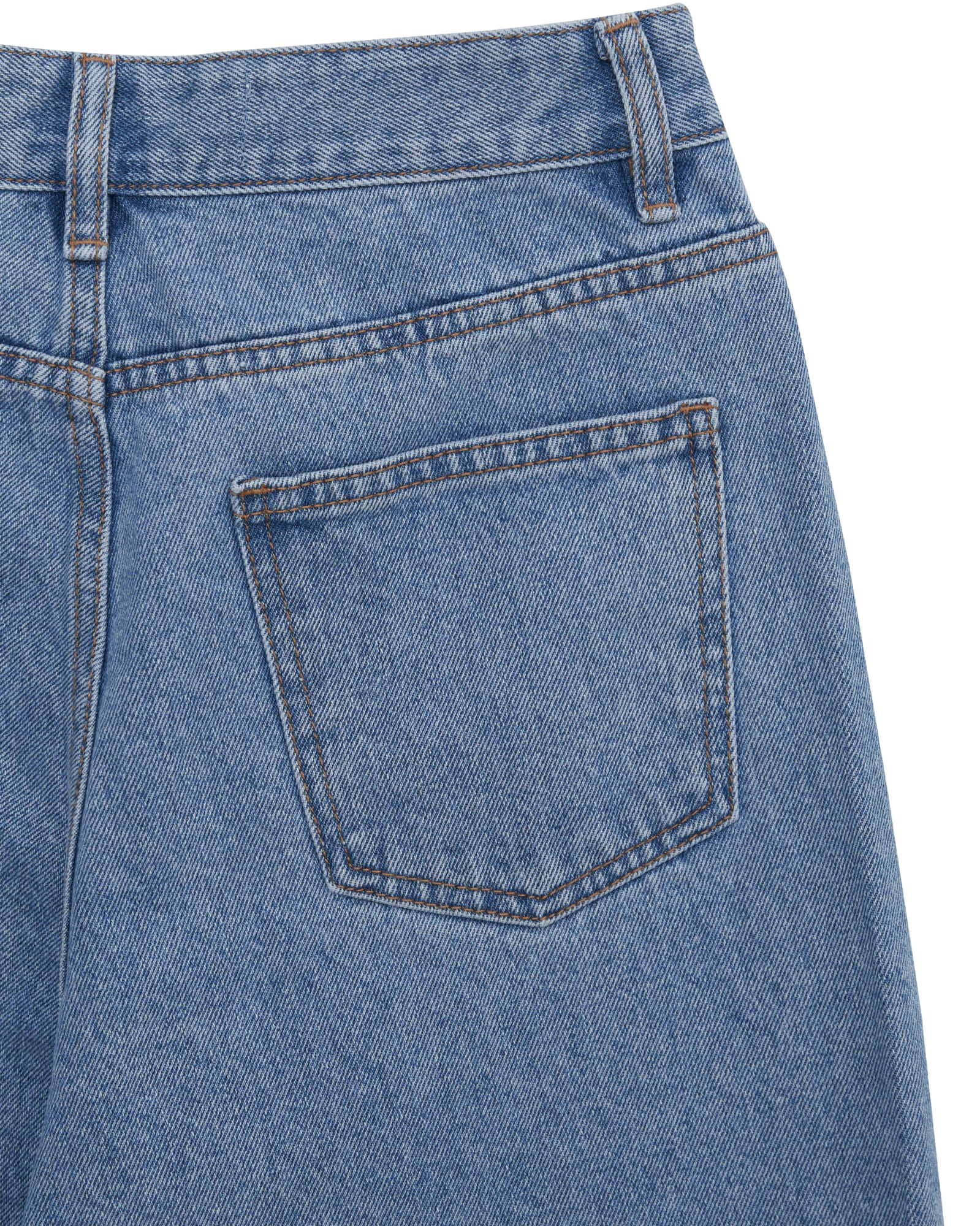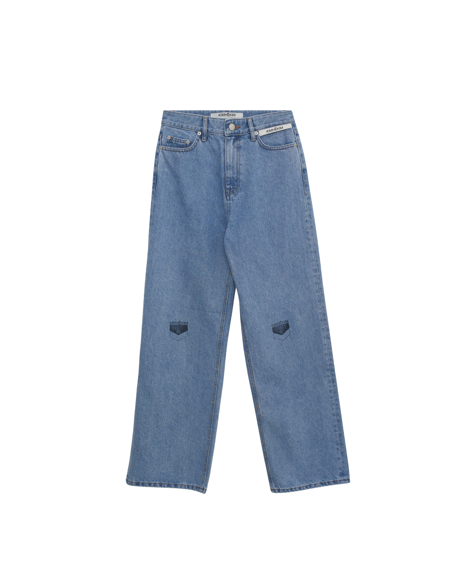 -Pocket shape is stamped on the washed denim with middle-rise waist line.