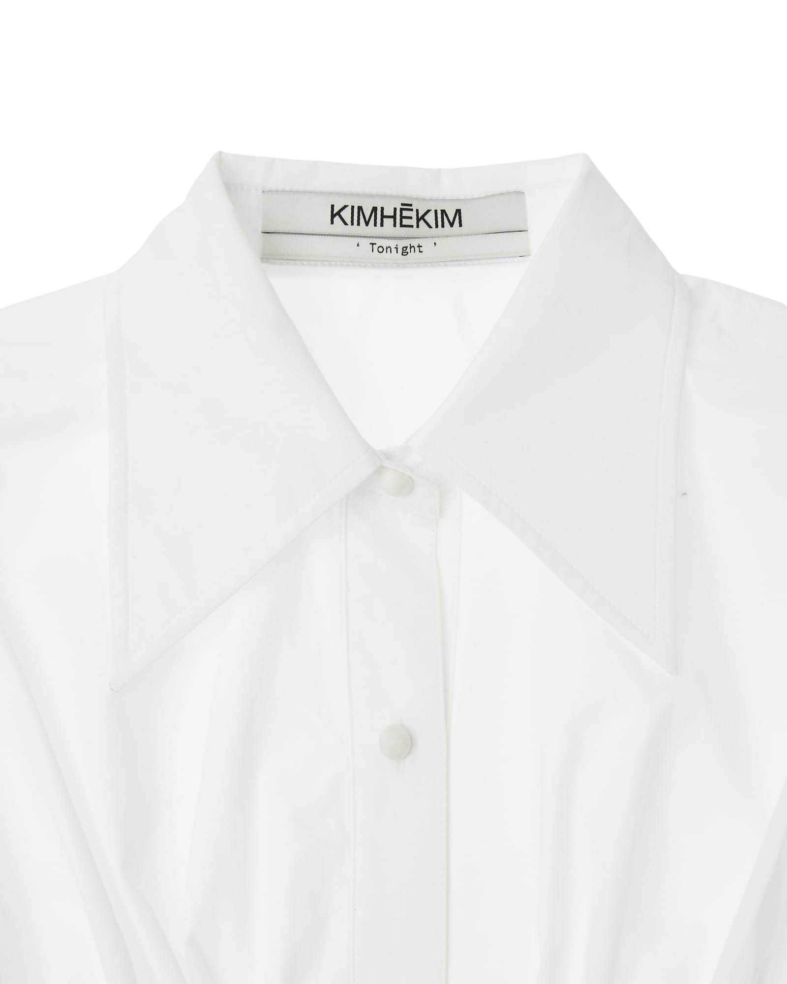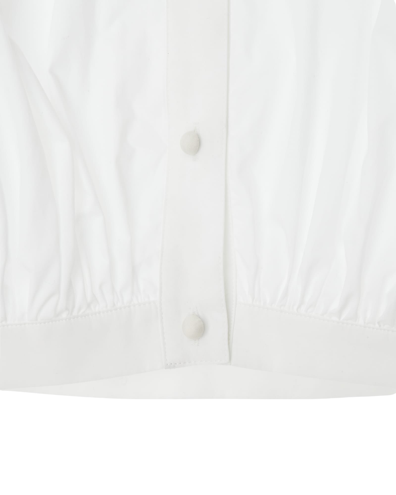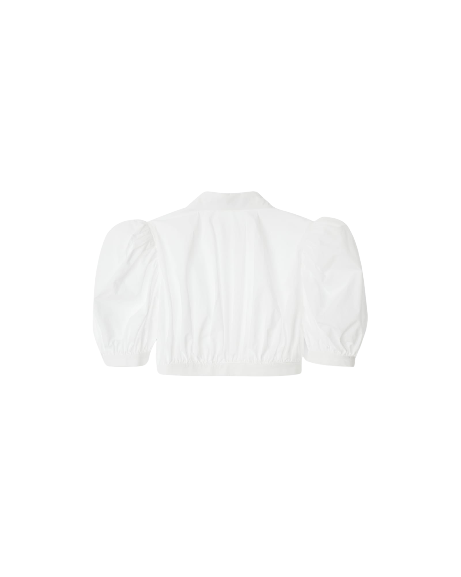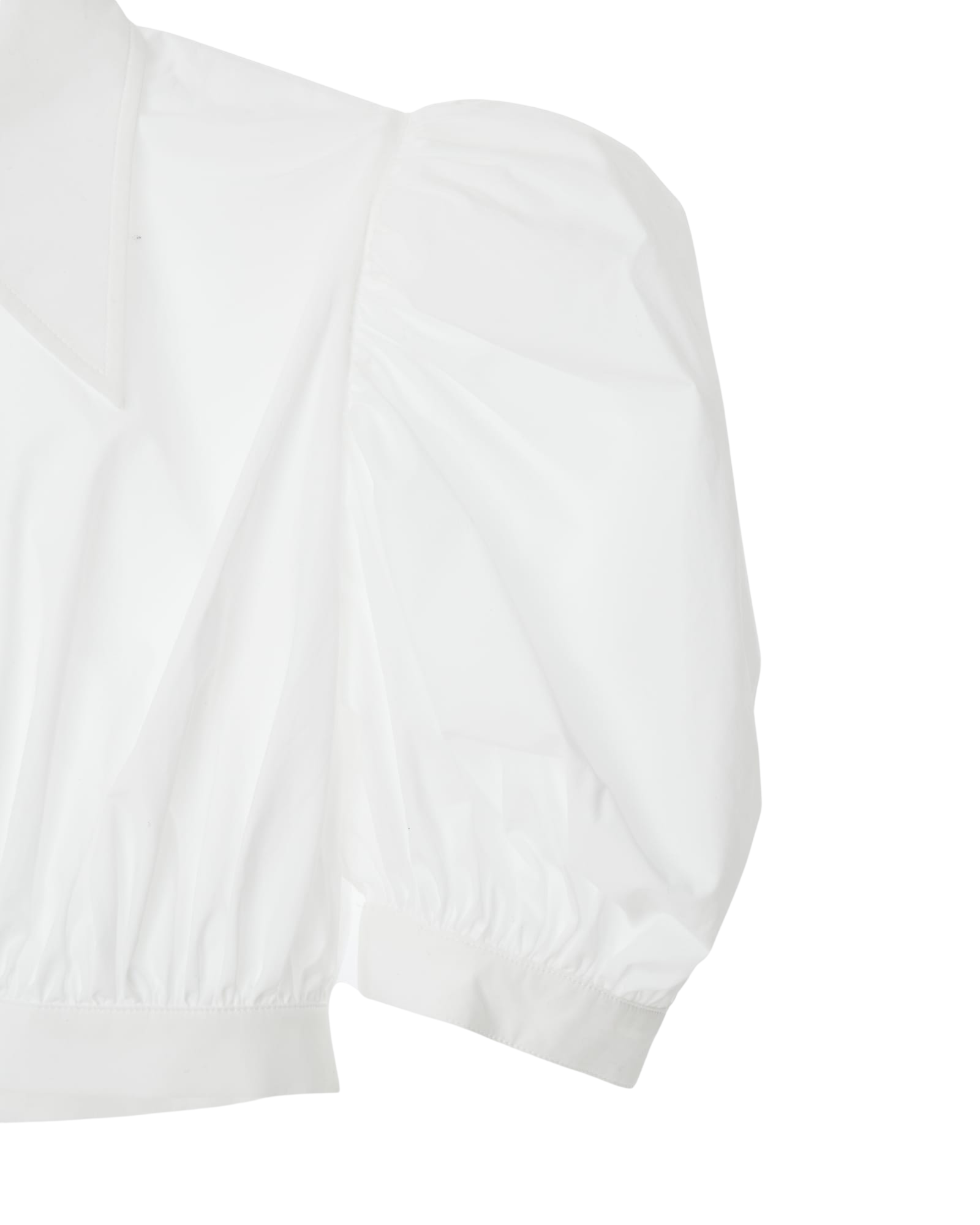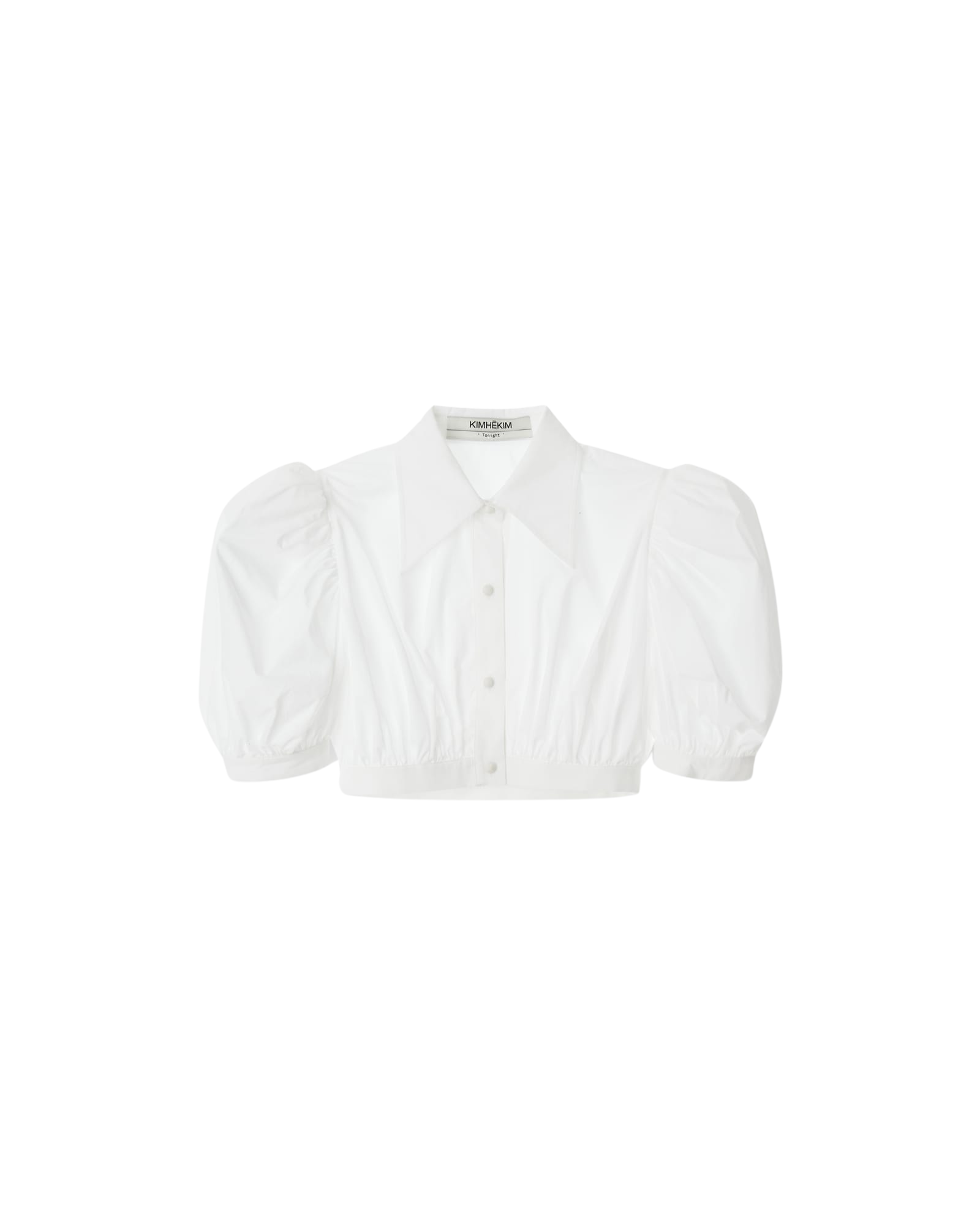 Puff Short Sleeve Cropped Cotton Blouse (White)