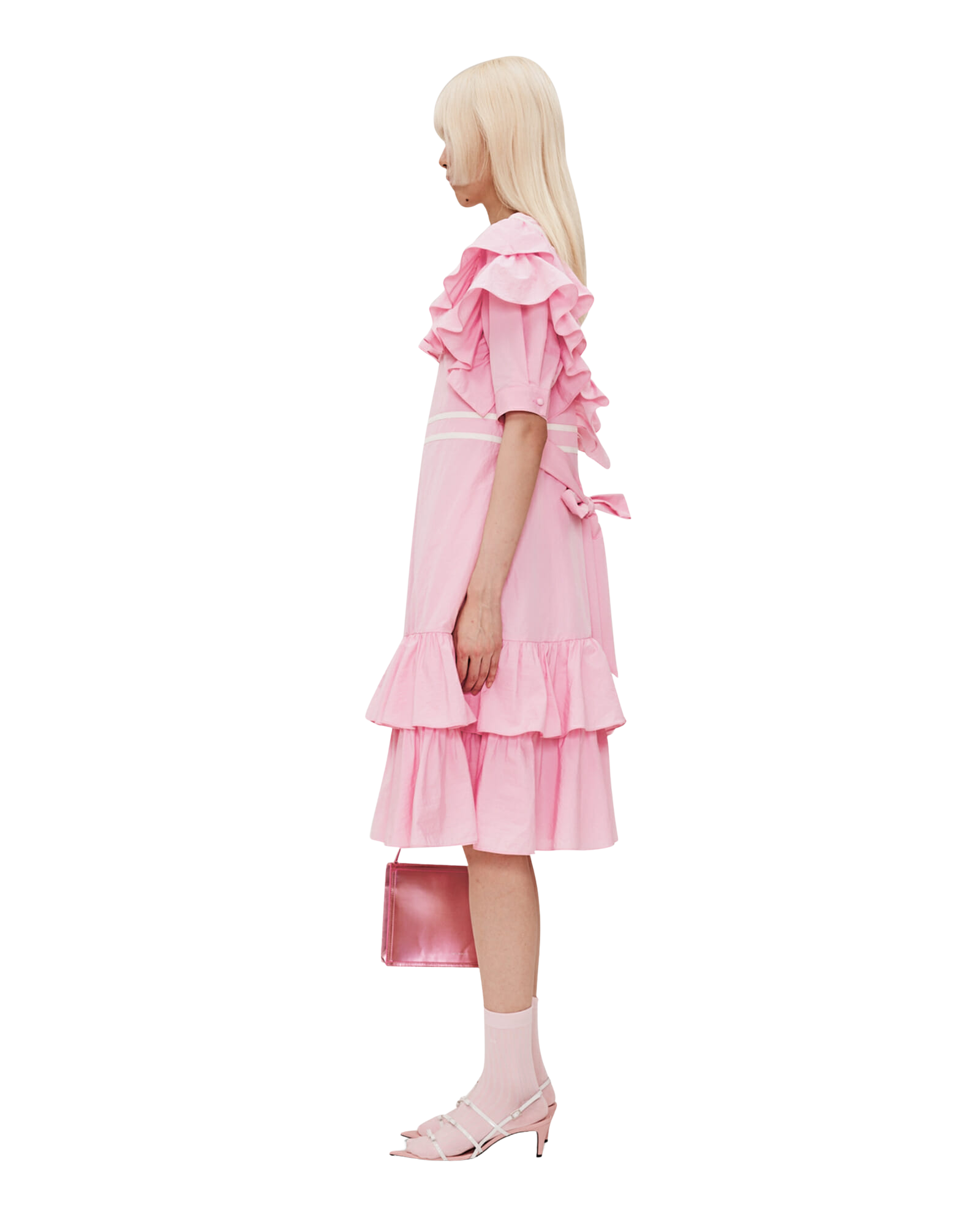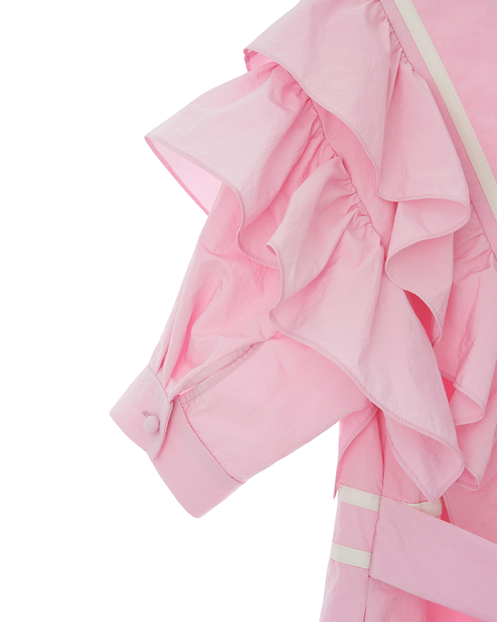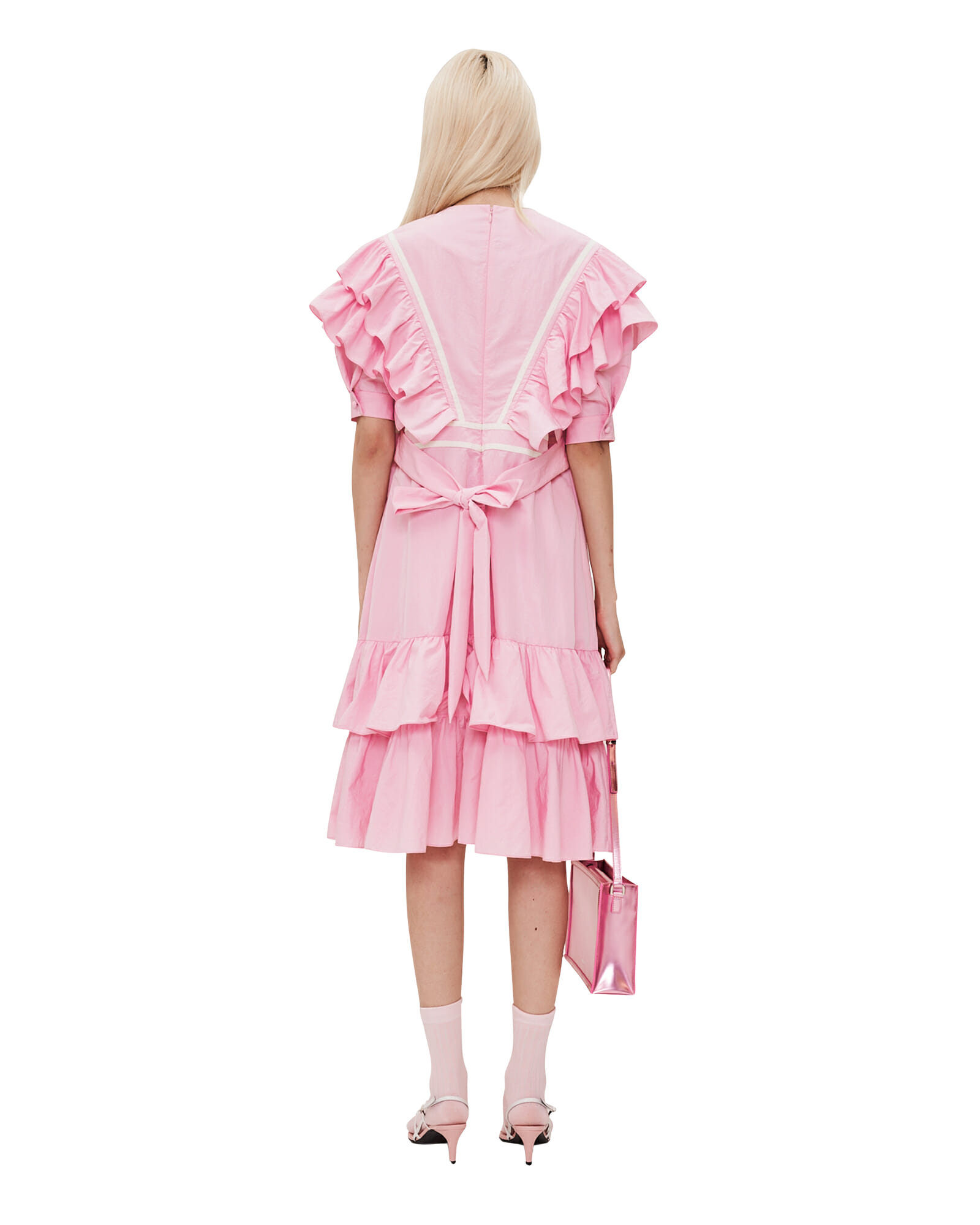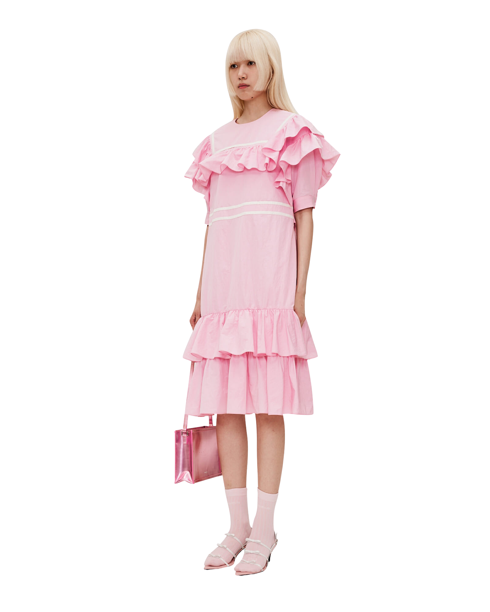 Ruffled Nylon Midi Dress (Pink/Ivory)